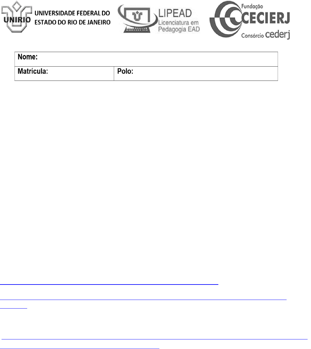 SEGUNDA AVALIAÇÃO A DISTÂNCIA – AD2 – 2021.2 DISCIPLINA: IMAGEM E EDUCAÇÃO Coordenação: GILMAR OLIVEIRA Professoras Tutoras: Adriana Assumpção, Fernanda Mello e Sandra Regina PRAZO LIMITE PARA ENTREGA 14 de novembro de 2021 às 23h59 Questão 1 – (2 pontos) Com sua fotografia documental, de um preto e branco puríssimo, Sebastião Salgado fotografa há mais de quatro décadas os maiores horrores cometidos pela espécie humana e as grandes belezas naturais do planeta.. Considerado um dos maiores fotógrafos do mundo. Transcendendo a fotografia, Sebastião Salgado publicou 12 obras literárias ao longo de sua carreira: Em seus livros, Sebastião Salgado deixou claro sua luta pessoal com questões humanitárias. Suas imagens dão luz à realidades que muitas pessoas sequer conseguem imaginar, retratando - sempre em preto e branco - guerras, pobreza, desigualdades e injustiça. Sebastião Salgado é um dos vencedores do 32° Praemium Imperiale, em 2021, considerado como o Nobel das Artes, com a exposição Amazonia. Abaixo você poderá acessar os links sobre Sebastião Salgado: https://www.epics.com.br/blog/sebastiao-salgado-famoso-fotografo-brasileiro https://www.uol.com.br/splash/noticias/rfi/2021/09/14/fotografo-sebastiao-salgado-ganha-nobel-das- artes.htm a)Acesse o link: https://www.em.com.br/app/noticia/cultura/2021/05/22/interna_cultura,1269110/sebastiao-salgado-faz-um- apelo-ao-mundo-em-amazonia-sua-nova-exposicao.shtml Em seguida comente sobre o que o Sebastião Salgado fala nessa entrevista. b) Com a leitura do material da nossa aula 13, onde fala sobre fotografia e texto, escolha uma foto de Sebatião Salgado , cole aqui e escreva uma legenda descrevendo a imagem. Questão 2 – (2 pontos) A discussão acerca do caráter pernicioso das revistas em quadrinhos já está superada, pois, atualmente, estudos já revelam seu caráter de auxiliar nos processos didáticos. Afinal, não há motivo para não se aproveitar o fato de que o público infantil consome esse tipo de texto com mais facilidade, mais desenvoltura e em maior quantidade. (aula28), a) Crie os diálogos desses personagens conhecidos observando as expressões faciais e os olhares. (OBS: Os diálogos podem ser escritos fora da figura desde que mantenha a ordem) b) Planeje uma atividade com quadrinhos para alunos de uma turma do Ensino Fundamental (indique a turma). Questão 3 - (2 pontos) Para esta questão você precisa assistir o curta metragem e no link abaixo: https://www.youtube.com/watch?v=MO1f8n3gMG8&t=86s Escolha uma das temáticas para desenvolver uma aula utilizando o filme em sala de aula. Não se esqueça de informar a turma e a disciplina ou campo curricular. ( ) Trabalho e sociedade ( ) Formação de identidade ( ) Práticas Antirracistas na escola ( ) Migração b) Tire um print da tela de um momento do filme e comente a cena c) Conte-nos o que sentiu ao ver o filme. Questão 4 - (2 pontos) Apresente uma imagem antiga de um lugar que julgar interessante (escola, igreja, praça, museus, fazendas, etc) descreva: a) observando as fases de percepção e uso da fotografia; b) fale sobre as funções básicas da fotografia: documento de prova e documento de memória; c) apontar alguns cuidados referentes à preservação e à conservação da imagem fotográfica; d) descrever imagens fotográficas; e) montar fichas de descrição e análise da imagem fotográfica. Questão 5 - (2 pontos) Esta é uma atividade prática: selecione cinco fotos de sua cidade, junte-as e faça um filme. Você pode usar fotos de época, noticias de jornal. imagens de ponto turístico, praças e jardins etc. para fazer um cartão animado da sua cidade. Conte-nos um pouco sobre as imagens que escolheu. O vídeo a seguir apresenta algumas instruções bastante úteis, assista. https://youtu.be/MMDnO01zMVI