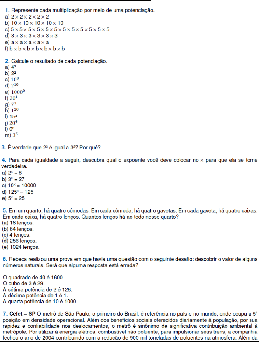 EXERCICIOS SOBRE POTENCIAÇÃO RESOLUÇÃO