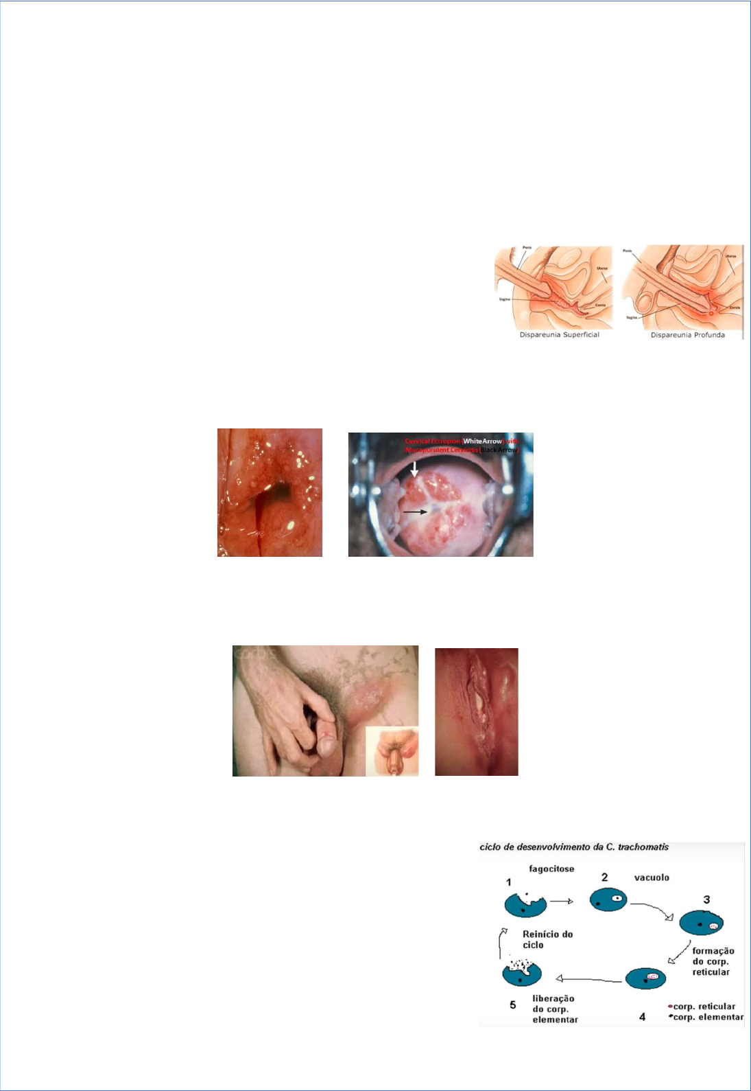 Camila Rizzo – MORFO 3P Clamídia CARACTERÍSTICAS GERAIS Agente etiológico: Chlamydia trachomatis. É uma bactéria obrigatoriamente intracelular não tem mitocôndria, é resistente a enzimas lisossomiais (ou seja, não morre ao ser fagocitada) e a lisozima (causa conjuntivite). Apresenta características virais e bacterianas. Pode gerar várias infecções: conjuntivite, vaginites, prostatites, uretrites e LGV (linfogranuloma venéreo-IST). OBS: LGV: IST que causa inflamações com grande quantidade de pus PRINCIPAIS SINTOMAS Causa a doença inflamatória pélvica (DIP) Leucorreia. Dispareunia (dor durante ou após o ato sexual) pode ser superficial ou profunda. Dor pélvica (simula inflamações do trato genital e urinário) Ardência ao urinar. Infertilidade por conta de causar fibrose na tuba uterina. OBS: entre os agentes causadores da DIP estão o da gonorréia e o da clamídia. Quando dentro do colo, a clamídia vai causar uma colpite/vaginite muco-purulenta e sua secreção é a leucorreia. Caso a secreção entre para dentro do útero, ela é capaz de causar a DIP OBS: a dor na região do colo uterino não é normal uma vez que essa é uma região que tende a trazer prazer para a mulher. Logo, uma dor no local configura ligamentos (como o largo, o cardinal) inflamados; fator que caracteriza a doença inflamatória pélvica OBS: As bolhinhas que são perceptíveis na figura fazem com que muitas pessoas confundam a doença com a herpes LINFOGRANULOMA VENÉREO (LGV) Linfonodos ficam aumentados. CICLO DE DESENVOLVIMENTO Forma infectante: corpúsculo elementar. Forma não infectante: corpúsculo reticular. Predomina na JEC, pois lá tem células em plena atividade que podem ser utilizadas pela bactéria para fazer o seu ciclo. Dentre as células mais utilizadas estão: as células profundas, células colunares e células metaplásicas Corpúsculo reticular é a forma imatura da clamídia Dentro do vacúolo a clamídia vai se desenvolver e se utilizar da energia da célula para sobreviver (fase 4). Ela sulga tanto a energia da célula que essa célula morre e libera muitos corpúsculos já maduros capazes de penetrar outras células e repetir o processo (fase 5) Duração: 48-64 horas. O diagnóstico sugestivo da clamídia é dado a partir da observação microscópica do vacúolo que é formado dentro da célula, o qual apresenta as formas da bactéria (fases 2,3,4). Observar células endocervicais, metaplásicas e/ou profundas com esses vacúolos. Outros exames são também o PCR e o teste de imunofluorescência Camila Rizzo – MORFO 3P OBS: imunofluorescência não é um exame 100% confiável uma vez que a imunofluorescência pode dar reação cruzada com outras substâncias. O exame mais confiável é o PCR Herpes simples CARACTERÍSTICAS GERAIS HSV1 herpes simples tipo 1. HSV2 herpes simples tipo 2. HZV3 herpes zoster tipo 3. EBV4 Epstein-Barr tipo 4. CMV5 citomegalovírus tipo 5 (pode causar aborto, lesão placentária) HERPES ZOSTER Agente etiológico: Herpesvirus varicellae (também causa catapora). Vírus fica hospedado no gânglio sensitivo. Se manifesta na pele, por meio de erupções denominadas varicela zoster As bolhas podem formar ulceras. Algumas pessoas desenvolvem imunidade ao vírus HERPES SIMPLES HSV1 pode causar lesões nas regiões não genitais (EX: boca, língua, faringe palato). HSV2 pode causar lesões nas regiões genitais e perianais. Não significa que o vírus da herpes vai ficar retido apenas nesses locais Vírus pode causar inclusive paralisia facial OBS: em pessoas que se encontram com a imunidade muito baixa, como é o caso de recém-nascidos, gestantes, pessoas com HIV; podem ter sua saúde significativamente comprometida pelo vírus, apresentando quadros que vão desde encefalite, até o óbito. Vacúolo com inclusão Citomegalovírus Camila Rizzo – MORFO 3P QUADRO CLÍNICO PRIMEIRA INFECÇÃO: Primeiros sintomas aparecem após a primeira semana. Causa febre, cefaleia, dor, prurido, enfartamento linfático. Causa lesões vesiculosas (herpéticas), que aos poucos se transformam em úlceras, durando 7 a 15 dias (ou mais). Líquido dentro das vesículas deriva do processo inflamatório seroso que forma também a necrose que vai acontecer no local e líquido está cheio de partículas virais podendo ocorrer autocontaminação ou infecção de outras pessoas Quando há a baixa da imunidade o vírus sai do seu período de latência nos gânglios e vai para a sua área de atuação causando lesões OBS: na herpes genital há uma tendencia de mudança de estado de bolha para úlcera OBS: quando há lesão no colo uterino, uma amostra deve ser coletada para a investigação com possibilidade de ser herpes PERÍODO DE LATÊNCIA: Ocorre nos nervos. Nervo trigêmeo boca. Nervo pudendo região genital. INFECÇÃO SECUNDÁRIA (RECORRENTE): Contaminação novamente pelo vírus. Vírus sempre volta para o mesmo local. OBS: deve-se sempre investigar as lesões já que muitas vezes pode não se tratar de herpes, mas sim, ISTs como a sífilis. Quando tem a bolha, devemos apenas analisar e constatar a herpes, contudo, caso tenha úlcera, deve-se levar material daquele local para análise em laboratório ESTÍMULOS QUE LEVAM À INFECÇÃO SECUNDÁRIA Imunosupressão (EX: estresse, febre). Gravidez. Doenças infecciosas. Período menstrual e pré-menstrual. Modificações bruscas de temperatura Estresse físico e emocional DIAGNÓSTICO Cultura de células. Imunofluorescência indireta. PCR. Citológico. Diagnóstico citológico: Multinucleação com amoldamento nuclear ou não núcleos deformados por não caberem na célula. Inclusões nucleares cromatina condensada no núcleo. Cromatina condensada na periferia do núcleo. Cromatina tipo “vidro fosco”. Multinucleação e binucleação. OBS: é comum encontrar hemácias e amoldamento nuclear (núcleo mudando o formato do outro) além de múltiplos núcleos, etc. Camila Rizzo – MORFO 3P Candidíase A candidí