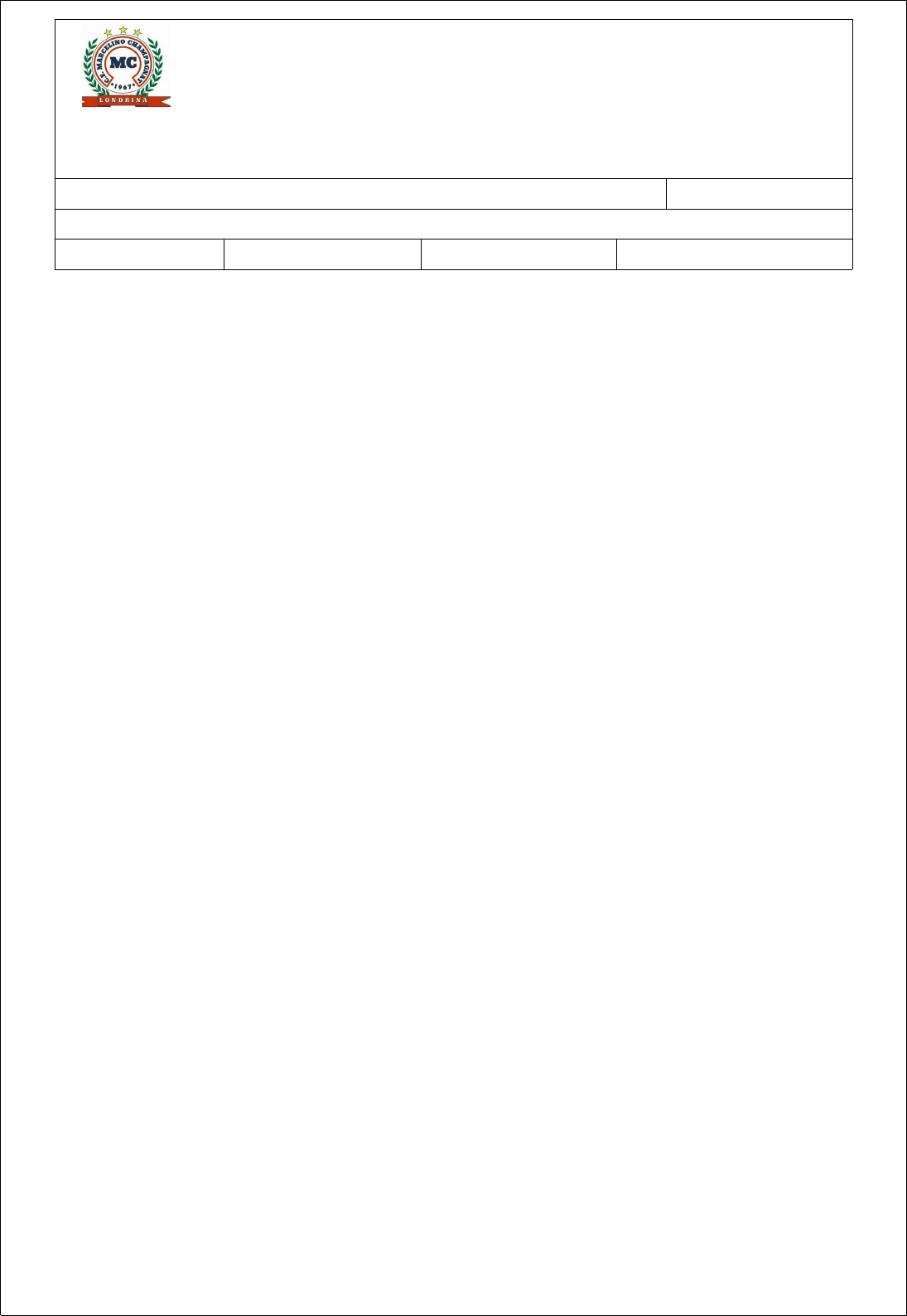 Colégio Estadual Marcelino Champagnat R. São Salvador, 998 - Vila Ziober, Londrina - PR, 86026-480 Professor/Disciplina: Humberto/Matemática Data: / / 2018 Aluno (a): nº Turma: Trimestre: Valor: Nota: 1) Reduza a uma só potência a) 4³ x 4 ²= b) 7⁴ x 7⁵ = c) 2⁶ x 2²= d) 6³ x 6 = e) 3⁷ x 3² = f) 9³ x 9 = g) 5 x 5² = h) 7 x 7⁴ = i) 6 x 6 = j) 3 x 3 = l) 9² x 9⁴x 9 = m) 4 x 4² x 4 = n) 4 x 4 x 4= 0) m⁰ x m x m³ = p) 15 x 15³ x 15⁴x 15 = 2) Reduza a uma só potência a) 5⁴ : 5² = b) 8⁷ : 8³ = c) 9⁵ : 9² = d) 4³ : 4² = e) 9⁶ : 9³ = f) 9⁵ : 9 = g) 5⁴ : 5³ = h) 6⁶ : 6 = i) a⁵ : a³ = j) m² : m = k) x⁸ : x = l) a⁷ : a⁶ = 3) Reduza a uma só potência: a) (5⁴)² = b) (7²)⁴ = c) (3²)⁵ = d) (4³)² = e) (9⁴)⁴ = f) (5²)⁷ = g) (6³)⁵ = h) (a²)³ = i) (m³)⁴ = j) (m³)⁴ = k) (x⁵)² = l) (a³)⁰ = m) (x⁵)⁰ = 4) Calcule o valor das expressões: a) 5² : ( 5 +1 -1)+ 4 x 2 = b) (3 +1)² +2 x 5 - 10⁰ = c) c) 3²: ( 4 – 1) + 3 x 2² = d) 70 –[ 5 x (2² : 4) + 3²] = e) ( 7 + 4) x ( 3² - 2³) = f) 5² + 2³ - 2 x (3 + 9) = 5) Calcule as raízes decompondo os radicais em números primos. a) √81 = b) √36 = c) √144 = d) √196 = e) √1600 = f) √100 = g) -√100 = h) √121 = i) -√121 = j) √400 = k) -√400 = l) √4/9 = m) √1/16 = n) √64/81 = o) √49/25 = 7) Calcule as expressões. a) 10.√4 = b) 3 + √25 = c) 1 - √4/9 = d) √81-√9 = e) √100 - √25 = f) √25/36 - √1/9 = g) 4 . √4/100 = 8) Se √x = 30, então o valor de x é: 9) O valor de expressões √0 + √1 - √1/4 é: 10) O valor da expressão 7² - √64 + 3² é: 11) Usando as propriedades com potências de mesma base, transformem em uma só potência as expressões: a) . b) c): d) : e) . . f) 12) Calcule as potências: a) b) c) d) e) f) g) h) i) j) k) 13) Calcule as seguintes potências com expoente negativo: Não esqueça: a) 10 b) c) d) e) f) 14) Classifique cada sentença seguinte em verdadeira (V) ou Falsa (F). a) b) c) d) e) 15) Determine o valor desta expressão: 16) Resolva as propriedades da potenciação: a) 5³ . 5 ̄ ³=____________________________________________________ b) (2²)² =______________________________________________________ c) 2² .3². 5²=___________________________________________________ d) (20³/ 5³)= ___________________________________________________ e) (36²/9²)= ___________________________________________________ 17) Resolva as potenciação: a) 3 4 = ___________________________________________________________ b) 2 5 =___________________________________________________________ c) 1 4 =___________________________________________________________ d) 0 6 =___________________________________________________________ e) (-2) 4 = _________________________________________________________ f) 5 0 =___________________________________________________________ g) (2,43) 0 =_______________________________________________________ h) (-0,5) 0 =_______________________________________________________ i) 17¹ =__________________________________________________________ j) 3ˉ² =___________________________________________________________ k) 5 ̄ ³=__________________________________________________________ l) 4 ̄ ³=__________________________________________________________ 3 4 7 3 ú ú û ù ê ê ë é ÷ ø ö ç è æ + ( ) 11 9 , 1 + ( ) 6 9 , 1 + 7 2 1 ÷ ø ö ç è æ + 3 2 1 ÷ ø ö ç è æ + ( ) 7 5 , 0 - ( ) 5 , 0 - ( ) 8 5 , 0 - ( ) [ ] 3 3 2 , 4 + 2 2 3 ÷ ø ö ç è æ - 2 4 5 ÷ ø ö ç è æ + 5 2 1 ÷ ø ö ç è æ - 0 8 15 ÷ ø ö ç è æ - 3 3 1 ÷ ø ö ç è æ - 1 13 7 ÷ ø ö ç è æ - ( ) 2 7 , 1 + ( ) 5 10 - ( ) 200 1 - ( ) 3 4 , 0 - 4 3 2 ÷ ø ö ç è æ + m m a a 1 = - 2 - 2 8 5 - ÷ ø ö ç è æ - 3 2 3 - ÷ ø ö ç è æ - 2 3 1 ÷ ø ö ç è æ - ( ) 3 3 - - 2 3 2 - ÷ ø ö ç è æ + 5 2 1 - ÷ ø ö ç è æ + ( ) ( ) 5 2 3 8 8 = ( ) 1 5 4 10 10 10 - = ÷ ÷ ø ö ç ç è æ ( ) ( ) 2 2 3 5 3 5 + = + ( ) 6 2 3 4 4 . 4 . 4 = ( ) 9 4 3 2 2 = ÷ ø ö ç è æ - ( ) ( ) ( ) ( ) 2 3 2 4 3 1 1 2 2 1 1 - - + - - + - - - 3 3 1 ÷ ø ö ç è æ -