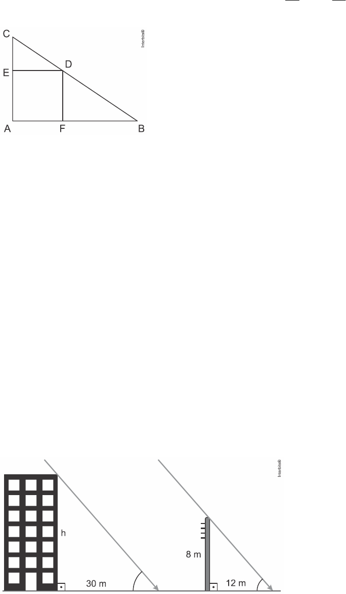 Geometria Lista de revisão 1. (Pucrj 2018) Na figura abaixo, temos um quadrado AEDF e AC 4 e AB 6. Qual é o valor do lado do quadrado? a) 2 b) 2,4 c) 2,5 d) 3 e) 4 2. (Fmp 2017) Os lados de um triângulo medem 13 cm, 14 cm e 15 cm, e sua área mede 284 cm . Considere um segundo triângulo, semelhante ao primeiro, cuja área mede 2336 cm . A medida do perímetro do segundo triângulo, em centímetros, é: a) 42 b) 84 c) 126 d) 168 e) 336 3. (G1 - ifpe 2017) Às 10 h 45 min de uma manhã ensolarada, as sombras de um edifício e de um poste de 8 metros de altura foram medidas ao mesmo tempo. Foram encontrados 30 metros e 12 metros, respectivamente, conforme ilustração abaixo. De acordo com as informações acima, a altura h do prédio é de: a) 12 metros. b) 18 metros. c) 16 metros. d) 14 metros. e) 20 metros. MATEMÁTICA 4. (Pucsp 2017) Considere uma circunferência tangente aos eixos ortogonais cartesianos nos pontos A e B, com 10 cm de raio, conforme mostra a figura. Sabendo que os pontos E, F, C, D (k, 4) estão alinhados, a medida do segmento EF é a) 1,0 cm b) 1,5 cm c) 2,0 cm d) 2,5 cm 5. (Fgv 2014) a) Para medir a largura x de um rio sem necessidade de cruzá-lo, foram feitas várias medições como mostra a figura abaixo. Calcule a largura x do rio. b) Demonstre que a distância do vértice B ao baricentro M de um triângulo é o dobro da distância do ponto E ao baricentro M. 6. (Unifesp 2018) Em um tapete retangular decorado com círculos idênticos, o círculo de centro C tangencia as laterais do tapete em P e Q. O ponto R pertence à circunferência desse círculo e está à distância de 18 cm e de 25 cm das laterais do tapete, como mostra a figura. a) Calcule a distância de R até o canto superior do tapete, indicado por S. Deixe a resposta indicada com raiz quadrada. b) Calcule o raio dos círculos que compõem a decoração do tapete. 7. (Uerj 2018) Segundo historiadores da matemática, a análise de padrões como os ilustrados a seguir possibilitou a descoberta das triplas pitagóricas. Observe que os números inteiros 2 23 , 4 e 25 , representados respectivamente pelas 2ª, 3ª e 4ª figuras, satisfazem ao Teorema de Pitágoras. Dessa forma (3, 4, 5) é uma tripla pitagórica. Os quadrados representados pelas 4ª, 11ª e nª figuras determinam outra tripla pitagórica, sendo o valor de n igual a: a) 10 b) 12 c) 14 d) 16 8. (Ebmsp 2018) A capela de um hospital é decorada com vitrais semelhantes ao representado na figura 1. Para reproduzi-lo, uma pessoa decidiu fazer os cálculos relativos às dimensões de alguns detalhes, iniciando com a parte superior, representada na figura 2. Sabe-se que MP e NP são arcos de circunferências com centros em N e M, respectivamente, e que o círculo tangente aos arcos MP e NP e ao segmento MN tem raio r 15 u.c. Com base nesses dados, pode-se afirmar que a medida do segmento MN é igual a: a) 45 b) 40 c) 30 d) 25 e) 15 9. (Enem 2017) Para decorar uma mesa de festa infantil, um chefe de cozinha usará um melão esférico com diâmetro medindo 10 cm, o qual servirá de suporte para espetar diversos doces. Ele irá retirar uma calota esférica do melão, conforme ilustra a figura, e, para garantir a estabilidade deste suporte, dificultando que o melão role sobre a mesa, o chefe fará o corte de modo que o raio r da seção circular de corte seja de pelo menos 3 cm. Por outro lado, o chefe desejará dispor da maior área possível da região em que serão afixados os doces. Para atingir todos os seus objetivos, o chefe deverá cortar a calota do melão numa altura h, em centímetro, igual a: a) 91 5 2 b) 10 91 c) 1 d) 4 e) 5 10. (Espcex (Aman) 2018) A curva do gráfico abaixo representa a função 4y log x A área do retângulo ABCD é: a) 12. b) 6. c) 3. d) 4 3 6log . 2 e) 4log 6. 11. (Upf 2018) Uma empresa produz tampas circulares de alumínio para tanques cilíndricos a partir de chapas quadradas, conforme as figuras a seguir. Com o mesmo tamanho de chapa, pode produzir 1 tampa grande, 4 tampas médias ou 16 tampas pequenas. A cada dia, é cortado, nessa empresa, o mesmo número de chapas para cada tamanho de tampas. As sobras de material da produção diária das tampas grandes, médias e pequenas são doadas, respectivamente, a três entidades: A, B e C, que efetuam reciclagem do material. A partir dessas informações, é possível concluir que a) a entidade A recebe mais material do que a entidade B. b) a entidade B recebe o dobro de material do que a entidade C. c) a entidade C recebe a metade de material do que a entidade A. d) as três entidades recebem iguais quantidades de material. e) as entidades A e C, juntas, recebem menos material do que a entidade B. 12. (G1 - ifpe 2018) Os alunos do curso de Agricultura do campus Vitória de Santo Antão dispõem de um terreno em forma de trapézio para construir uma horta de orgânicos. As bases do trapézio medem 10 m e 35 m. Já os lados não paralelos medem 15 m e 20 m. Qual a área total do terreno desta horta? a) 2120 m . b) 2150 m . c) 2210 m . d) 2270 m . e) 2540 m . 13. (Upe-ssa 3 2018) Na figura, os vértices de um triângulo equilátero de lado 4 cm são centros de três círculos que se tangenciam mutuamente, determinando a região hachurada de preto no interior do triângulo. Qual é a medida da área dessa região? Considere 3,0π e 3 1,7. a) 0,6 b) 0,3 c) 0,5 d) 0,8 e) 0,4 14. (Unicamp 2017) Considere o quadrado de lado a 0 exibido na figura abaixo. Seja A(x) a função que associa a cada 0 x a a área da região indicada pela cor cinza. O gráfico da função y A(x) no plano cartesiano é dado por: a) b) c) d) 15. (G1 - col. naval 2017) Observe a figura a seguir. A figura acima exibe um total de n peças idênticas de um quebra-cabeça que, resolvido, revela uma coroa circular. Sabe-se que 6 cm é a menor distância entre as circunferências concêntricas pontilhadas da figura e que o raio da menor dessas circunferências é igual a 9 cm. Se a área de cada peça é 2