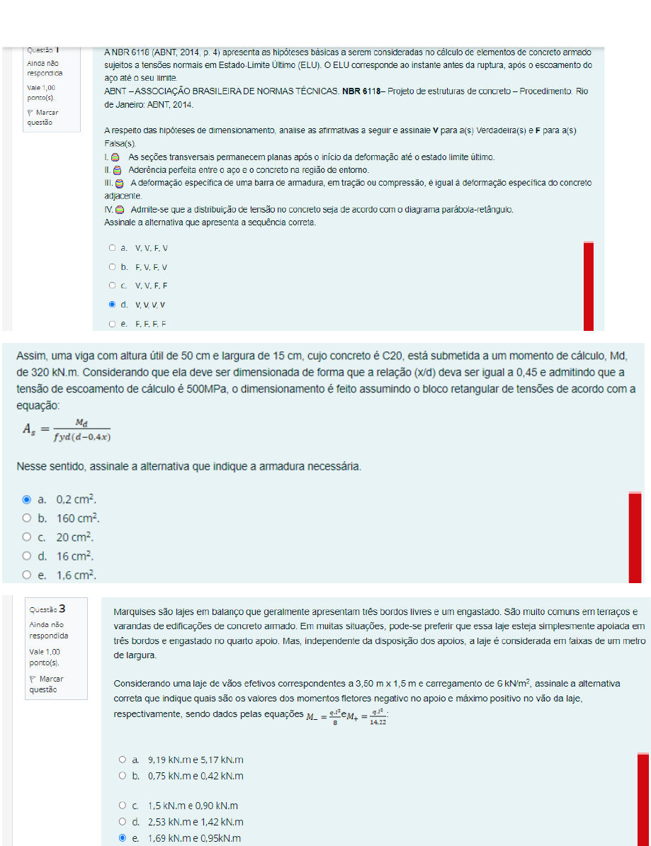 ESTRUTURAS DE CONCRETO ARMADO - A2 RESPOSTA D – I,II E III, APENAS