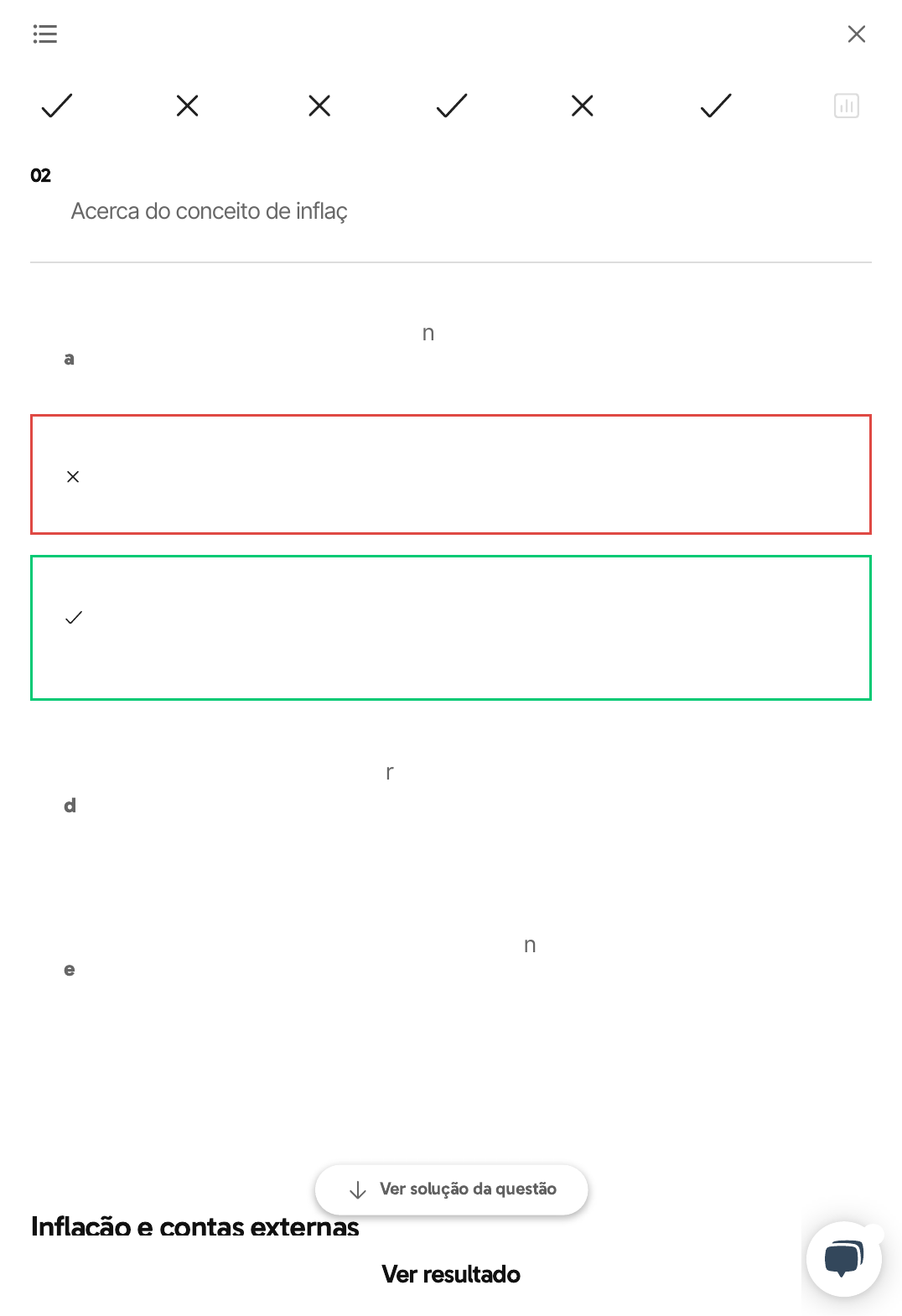 Inflação e contas externas 02 Acerca do conceito de inflação, marque a alternativa correta: a Geralmente, os preços sobem na mesma proporção do que os salários O poder de compra corresponde ao efeito que a inflação causa nos salários Uma melhor distribuição de renda é provável de ocorrer em economias com melhor controle inflacionário d Os benefícios sociais do governo tendem a se reajustar de acordo com a inflação de forma justa e O processo deflacionário é quando não há inflação Ver solução da questão Ver resultado 1