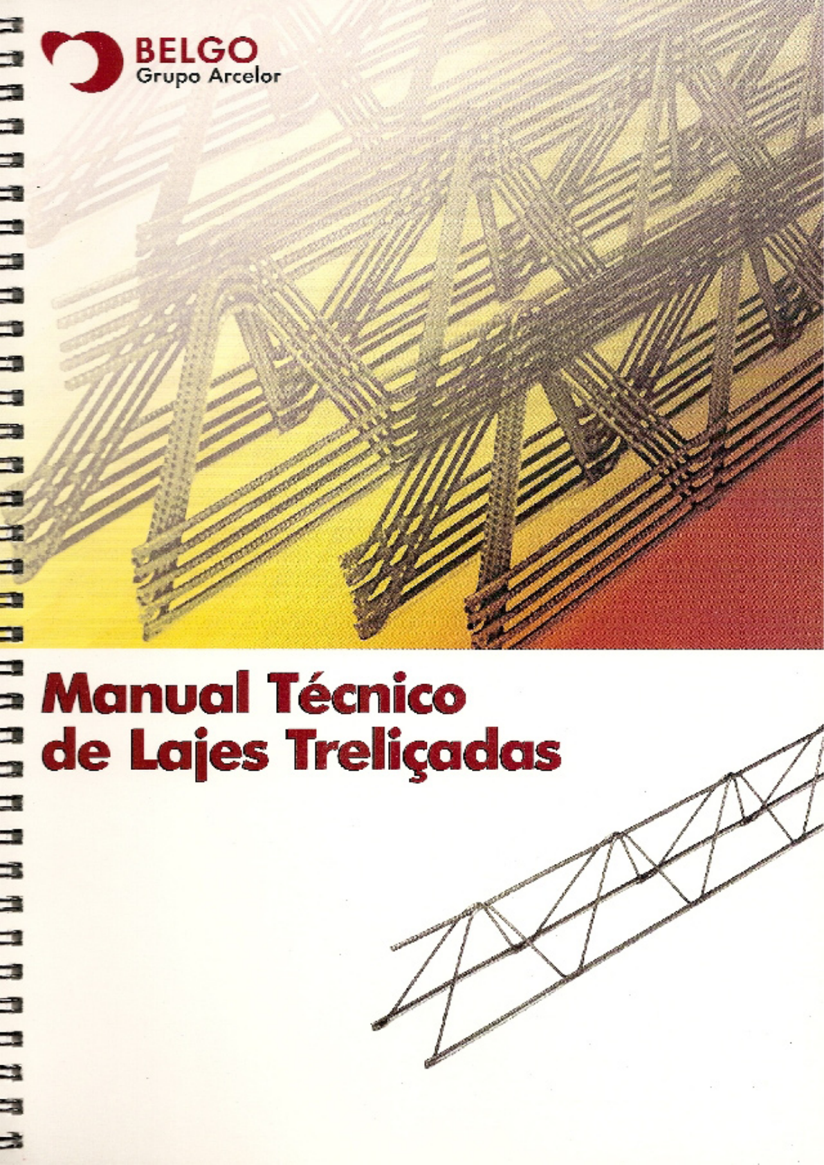 Índice Apresentação Armação Treliçada Vigota Treliçada e Painel Treliçado Elementos de Enchimento Capeamento e Armadura de Distribuição Projeto e Carregamentos Tabelas de Armaduras Adicionais Obras de Referência Execução (Transporte e Manuseio, Escoramento, Nervuras Transversais, Posicionamento em Serviço, Vigotas Justapostas, Colocação dos Elementos de Enchimento, Armadura Complementar, Concretagem e Descimbramento) Bibliografia 02 03 05 13 15 16 20 26 29 40 Atualmente está se tornando comum, nos pavimentos de edificações, a utilização de vãos cada vez maiores, e em muitos casos são dispostas paredes de alvenaria diretamente sobre as lajes. A melhor solução técnica para esses pavimentos é o emprego de lajes nervuradas, nas quais grande parte do concreto abaixo da linha neutra é eliminado. Com a execução das lajes nervuradas a partir de vigotas e painéis pré-moldados, as fôrmas e os escoramentos sofrem reduções significativas, sendo, portanto, a melhor solução técnica e econômica. O sistema de lajes treliçadas, originário da Europa, foi implantado no Brasil buscando explo- rar e superar as limitações técnicas e econômicas dos sistemas de lajes nervuradas pré-moldadas já utilizados até então, possibilitando diversas aplicações de maneira racional e competitiva e uma ótima relação custo x benefício. As vigotas e painéis pré-moldados com armação treliçada, denominados de vigotas e painéis treliçados, permitem a perfeita solidarização das peças pré-moldadas com o concreto molda- do "in loco" e também maiores vantagens e facilidades construtivas. É crescente o interesse mundial pela utilização da armação treliçada nos mais diversos tipos: obras residenciais, indus- triais, comerciais, shopping centers, pontes, reservatórios, muro de contenção, entre outros. O presente manual segue os preceitos das normas pertinentes e conta com a colaboração de parceiros envolvidos. Tem como objetivo mostrar informações essenciais através de exemplos práticos, tabelas para colocação de armaduras adicionais, contra flechas, opções de projetos, dicas de execução e cuidados básicos para que fabricantes, construtores, projetistas e pequenos consumidores possam se utilizar do processo com tecnologia, economia e qualidade. 2 Apresentação 3 Armação Treliçada Nervurada A armação treliçada é uma estrutura metálica espacial prismática em que se utilizam fios de aço Belgo 60 Nervurado (CA60), soldados por eletrofusão ou caldeamento, de modo a formar um elemento rígido composto de duas treliças planas, inclinadas e unidas pelo vértice superior. É constituída por um fio superior (banzo superior), que colabora como armadura de com- pressão durante a montagem e concretagem da laje treliçada, e pode colaborar na resistên- cia ao momento fletor negativo (em regiões de apoio central); dois fios inferiores (banzo infe- rior), os quais resistem às forças de tração oriundas do momento fletor positivo; as diagonais ou sinusóides, que, além de colaborarem como armadura resistente às forças cortantes (quan- do forem altas), servem para promover uma perfeita coesão ou aderência entre o concreto pré-moldado da vigota e o concreto do capeamento (moldado "in loco"). Quanto às dimensões, ela possui altura, base, passo, saliência inferior, comprimento e diâmetro dos fios. A altura (h) é a distância entre a superfície limite inferior (face inferior da saliência inferior) e a superfície limite superior (banzo superior), perpendicular à base e no eixo da seção treliçada, dada em mm. A base (b) é a distância entre as faces externas entre os fios que compõem o banzo inferior, dada em mm, e mede entre 80 e 120 mm. Passo (p) é a distância entre eixos dos nós entre os aços que compõem a armação treliçada, dada em mm, e tem sempre 20 mm. A saliência inferior é a distância entre a face inferior do banzo inferior e a superfície limite inferior da armação treliçada. São produzidas em três comprimentos: 8, 10 e 12 metros, pois a partir desses valores é pos- sível obter os comprimentos de vãos mais comuns em projetos. Perspectiva Corte Típico h A Fio Superior Diagonal Fios Inferiores h 20 c m 9 cm 20 cm 20 cm 20 cm 20 c m 4 A tabela abaixo mostra as treliças Belgo padronizadas; as solicitações de treliças especiais serão atendidas mediante consulta. A primeira coluna mostra os modelos diferenciados pela altura (h) da treliça e suas linhas: leve (L), média (M), reforçada (R) e pesada (P). Exemplo: TB 8M – Treliça Belgo com 8 cm de altura, linha média. A segunda coluna, segundo a NBR 14862, especifica a treliça (TR) discriminando novamente sua altura, e na seqüência o diâmetro dos seus fios. Exemplo: TR 08645 - treliça com 8,0 cm de altura, fio superior ø = 6,0 mm, diagonais ø = 4,2 mm e fios inferiores ø = 5,0 mm. Armação Treliçada Modelo Designação Superior (ø S) Diagonal (ø D) Inferior (ø I) Composição / Fios (mm) Peso Linear (kg/m) Altura (h) (mm) Comprimentos: 8, 10 e 12 m. Outras dimensões, sob consulta. 80 80 120 120 160 160 200 200 250 250 300 300 TB 8L TB 8M TB 12M TB 12R TB 16L TB 16R TB 20L TB 20R TB 25M TB 25R TB 30M TB 30R TR 8644 TR 8645 TR 12645 TR 12646 TR 16745 TR 16746 TR 20745 TR 20756 TR 25856 TR 25858 TR 30856 TR 30858 6,0 6,0 6,0 6,0 7,0 7,0 7,0 7,0 8,0 8,0 8,0 8,0 4,2 4,2 4,2 4,2 4,2 4,2 4,2 5,0 5,0 5,0 5,0 5,0 4,2 5,0 5,0 6,0 5,0 6,0 5,0 6,0 6,0 8,0 6,0 8,0 0,735 0,825 0,886 1,016 1,032 1,168 1,111 1,446 1,686 2,024 1,823 2,168 5 Vigota Treliçada e Painel Treliçado É o conjunto formado pela armação treliçada, a ferragem adicional e a base de concreto. É o produto final que deverá ser entregue pelo fabricante ao cliente, juntamente com o ele- mento de enchimento e um projeto de montagem. Deve ser dimensionada para resistir aos esforços após a concretagem da laje, mas também deve ter rigidez necessária para resistir ao transporte e mo