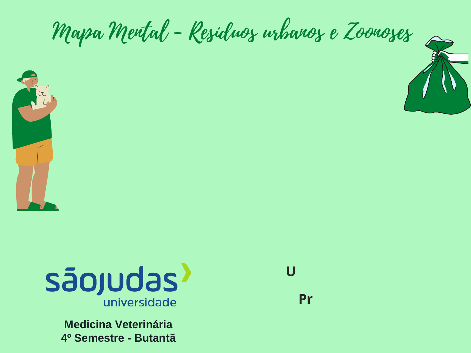 GRUPO: - Isabela dos Santos Silva RA: 82011417 - Isabela Garcia Costa RA: 82017132 - Isabella Castellani do Nascimento RA: 82011443 - Izadora Nascimento Almeida RA: 820132504 - João Vitor Batista da Silva RA: 820146609 - Maria Fernanda Madeira RA: 82012172 - Nicole Borges Souza RA: 820150116 Mapa Mental - Resíduos urbanos e Zoonoses Medicina Veterinária 4º Semestre - Butantã Professores: Arnaldo Rocha Patricia Tavoloni UC: Saúde Única .................... ... .…… Zoonoses .......... .… … .… … … … … … .… A L A G A M E N T O S E I N U N D A Ç Õ E S E X P O S I Ç Ã O H U M A N A A V Á R I A S S U B S T Â N C I A S T Ó X I C A S C O M O E V I T A R P A R A S I T Á R I O S P R O L I F E R A Ç Ã O D E D O E N Ç A S .. .. ... Resíduos Urbanos P R O B L E M A S O C O R R I D O S C O M D E S C A R T E E R R A D O O Q U E S Ã O ? A S P R I N C I - P A I S O Q U E S Ã O ? O B S T R U Ç Ã O D O P A S S E I O P Ú B L I C O B E N E F Í - C I O S I M P A C T O S D O S R E S Í D U O S U R B A N O S N A Z O O N O S E S I M P A C T O S N A P O P U L A Ç Ã O O R G Ã O R E S P O N - S Á V E L C O M O E V I T A R C O M O F U N C I O N A C O N T A M I N A Ç Ã O D O S O L O E D O S L E N Ç Ó I S F R E Á T I C O S P O L U I Ç Ã O A M B I E N T A L E V I S U A L A U M E N T O D O S G A S T O S P Ú B L I C O S C O M L I M P E Z A U R B A N A .. .…… .. É T U D O A Q U I L O Q U E S O B R A D E D E T E R M I N A D O P R O D U T O M A T É R I A O R G Â N I C A P A P E L E P A P E L Ã O P L Á S T I C O V I D R O M E T A I S R I S C O S P A R A D I V E R S O S T I P O S D E C Â N C E R A N O M A L I A S C O N G Ê N I T A S A B O R T O S E M O R T E S N E O N A T A I S .… … … … … … .… ... D O E N Ç A S I N F E C C I O S A S T R A N S M I T I D A S E N T R E A N I M A I S E P E S S O A S P A T Ó G E N O S …. …. …. …. R E C I C L A G E M P R O J E T O S P A R A A U M E N T A R A C O N S C I Ê N C I A E C O L Ó G I C A D A P O P U L A Ç Ã O D I R E C I O N A R O D E S T I N O F I N A L D O S R E S Í D U O S U R B A N O S P A R A A T E R R O S S A N I T Á R I O S M É T O D O S P A R A D I M I N U I R A G E R A Ç Ã O D E R E S Í D U O S R E D U Z I N D O A Q U A N T I D A D E D E P R O D U T O S C O N S U M I D O S R O T I N E I R A M E N T E . ... ... ... . .......... ESTIMA-SE QUE O IMPACTO DAS DOENÇAS ANIMAIS EXCEDA 20% DAS PERDAS NA PRODUÇÃO ANIMAL MUNDIALMENTE RAIVA PESTE LEPTOSPIROSE DENGUE FEBRE AMARELA ESPOROTRICOSE TOXOPLAMOSE ANCILOSTOMIASE TOXOCARÍASE ... ... ... .. MONITORADAS POR PROGRAMAS NACIONAIS DE VIGILANCIA E CONTROLE DO MINISTÉRIO DA SAÚDE ... CENTRO DE CONTROLE DE ZOONOSES ... ... RESPONSÁVEL PELO CONTROLE DE AGRAVOS E DOENÇAS TRANSMITIDAS AOS SERES HUMANOS PELOS ANIMAIS, ATRAVÉS DO CONTROLE DE POPULAÇÕES DE ANIMAIS DOMÉSTICOS E CONTROLE DE POPULAÇÕES DE ANIMAIS SINANTRÓPICOS B A C T E R I A N O S V I R A I S A G E N T E S N Ã O C O N V E N C I O N A I S .… ..… .… … .… .… ..… … . .. R E C I C L A G E M R E A P R O V E I T A M E N T O A R T E S A N A T O T R A N S F O R M A Ç Ã O E M P R E G O .… … .… … … .. .… . .. .…. … .. … … … … … … … https://www.google.com.br/amp/s/www.tuasaude.com/zoonose/amp/ https://www.ecycle.com.br/residuos-solidos/ http://aterrosanitarioouroverde.com.br/2019/02/24/consequencias-do-descarte- incorreto-de-lixo/ https://medium.com/@spcidadegentil/sete-dicas-para-reduzir-a-gera%C3%A7%C3%A3o- de-res https://www.pensamentoverde.com.br/meio-ambiente/conheca-8-formas-de-como- reduzir-o-lixo-jogado-no-meio-ambiente/ https://ambientes.ambientebrasil.com.br/residuos/reciclagem/reciclagem.html? utm_source=ambientebrasil&utm_medium=bottom_content_suggestion https://editorarealize.com.br/editora/anais/conedu/2018/TRABALHO_EV117_MD1_SA14_I D2890_06092018014515.pdf SciELO - Brasil - Zoonoses emergentes e reemergentes e sua importância para saúde e produção animal Zoonoses emergentes e reemergentes e sua importância para saúde e produção animal https://wp.ufpel.edu.br/ccz/apresentacao-2/o-que-sao-zoonoses/ https://www.saude.pr.gov.br/Pagina/Zoonoses https://www.google.com.br/amp/s/www.tuasaude.com/zoonose/amp/ Referências Bibliográficas https://medium.com/@spcidadegentil/sete-dicas-para-reduzir-a-gera%C3%A7%C3%A3o-de-res https://www.pensamentoverde.com.br/meio-ambiente/conheca-8-formas-de-como-reduzir-o-lixo-jogado-no-meio-ambiente/ https://ambientes.ambientebrasil.com.br/residuos/reciclagem/reciclagem.html?utm_source=ambientebrasil&utm_medium=bottom_content_suggestion https://www.scielo.br/j/pab/a/LjPRt7VpRQdW3cWTY3KZ4Pj/?lang=pt