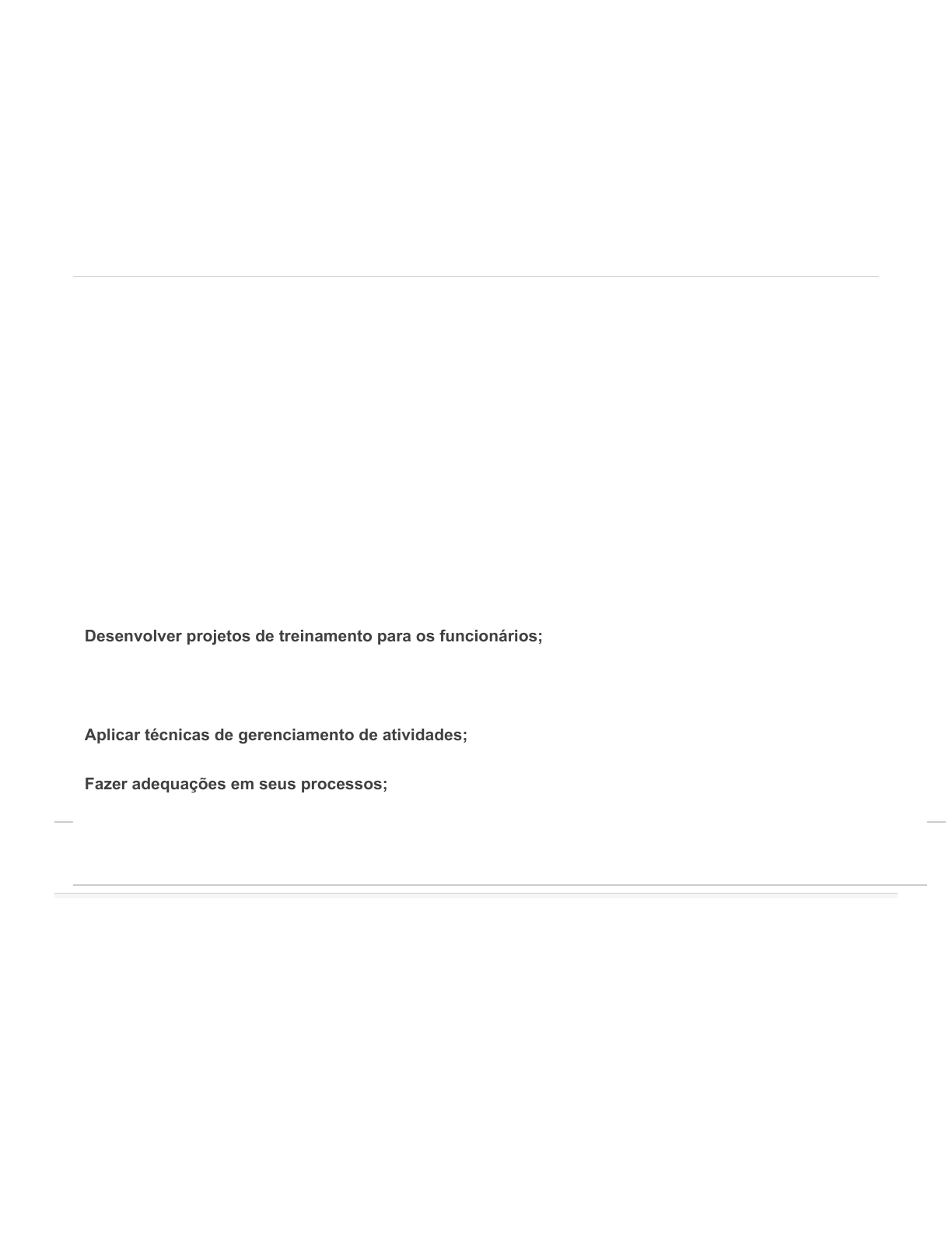 Desenvolver projetos de treinamento para os funcionários;