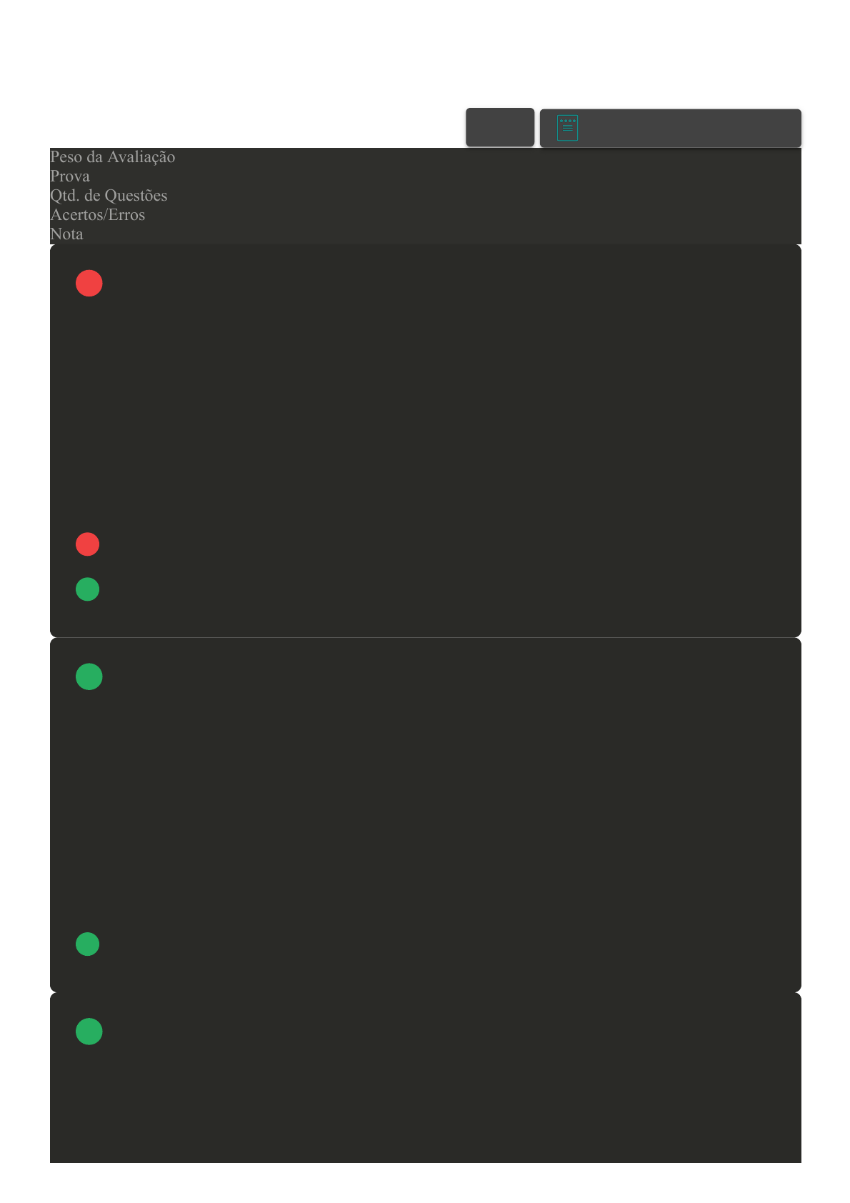 06/04/2022 22:28 Avaliação I - Individual 1/5 Prova Impressa GABARITO | Avaliação I - Individual (Cod.:739660) Peso da Avaliação 1,50 Prova 44077719 Qtd. de Questões 10 Acertos/Erros 9/1 Nota 9,00 A internet revolucionou o mundo da informática e comunicações. A invenção do telégrafo, telefone, rádio e computador prepararam o terreno para essa integração. A internet é ao mesmo tempo uma capacidade mundial de radiodifusão, um mecanismo de disseminação de informação e um meio para colaboração e interação entre indivíduos e seus computadores, sem levar em conta a localização geográfica. Sobre a origem da internet, assinale a alternativa CORRETA que apresenta o primeiro gerente do programa de pesquisa de computador do DARPA e o período: A Ricardo Kleinrock, a partir de julho de 1961. B Leonard Kleinrock, a partir de agosto de 1968. C Rebnott Licklider, a partir de agosto de 1962. D Joseph Carl Robnett Licklider, a partir de outubro de 1962. O desenvolvimento web é a área da tecnologia voltada à construção de sites, aplicativos, softwares, bancos de dados e quaisquer outras ferramentas que, de certa forma, constroem a internet como a conhecemos hoje. Qual tecnologia é uma linguagem para descrever a apresentação das páginas da web, incluindo cores, layout e fontes? A XHTML. B HTML. C WEBFONTS. D CSS. O HTML foi criado em 1991, por Tim Berners-Lee, na Suíça. O HTML (Hyper Text Markup Language) é uma linguagem de marcação de hipertexto. Documentos HTML podem ser interpretados por navegadores, mas conhecidos também como Browser. Sobre essa linguagem de marcação, classifique V para as sentenças verdadeiras e F as falsas: ( ) É a linguagem para descrever a estrutura das páginas web. ( ) XHTML é uma variante do XML que usa a sintaxe HTML. VOLTAR A+ Alterar modo de visualização 1 2 3 06/04/2022 22:28 Avaliação I - Individual 2/5 ( ) O navegador usa as tags HTML para determinar como exibir o documento. ( ) Os documentos HTML são divididos em parágrafos, que são definidos através da sintaxe <p>. Assinale a alternativa que apresenta a sequência CORRETA: A F - V - F - F. B V - F - V - V. C F - F - F - V. D V - F - F - V. A internet revolucionou o mundo da informática e comunicações. A invenção do telégrafo, telefone, rádio e computador prepararam o terreno para essa integração. A internet é ao mesmo tempo uma capacidade mundial de radiodifusão, um mecanismo de disseminação de informação e um meio para colaboração e interação entre indivíduos e seus computadores, sem levar em conta a localização geográfica. Sobre a origem da internet, assinale a alternativa CORRETA que apresenta qual foi o primeiro nó da "ARPANET" e quem instalou a primeira interface de processamento de mensagens na UCLA e conectou o primeiro servidor de computador: A BBN; Centro de Mensuração de Rede da UCLA, em outubro de 1968. B Centro de Mensuração de Rede da UCLA; a Stanford Research Institute, em setembro de 1969. C Stanford Research Institute; a UCSB, em outubro de 1968. D Centro de Mensuração de Rede da UCLA; a BBN, em setembro de 1969. A internet revolucionou o mundo da informática e comunicações. A invenção do telégrafo, telefone, rádio e computador prepararam o terreno para essa integração. A internet é ao mesmo tempo uma capacidade mundial de radiodifusão, um mecanismo de disseminação de informação, e um meio para colaboração e interação entre indivíduos e seus computadores, sem levar em conta a localização geográfica. Sobre a origem da internet, assinale a alternativa CORRETA que apresenta em que trabalho a palavra “pacote” foi adotada e qual foi a velocidade de linha proposta para ser usada no projeto da "ARPANET": A Foi adotada do trabalho desenvolvido pelo grupo DARPA. A velocidade foi atualizada de 12Kb para 25Kb. B Foi adotada do trabalho desenvolvido no BBN. A velocidade foi atualizada de 24Kb para 50Kb. C Foi adotada do trabalho desenvolvido no MIT. A velocidade foi atualizada de 12Kb para 25Kb. D Foi adotada do trabalho desenvolvido no NPL. A velocidade foi atualizada de 24Kb para 50Kb. 4 5 06/04/2022 22:28 Avaliação I - Individual 3/5 O Bootstrap é um framework web com código-fonte aberto para desenvolvimento de componentes de interface e front-end para sites e aplicações web usando HTML, CSS e JavaScript, baseado em modelos de design para a tipografia, melhorando a experiência do usuário em um site amigável e responsivo. Sobre as principais características do Bootstrap, analise as sentenças a seguir: I- Oferece um conjunto de folhas de estilo, oferecendo uma aparência moderna. II- Possui componentes como classes de CSS. III- Possui recursos de elementos de interfaces, incluindo, por exemplo, uma função de auto completar para campos de entrada. IV- Não oferece recurso de páginas responsivo. V- Bootstrap não é modular. Assinale a alternativa CORRETA: A As sentenças II e V estão corretas. B Somente a sentença IV está correta. C As sentenças I e IV estão corretas. D As sentenças I, II e III estão corretas. A internet revolucionou o mundo da informática e comunicações. A invenção do telégrafo, telefone, rádio e computador prepararam o terreno para essa integração. A internet é ao mesmo tempo uma capacidade mundial de radiodifusão, um mecanismo de disseminação de informação e um meio para colaboração e interação entre indivíduos e seus computadores, sem levar em conta a localização geográfica. Sobre a origem da internet, assinale a alternativa CORRETA que apresenta quando e quem concluiu o primeiro protocolo servidor a servidor da "ARPANET" e qual o seu nome: A Em dezembro de 1972, Grupo do DARPA, chamado Interface Message Processors. B Em dezembro de 1970, a Rede Grupo de Trabalho (NWG), chamado Network Control Protocol. C Em outubro de 1972, Grupo DARPA, chamado Network Control Protocol. D Em outubro de 1970, a Rede Grupo de Trabalho (NWG), chamado Interfac