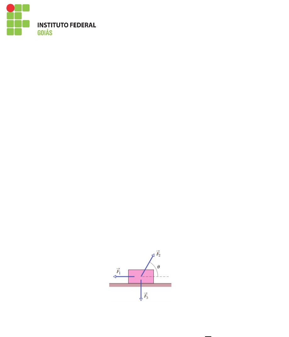 PROVA DE FÍSICA Valor da prova: 6,0 pontos Aluno(a): Atenção: Na solução das questões o aluno/a deverá apresentar o procedimento completo (abrir todas as contas e fazer os desenhos e esquemas de forças) . A falta de unidades físicas implicará em perda de pontos. O aluno deverá utilizar o formalismo matemático ensinado na solução das questões com vetores. Prova 3 1. A figura a seguir mostra três forças aplicadas a uma caixa que se desloca 3,00 m para a esquerda sobre um piso sem atrito. Os módulos das forças são F1 = 4,00 N, F2 = 11,00 N e F3 = 2,00 N; o ângulo indicado é θ = 450. Nesse deslocamento, calcule o trabalho total realizado sobre a caixa e o que acontece com a energia cinética final do sistema. 2. A única força que age sobre um corpo de 2,0 kg enquanto ele se move no semi- eixo positivo de um eixo x tem uma componente 𝐹𝐹𝑥𝑥 = −6 𝑥𝑥2 3 , com x em metros. A velocidade do corpo em x = 3,0 m é 8,0 m/s. Calcule: a) A velocidade do corpo em x = 4,0m; b) O valor positivo de x para o qual o corpo tem uma velocidade de 5,0 m/s. 3. Um objeto de massa igual a 3,0 kg é submetido a uma força de forma que a posição do objeto em função do tempo é dada por y = 4,0t – 6,0t2 + 1,0t3, com x em metros e t em segundos. O trabalho realizado pela força sobre o objeto de t = 0 a t= 3,0 é: INSTITUTO FEDERAL DE EDUCAÇÃO, CIÊNCIA E TECNOLOGIA DE GOIÁS. CÂMPUS GOIÂNIA 4. Uma força �⃗�𝐹 =(5,00 N)i ̂ + (7,00 N)j ̂ + (7,00 N)k ̂ age sobre um objeto de 2,00 kg que se move de uma posição inicial 𝑑𝑑𝑖𝑖 = (3,00 m)i ̂ - (1,00 m)j ̂ + (5,00 m)k ̂ para uma posição final 𝑑𝑑f =(5,00 m)i ̂ - (3,00 m)j ̂ + (7,00 m)k ̂ em 2,00 s. Calcule, respectivamente, o trabalho realizado pela força sobre o objeto no intervalo de 2,00 s, a potência média desenvolvida pela força nesse intervalo e o ângulo entre os vetores 𝑑𝑑i e 𝑑𝑑𝑓𝑓 .