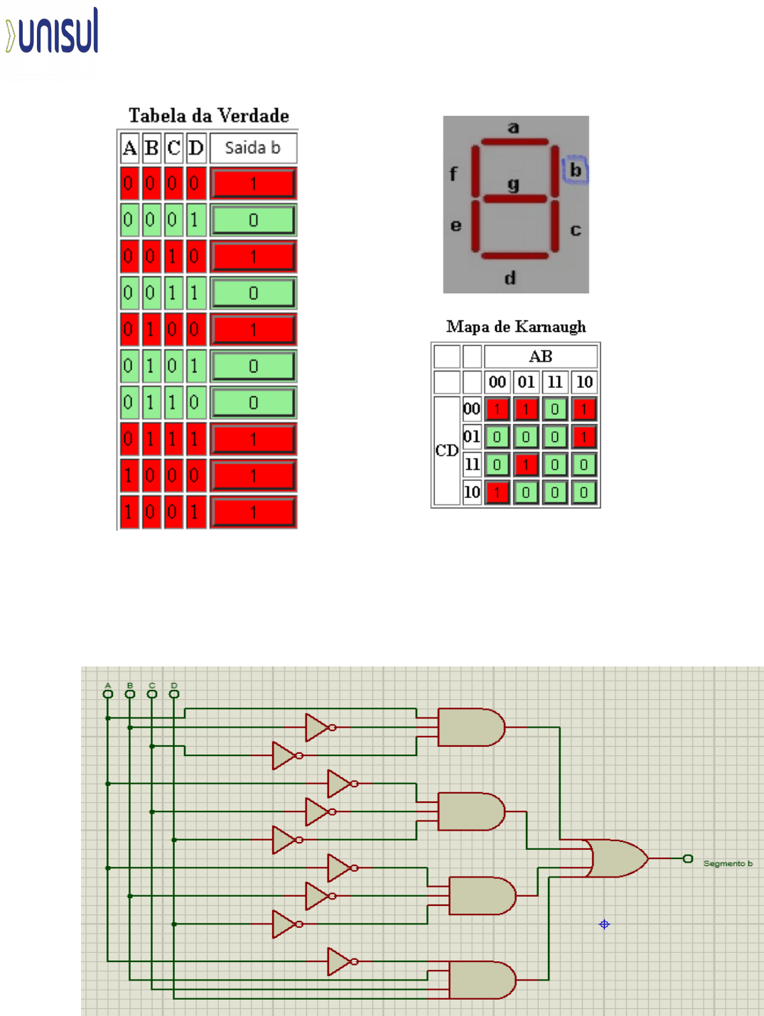 A partir da implementação da saída a do decodificador para display de 7 segmentos, você deve escolher um outro segmento e implementar a saída relativa do decodificador. Poste um documento contendo a t