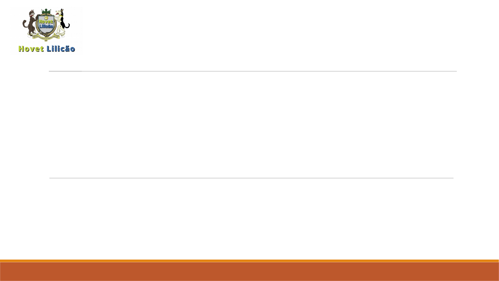 EXAME CLÍNICO E PARÂMETROS NORMAIS EM CÃES E GATOS MELISSA meneses dantas pereira ACADEMICA DE MEDICINA VETERINARIA NA UNIVERSIDADE DE GUARULHOS Trabalho apresentado À EQUIPE DO HOVET LILICÃO - ESTÁGIO EM MEDICINA VETERINÁRIA 2022 O exame clinico é necessário devido à: Impossibilidade de comunicação entre o homem e o animal; Casos em que a história contada pelo tutor é vaga; Quando a queixa principal é diferente do sistema comprometido; Entre outros. Introdução Diminuída - apático; Ausente – coma; Normal; Aumentada – excitado. Nunca esquecer que o temperamento típico individual deve ser levado em consideração. Nível de consciência Avaliar o comportamento do paciente considerando a sua reação a estímulos (ex: estalos de dedos) Avaliar se o animal assume algum padrão de postura pouco usual, indicando que algo não está normal. Exemplo: Curvatura da coluna vertebral em casos de processos dolorosos em cavidade abdominal Postura Percepção de dor Nocicepção Escala da Universidade do Colorado proposta para avaliação da dor aguda em gatos, com escore de zero a quatro (adaptada de HELLYER et al., 2007). Percepção de dor Nocicepção Escala da Universidade do Colorado proposta para avaliação da dor aguda em cães, com escore de zero a quatro (adaptada de HELLYER et al., 2007). Considerar: Espécie; Raça; Aptidão. Classificando como: Caquético; Magro; Normal; Gordo; Obeso. Estado nutricional Conseguir identificar a causa: Endógena: distúrbio endócrino (p. ex.,hipotireoidismo); Exógena: alimentação mal orientada Mista: manejo alimentar incorreto + distúrbios endócrinos. Estado nutricional Uma das formas de quantificar a desidratação é comparando-se o peso corporal antes da desidratação com o peso do animal desidratado; Avaliar o ressecamento e o enrugamento da pele; Realizar o pinçamento da pele com os dedos e logo em seguida soltar, a mesma deve voltar à posição normal rapidamente (até 2 segundos em média); Quanto maior for o grau de desidratação, maior será o tempo, em segundos, que a pele permanecerá deformada. Hidratação Hidratação Ao avaliar tomar cuidado com: Raças que apresentam pele em excesso; Animais idosos; Estado nutricional do animal (Pacientes gordos podem ter seu grau de desidratação subestimado ou superestimado em animais magros). Hidratação Fonte: FEITOSA, Francisco Leydson F.. Semiologia Veterinária: A Arte do Diagnóstico Perda excessiva de líquido (diarreia e/ou vômito) Principais causas da desidratação Causas principais da desidratação: Ingestão inadequada de água Avaliar as mucosas aparentes; Indicam o estado de saúde atual, devido a delgada espessura da pele e grande vascularização; Mucosas Oculopalpebrais; Nasal; Bucal; Vulvar; Prepucial; Anal. Além das alterações de coloração, notar se há presença de ulcerações, hemorragias e secreções durante o exame visual. Mucosas Visíveis Coloração das mucosas depende de vários fatores. Qualidade do sangue circulante, Eficácia das trocas gasosas, Existência ou não de hemoparasitos, Função hepática adequada. As mucosas de um recém-nascido apresentam coloração rósea mais claro. Em fêmeas no cio, a mucosa vulvar pode se encontrar avermelhada. Em determinadas raças a coloração das mucosas tende a ser mais avermelhada (cães: Fila Brasileiro, Cocker Spaniel, Bulldog, Boxer...) É possível notar um problema localizado (apenas uma mucosa) ou um comprometimento sistêmico. Coloração das mucosas Coloração de Mucosa Normal Ictérica Hipocorada Congesta Cianótica Coloração de Mucosa “Amarelão” ou Tristeza Parasitária Bovina Causada por babesia – pálida e por anaplasmose - amarelada Tempo de preenchimento capilar É importante em casos de desidratação – tempo do refluxo capilar fica aumentado Cuidado em casos de hidratação subcutânea quando, ainda, não foi atingida a circulação sistêmica. TPC Animal sadio: 1 – 2 segundos Animal desidratado: 2 – 4 segundos Animal gravemente desidratado: > 5 segundos Os sinais vitais são quatro: (1) pressão arterial, (2) pulsação, (3) frequência respiratória e (4) temperatura corporal Sinais vitais São de extrema importância, pois pode sugerir o comprometimento de outro sistema que não tenha sido comentado pelo tutor (situação orgânica do paciente naquele momento) Parâmetros Vitais Pressão 1° - Pressão sistólica (PS) é a pressão exercida pelo sangue como resultado da contração do ventrículo esquerdo. CORAÇÃO EMPURRA O SANGUE PARA O CORPO 2° - Pressão diastólica (PD) é a pressão exercida pelo sangue dentro da veia quando o ventrículo está em repouso. CORAÇÃO RELAXA Exemplo: PS/PD = 150/95 (normalmente, lemos “15 por 09”) Pressão CÉREBRO: hemorragias, demências, convulsões e deficit neurológico; OLHOS: Cegueira, Glaucoma, descolamento de retina e hemorragia; CORAÇÃO: Hipertrofia ventricular esquerda, alterações nas artérias e arteríolas; RINS: Glomerulosclerose, degeneração tubular, atrofia glomerular e fibrose intersticial Frequência respiratória “Frequência respiratória é a designação dada em fisiologia ao número de ciclos respiratórios que um animal completa num lapso específico de tempo, sendo mais comum ser expressa em respirações por minuto.” – MRPM ou MPM A função principal do sistema respiratório é o transporte de oxigênio e de dióxido de carbono entre o meio ambiente e os tecidos. Sistema respiratório Está envolvido com: Comunicação por sons e feromônios; Termorregulação; Metabolismo de substâncias endógenas e exógenas; Proteção contra poeiras inaladas, gases tóxicos e agentes infecciosos; O aumento da pressão abdominal facilita a micção, defecação Durante um parto, a participação ativa dos músculos respiratórios auxilia a saída dos filhotes. Auscultação No tórax é possível ouvir ruídos nasais, laríngeos, traqueais e pulmonares Auscultação Fonte: FEITOSA, Fra