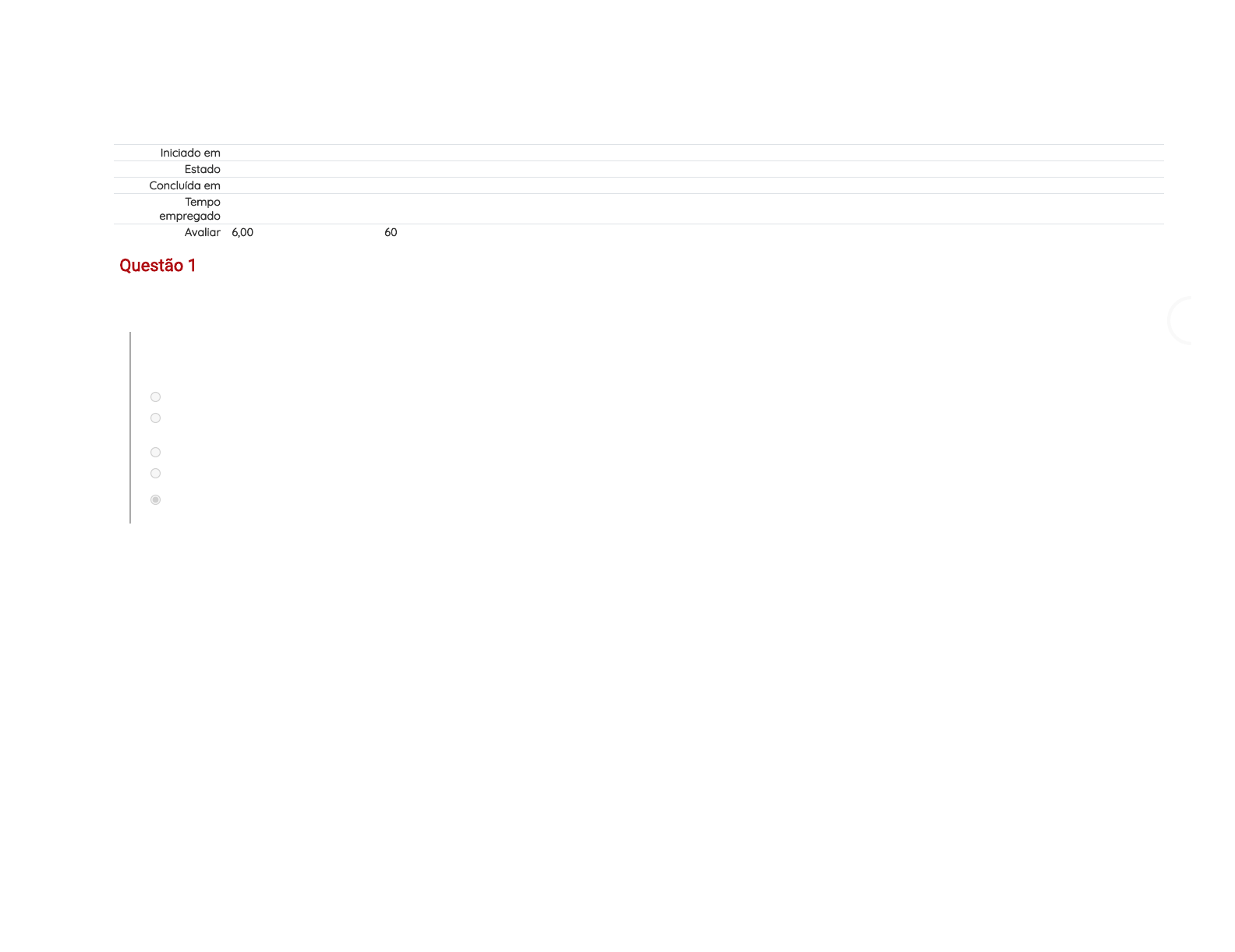 23/04/2022 09:19 Avaliação Formativa II - Vale 20% da nota: Revisão da tentativa https://virtual.uninta.edu.br/mod/quiz/review.php?attempt=3607685&cmid=1001357 1/7 Iniciado em Saturday, 23 Apr 2022, 10:04 Estado Finalizada Concluída em Saturday, 23 Apr 2022, 10:18 Tempo empregado 13 minutos 56 segundos Avaliar 6,00 de um máximo de 10,00(60%) Questão 1 Correto Atingiu 1,00 de 1,00 Quais foram as principais fontes para a formação do Capital Primitivo no capitalismo europeu do século XVI? Escolha uma opção: a. Segundo Marx, a expropriação de terras por parte dos nobres, que despossuíram a pequenos agricultores e os condenaram a ter que vender a força de seu trabalho b. Os metais preciosos provenientes da América, a concentração de terras nas mãos da nobreza e de comerciantes ricos, e o acréscimo na produção de ferramentas e utensílios artesanais para sua venda fora das pequenas cidades onde eram produzidas c. Somente é correto a a�rmativa do item b d. A venda das possessões da Igreja, expropriadas e leiloadas pelas monarquias liberais, e a produção agrícola em grande escala e. Os itens b e c são corretos A resposta correta é: Os itens b e c são corretos 23/04/2022 09:19 Avaliação Formativa II - Vale 20% da nota: Revisão da tentativa https://virtual.uninta.edu.br/mod/quiz/review.php?attempt=3607685&cmid=1001357 2/7 Questão 2 Incorreto Atingiu 0,00 de 1,00 Questão 3 Correto Atingiu 1,00 de 1,00 Como influenciou a revolução científica ao capitalismo nascente? Escolha uma opção: a. Os novos saberes abriram novos horizontes comerciais, pois ajudaram a desenvolver a arte da navegação b. Somente está correto a a�rmativa c c. Desenvolveu-se a tecnologia para auxiliar a produção agrícola e artesanal, o qual ajudou a produzir mais bens d. Somente estão corretas as a�rmações a e b e. Os cientistas colocaram-se baixo a proteção e ajuda econômica dos nobres, e por isso foi possível desenvolver novas formas de governabilidade e formas cientí�cas de organizar a economia, o qual fez possível a organização monetária na Europa e o nascimento do capitalismo liberal A resposta correta é: Somente estão corretas as a�rmações a e b Modo de produção característico da Idade Média inclusive de uma boa parte da Idade Moderna Escolha uma opção: a. Artesanato b. Agricultura de subsistência c. Feudalismo d. Capitalismo e. Caça, pesca e permuta de produtos A resposta correta é: Feudalismo 23/04/2022 09:19 Avaliação Formativa II - Vale 20% da nota: Revisão da tentativa https://virtual.uninta.edu.br/mod/quiz/review.php?attempt=3607685&cmid=1001357 3/7 Questão 4 Correto Atingiu 1,00 de 1,00 Considerando que as afirmativas abaixo podem ser excludentes, assinale as sentenças verdadeiras com (V) e as falsas com (F). É correto afirmar que o Capitalismo teve sua origem: I. Na venda dos utensílios artesanais, anteriormente usados como produto de troca. II. Na produção agrícola, que deixou de ser de subsistência familiar para passar a ser negócio para grandes proprietários de terras alimentarem as grandes cidades. III. Na sobre-produção das ferrarias, olarias e outras oficinas, que passaram a vender seus excedentes e contratar empregados. IV. Nas fábricas e fundidoras. A sequência correta é: Escolha uma opção: a. F – V – V – F b. V – V – V – F c. F – F – V – F d. V – F – F – V e. F – F – V – V A resposta correta é: V – V – V – F 23/04/2022 09:19 Avaliação Formativa II - Vale 20% da nota: Revisão da tentativa https://virtual.uninta.edu.br/mod/quiz/review.php?attempt=3607685&cmid=1001357 4/7 Questão 5 Correto Atingiu 1,00 de 1,00 Questão 6 Correto Atingiu 1,00 de 1,00 São eventos que fizeram que o capitalismo se impusesse sobre o feudalismo Escolha uma opção: a. O desenvolvimento da navegação e o acúmulo de riqueza trazido das colônias b. As opções anteriores são corretas, porém não é correto o item e c. O apoio dos monarcas à livre competência entre comerciantes diferentes e o reinos, principalmente entre Espanha, Portugal, Inglaterra e Holanda d. Exceto os itens b e d, as outras opções são corretas e. Os novos Inventos que acompanharam e impulsionaram o desenvolvimento da navegação e o acúmulo de capital nas mãos da nobreza A resposta correta é: Exceto os itens b e d, as outras opções são corretas Período em que se iniciou o desenvolvimento das forças produtivas do capitalismo. Escolha uma opção: a. A partir do século XIV b. Apenas no século XVIII c. Durante os séculos XV e XVI d. A partir do século XV e. Durante os Séculos XVII e XVIII A resposta correta é: Durante os séculos XV e XVI 23/04/2022 09:19 Avaliação Formativa II - Vale 20% da nota: Revisão da tentativa https://virtual.uninta.edu.br/mod/quiz/review.php?attempt=3607685&cmid=1001357 5/7 Questão 7 Incorreto Atingiu 0,00 de 1,00 Questão 8 Correto Atingiu 1,00 de 1,00 O feudalismo estabeleceu relações econômicas, onde o pro dutor direto (o camponês) não ficava com nada de sua produção, enquanto que entregava ao senhor feudal o imposto de seus produtos e do uso das terras que, frequentemente, eram dele. Essa afirmativa pode ser considerada. Escolha uma opção: a. Falsa b. Verdadeira Sua resposta está incorreta. A resposta correta é: Falsa O pagamento do tributo ao nobre fazia-se unicamente por meio de serviços, incluindo o serviço militar, para defesa das terras do senhor feudal e em ouro. Assim, tinham-se estabelecido as relações de servidão e dependência que caracterizariam a economia desse longo período histórico. Essa afirmativa pode ser considerada: Escolha uma opção: a. Falsa b. Verdadeira Sua resposta está correta. A resposta correta é: Falsa 23/04/2022 09:19 Avaliação Formativa II - Vale 20% da nota: Revisão da tentativa https://virtual.uninta.edu.br/mod/quiz/review.php?attempt=3607685&cmid=1001357 6/7 Questão 9 Incorreto Atingiu 0,00 de 1,00 Como influenciou