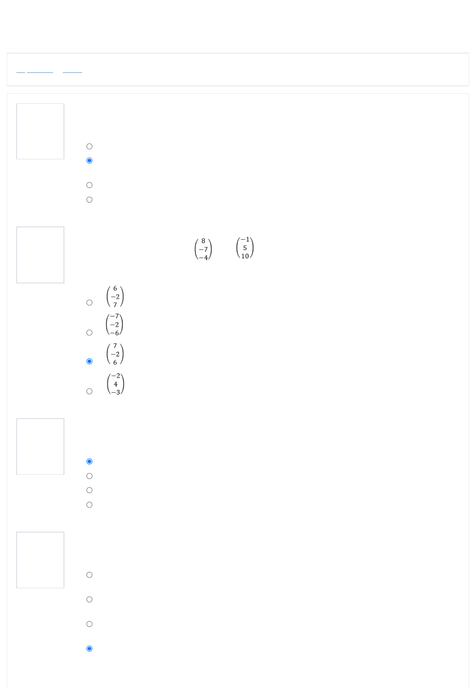 Página inicial / Teste 3 Questão 1 Ainda não respondida Vale 1,00 ponto(s). Questão 2 Ainda não respondida Vale 1,00 ponto(s). Questão 3 Ainda não respondida Vale 1,00 ponto(s). Questão 4 Ainda não respondida Vale 1,00 ponto(s). Entende-se por Matemática aplicada aos negócios Escolha uma opção: Ferramenta de suporte a tomada de decisões com o auxílio do gestor sem necessariamente influenciar em resultados. Ferramenta básica que auxilia a formação de custos, preços, redução de perdas e também utilizada como um suporte ao processo de gestão. Estuda somente o aporte de cada serviço no lucro das empresas. Estuda somente o aporte de cada produto no lucro das empresas. Efetue a adição entre as matrizes A = e B = Escolha uma opção: Matriz é composta por linhas e colunas que são representadas pelas letras. Escolha uma opção: “i” e “j” “l” e “c” “j” e “i” “c” e “l” Para a matemático podemos assinalar como um conceito de limite: Escolha uma opção: É um conceito fundamental em álgebra linear e análise sobre o comportamento desta função próxima a um valor particular de sua variável independente. É um conceito fundamental em cálculo e análise estatística de dados aleatórios sobre o comportamento desta função próxima a um valor particular de sua variável independente. É um conceito fundamental em cálculo e análise sobre o comportamento desta função distante a um valor particular de sua variável dependente. É um conceito fundamental em cálculo e análise sobre o comportamento desta função próxima a um valor particular de sua variável independente. https://ava.unisanta.br/ https://ava.unisanta.br/mod/quiz/view.php?id=211313 Questão 5 Ainda não respondida Vale 1,00 ponto(s). Questão 6 Ainda não respondida Vale 1,00 ponto(s). Questão 7 Ainda não respondida Vale 1,00 ponto(s). Questão 8 Ainda não respondida Vale 1,00 ponto(s). Questão 9 Ainda não respondida Vale 1,00 ponto(s). Assinale a alternativa que apresenta de forma correta a matriz transposta de Escolha uma opção: Efetuando o produto da matriz por 3 teremos: Escolha uma opção: O resultado do determinante , será: Escolha uma opção: 34 22 - 14 18 Resolva o sistema de duas equações e assinale a alternativa que corresponda ao valor correto de x e y. Escolha uma opção: X = 3 e y = - 1 X = 0 e y = -2 X = 1 e y = 0 X = 1 e y = - 1 Todo gestor mediante uma análise de dados e comprovação efetiva de resultados deverá: Escolha uma opção: Ter domínio total do financeiro e do processo de produção mediante somente aos dados coletados. Realizar uma gestão com foco no desempenho e aplicabilidade de processos decisórios. Realizar uma gestão parcial com foco em resultados que poderão mudar. Domínio total dos resultados independente da empresa. Questão 10 Ainda não respondida Vale 1,00 ponto(s). Resolvendo o determinante de ordem 3, , teremos como resultado: Escolha uma opção: - 8 1/9 1/8 - 9 ◄ Fórum 3 Seguir para... Questão Discursiva ► https://ava.unisanta.br/mod/forum/view.php?id=211312&forceview=1 https://ava.unisanta.br/mod/assign/view.php?id=211314&forceview=1