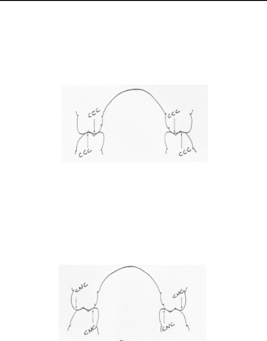 ESTUDO DIRIGIDO: AULA 3 1) O que, quem e qual a função das VIPS? V.I.P.S são as cúspides vestibulares dos dentes inferiores posteriores e as cúspides linguais dos dentes superiores posteriores. São as cúspides de suporte, ou cúspides cêntricas que ocluem com as áreas da FC antagônica. Sua função é manter a distância entre a maxila e a mandíbula. Estas cúspides também desempenham um importante papel na mastigação, pois o contato ocorre tanto no aspecto interno como no aspecto externo das cúspides. 2) O que, quem e qual a função das cúspides NÃO cêntricas? Cúspides não cêntricas são as cúspides vestibulares dos dentes superiores posteriores e as cúspides linguais dos dentes inferiores posteriores. A função principal das cúspides não cêntricas é minimizar o impacto tecidual, como já foi mencionado, e manter o bolo alimentar na mesa oclusal para mastigação. As cúspides não cêntricas também dão estabilidade mandibular, de maneira que quando os dentes estão totalmente ocluídos haja uma relação oclusal exata e definida e fisiológicamente tem a propriedade de proteger a língua e bochechas, o que faz com que, anatomicamente, essas cúspides sejam bem verticalizadas e com pouca inclinação. 3) Para o estudo das vertentes, sugiro a confecção de um único desenho das cúspides e pintar em diferentes cores cada vertente como método de fixação. A) O que e quais são as vertentes triturantes (interna)? São Planos e arestas situados na face oclusal propriamente dita (entre as cúspides vestibulares e linguais) ao longo das quais se movem as cúspides cêntricas/suporte quando são assumidas posições funcionais da mandíbula. B) O que e quais são as vertentes lisas (externas)? Situam-se a partir do ápice das cúspides vestibulares e linguais, na face livre das coroas dentárias. C) O que e quais são as vertentes protrusivas? Planos e arestas situados na face oclusal propriamente dita (entre as cúspides vestibulares e linguais) ao longo das quais se movem as cúspides de suporte quando são assumidas posições funcionais da mandíbula. D) O que e quais são as vertentes retrusivas? São as vertentes dos dentes posteriores que deslizam durante o movimento retrusivo da mandíbula, com os dentes em contato. São as vertentes mesiais das cúspides superiores e distais das cúspides inferiores. E) O que e quais são as vertentes de trabalho? Quando a mandíbula executa o movimento de lateralidade, verifica-se que no lado de trabalho, os dentes inferiores deslizam contra os dentes superiores. Durante este movimento são as vertentes que estabelecem os contatos, e, portanto, as mesmas são denominadas vertentes de trabalho. São elas: -Vertentes livres (ou lisas) das cúspides vestibulares dos dentes inferiores (e ); -Vertentes triturantes das cúspides linguais dos dentes inferiores ( g ); -Vertentes triturantes das cúspides vestibulares dos dentes superiores (b); - Vertentes lisas das cúspides palatinas dos dentes superiores ( d ). F) O que e quais são as vertentes de balanceio? No mesmo movimento de lateralidade da mandíbula, no lado de balanceio, antes de desocluir, os contatos deslizantes se dão apenas nas cúspides cêntricas, em suas vertentes internas que são as: -Vertentes triturantes das cúspides palatinas dos dentes superiores ( c ); -Vertentes triturantes das cúspides vestibulares dos dentes inferiores ( f ) Vertentes de trabalho e Vertentes de balanceio 4) O que é overjet? Denomina-se overjet o trespasse horizontal em excesso da borda incisal dos dentes superiores sobre os inferiores e das cúspides vestibulares dos posteriores com relação às de seus homólogos inferiores. 5) O que é overbite? É a definição do trespasse entre os incisivos superiores e inferiores no plano vertical. 6) Descreva 9 critérios para uma ideal. 1) Contatos bilaterais simultâneos e estáveis entre todos os dentes, coincidindo com a harmonia muscular; 2) Alinhamento correto dos dentes nas arcadas; 3) Trespasse vertical e horizontal harmônicos; 4) Relação dente-periodonto normal, sem trauma oclusal; 5) Espaço funcional livre fisiológico; 6) Curvas de Compensação (SPEE e WILSON) em harmonia; 7) Movimentos mandibulares livres, sem interferências ou bloqueios; 8) Forças oclusais distribuídas nas áreas de trabalho e no sentido axial (longo eixo) dos dentes; 9) Perfeita harmonia entre a oclusão dentária e a articulação temporomandibular (ATM). 7) Um dos critérios importantes para uma oclusal ideal é a oclusão mutuamente protegida. Descreva de forma detalhada o que é esse tipo de oclusão. Os dentes anteriores, ao contrário dos dentes posteriores, estão em posição apropriada para receber as forças dos movimentos mandibulares excêntricos. Geralmente, portanto, pode-se afirmar que os dentes posteriores funcionam mais efetivamente em parar a mandíbula durante o fechamento, enquanto os dentes anteriores funcionam mais efetivamente em guiar a mandíbula durante os movimentos excêntricos. Observando estas funções, torna-se claro que os dentes posteriores deveriam contatar ligeiramente com mais força do que os dentes anteriores, quando os dentes estão ocluídos em MIH. Esta condição é descrita como oclusão mutuamente protegida. Ou seja, numa oclusão normal, quando os dentes anteriores estão em contato, os posteriores devem desocluir. De modo inverso, quando os dentes posteriores estão ocluídos, como ocorre na em MIH ou na ORC, os anteriores ficam sem contato efetivo formando a oclusão mutuamente protegida. 8) Outro fator importante para uma oclusão ideal é o tipo da transmissão de força. Descreva as vantagens da melhor direção (longo eixo) de incidência de força e desvantagens da pior direção (forças axiais/horizontais). Longo eixo (melhor direção): O processo de direcionar as forças oclusais através do longo eixo do dente é conhecido como carga axial. A carga axial pode ser alcançada por dois método