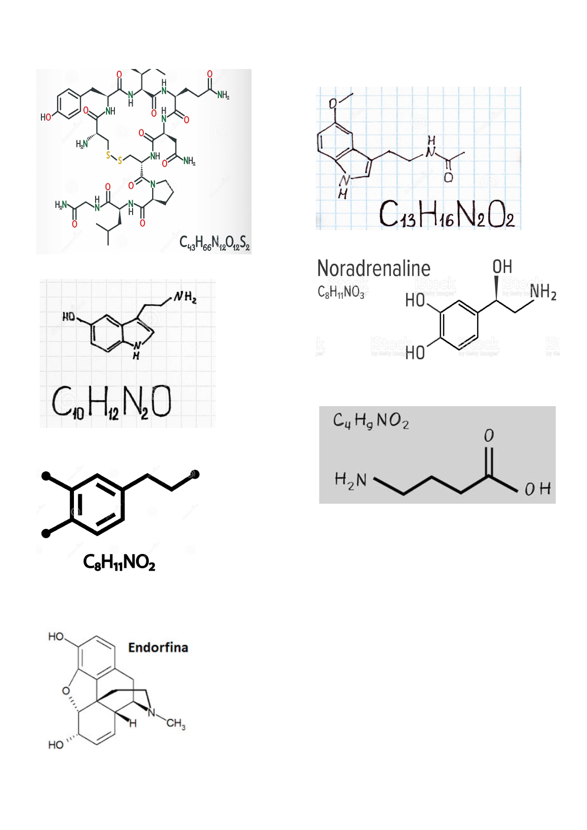 Ocitocina - Serotonina - Dopamina - Endorfina - C17H19NO3 Melatonina - Noradrenalina - Gaba -