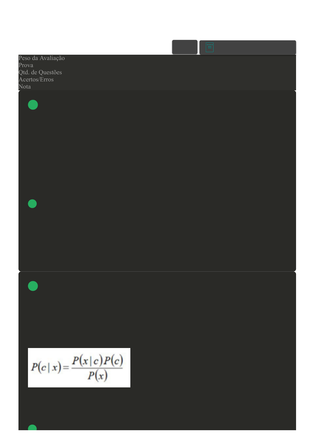 verdadeiras e F para as falsas: ( ) P (x) é a probabilidade original do preditor. ( ) P (c l x) é a