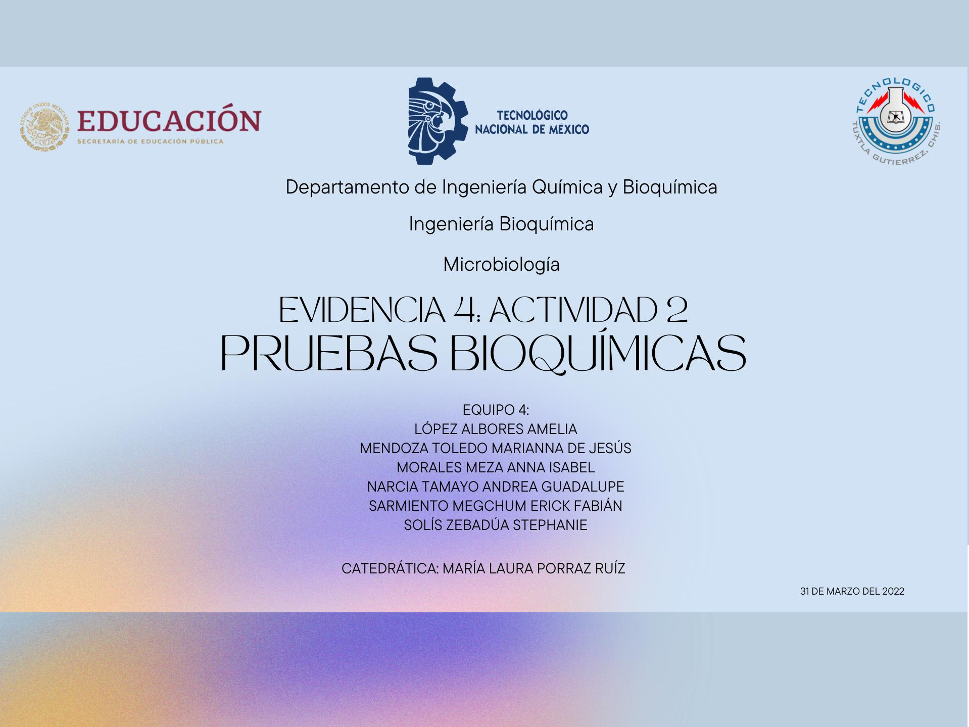 TSI LIA MIO SIM Triple Sugar Iron Agar Lisina Hierro Agar Movilidad indol, ornitina Medio sulfuro, indol y movilidad PRO PÓSI TO Observar la fermentación de carbohidratos en la familia Enterobacteriaceae Diferenciar microorganismos, especialmente Salmonella spp. Identificar enterobacterias con en base en movilidad, producción de indol y actividad de ornitina descarboxilasa. Verificar movilidad, producción de indol y de SH2 . Útil para diferenciar miembros de la familia Enterobacteriaceae. FUNDA MENTO El extracto de carne y la pluripeptona aportan nutrientes. Lactosa, sacarosa y glucosa son los carbohidratos fermentables. El tiosulfato de sodio es el sustrato para producción de H2S, el sulfato de hierro y amonio, es la fuente de iones Fe3+ , los cuales se combinan con el ácido sulfhídrico y producen sulfuro de hierro, de color negro. El rojo de fenol es el indicador de pH. Por fermentación de azúcares, se producen ácidos, que se detectan por medio del indicador rojo de fenol, el cual vira al color amarillo en medio ácido. El tiosulfato de sodio se reduce a sulfuro de hidrógeno que reacciona luego con una sal de hierro proporcionando el típico sulfuro de hierro de color negro. Peptona y extracto de levadura aportan los nutrientes. Glucosa es el carbohidrato fermentable y la lisina es el sustrato utilizado para detectar la enzimas decarboxilasa y deaminasa. El citrato de hierro y amonio y el tiosulfato de sodio son los indicadores de la producción de HS. El púrpura de bromocresol, es el indicador de pH. Los m.o. fermentadores de glucosa acidifican el medio y provocan el viraje del color uva al amarillo. El ambiente ácido favorece la actividad enzimática decarboxilasa y se metaboliza la lisina a cadaverina elevando el pH del medio de cultivo y tornándolo al color púrpura o violeta. Los m.o. fermentadores de glucosa que no tienen actividad lisina decarboxilasa, producen un viraje de la totalidad del medio de cultivo al color amarillo. A las 24 horas de incubación se observa el fondo del tubo color amarillo y la superficie de color violeta por consumo de las peptonas que producen alcalinidad. La generación de HS se ve por el ennegrecimiento del medio. La desaminación de la lisina produce un ácido α-ceto-carbónico, el cual con la sal de hierro y bajo la influencia del O2 forma un color rojizo en la superficie del medio. Muy nutritivo por la presencia de extracto de levadura, peptona y tripteína. La tripteína aporta gran cantidad de triptófano, sustrato de la enzima triptofanasa a partir del cual se forma indol que puede ser revelado con el reactivo de Ehrlich o de Kovac´s por la formación de un compuesto de color rojo. La glucosa es el carbohidrato fermentable, la ornitina es el sustrato para la detección de la enzima ornitina decarboxilasa, el púrpura de bromocresol es el indicador de pH (alcalino: uva y ácido: amarillo). Agar semisólido para detectar movilidad, evidenciada por enturbiamiento del medio o por crecimiento que difunde mas allá de la línea de inoculación. Los m.o. fermentadores de glucosa acidifican el medio de cultivo y producen viraje del uva al amarillo. Las condiciones de acidez son favorables para la actividad enzimática ornitina decarboxilasa, que actúa sobre la ornitina generando putrescina, con la consecuente alcalinización del medio de cultivo y viraje al color púrpura La tripteína y la peptona aportan nutrientes. El triptófano compone a la triptepina y puede ser metabolizado para formar indol. En el proceso interviene un conjunto de enzimas (triptofanasas). El indol producido se combina con el aldehído del reactivo de Ehrlich o de Kovac´s, para originar un compuesto de color rojo. A partir del tiosulfato de sodio los m.o. pueden generar SH2 que reacciona con el Fe presente formándose un compuesto de color negro. Ser semisólido lo hace ideal para detectar movilidad, que se evidencia por el enturbiamiento del medio o por crecimiento que difunde mas allá de la línea de siembra del microorganismo en estudio. TSI LIA MIO SIM Forma de inoculación y tiempo de incubación A partir de un cultivo puro, con aguja de inoculación inocular picando el fondo y extendiendo sobre la superficie. En aerobiosis, a 33-37°C por 18- 24 h. A partir de un cultivo puro con una aguja de inoculación, inocular picando el fondo y extendiendo sobre la superficie. En aerobiosis, a 33-37 ºC durante 18-24 horas. A partir de un cultivo puro, por punción profunda con aguja de inoculación. En aerobiosis, a 33-37 °C durante 18-24 horas. Por punción profunda con aguja de inoculación recta. Inocular el centro del tubo, y la punción debe abarcar 2 tercios de profundidad del medio de cultivo desde la superficie. En aerobiosis, a 33-37 °C, durante 18-24 horas. Tratamiento post incubación - - Prueba de Indol: Agregar al medio de cultivo 3-5 gotas de Indol Reactivo. Interpretación de resultados +/- Superficie alcalina/profundidad ácida (pico rojo/fondo amarillo): el microorganismo solamente fermenta la glucosa. Superficie ácida/Profundidad ácida (pico amarillo/fondo amarillo): el microorganismo fermenta glucosa, lactosa y/o sacarosa. Superficie alcalina/Profundidad alcalina (pico rojo/fondo rojo): el microorganismo es no fermentador de azúcares. La presencia de burbujas o la ruptura del medio de cultivo indican que el microorganismo produce gas. El ennegrecimiento del medio indica que el microorganismo produce ácido sulfhídrico. Descarboxilación de la lisina: Resultado Positivo: superficie alcalina / profundidad alcalina (pico violeta / fondo violeta). Resultado negativo: superficie alcalina /profundidad ácida (pico violeta / fondo amarillo). Desaminación de la lisina: Resultado positivo: superficie rojiza / profundidad ácida. Esto sucede con cepas del género Proteus, Providencia y algunas de Morganella spp. Producción de SH2 : Resultado positivo: ennegrecimiento del medio de cultivo (especialmente en el límite entre la superficie y profund