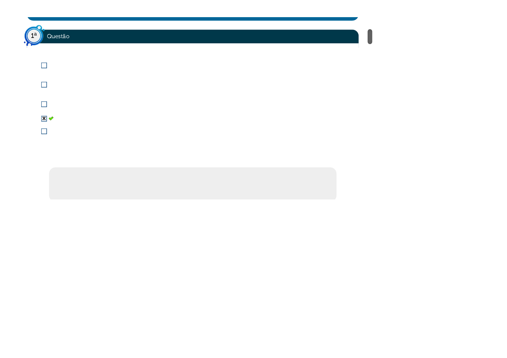 09/05/2022 10:40 Estácio: Alunos https://simulado.estacio.br/alunos/ 1/1 Acerto: 1,0 / 1,0 Qual é a maior diferença entre a taxa de juros e o prazo de pagamento? A taxa de juros se refere a uma porcentagem que irá incorrer em cima de um valor emprestado, enquanto o prazo de pagamento se refere a um período, nunca maior do que 5 anos, que alguém possui para pagar o empréstimo. O prazo de pagamento é o tempo que alguém tem para terminar de pagar um empréstimo, e a taxa de juros é uma porcentagem que sempre se altera com o tempo e que influenciará o valor enquanto alguém pagar um empréstimo. A taxa de juros se refere ao valor que uma pessoa receberá ao final do empréstimo, enquanto o prazo de pagamento se refere ao tempo que uma pessoa tem para pagar o empréstimo. A taxa de juros se refere a uma porcentagem que irá incorrer em cima de um valor emprestado, enquanto o prazo de pagamento se refere ao tempo que uma pessoa tem para pagar o empréstimo. O prazo de pagamento é um valor final que o banco exige para quitar o empréstimo, e a taxa de juros é um valor aleatório que se deve usar para calcular quanto se pagará por mês. Respondido em 09/05/2022 10:14:10 Explicação: A resposta correta é: A taxa de juros se refere a uma porcentagem que irá incorrer em cima de um valor emprestado, enquanto o prazo de pagamento se refere ao tempo que uma pessoa tem para pagar o empréstimo. Questão1 a