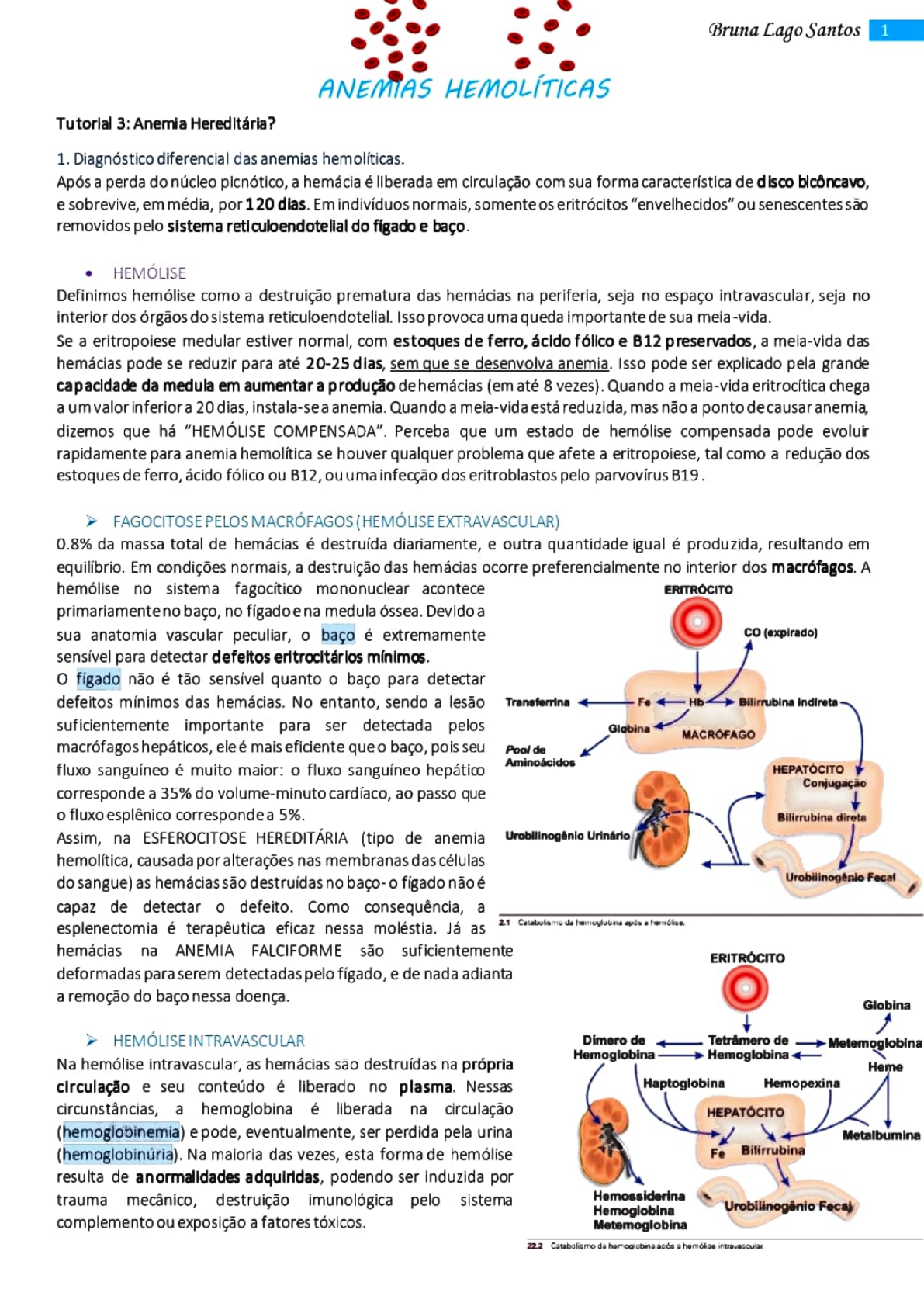 Definimos hemólise como a destruiç�o prematura das hemácias na periferia, seja no espaço intravascular, seja no