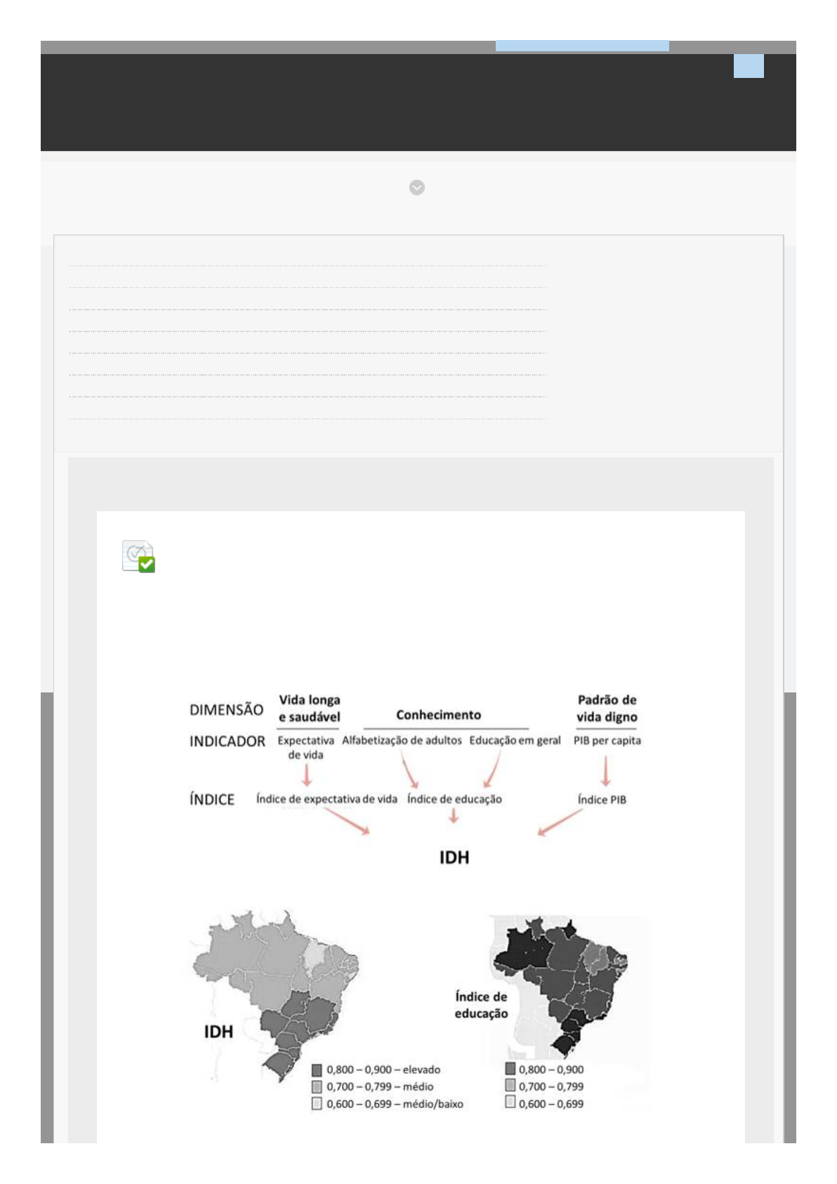15/03/2022 19:54 Revisar envio do teste: QUESTIONÁRIO UNIDADE I – ... https://ava.ead.unip.br/webapps/assessment/review/review.jsp?attempt_id=_76542845_1&course_id=_213031_1&content_id=_2623675_1&retur… 1/6 Revisar envio do teste: QUESTIONÁRIO UNIDADE I DESENVOLVIMENTO SUSTENTAVEL D32C_15601_R_20221 CONTEÚDO Usuário THAINARA FERNANDES DE ARAUJO Curso DESENVOLVIMENTO SUSTENTAVEL Teste QUESTIONÁRIO UNIDADE I Iniciado 15/03/22 19:50 Enviado 15/03/22 19:55 Status Completada Resultado da tentativa 5 em 5 pontos Tempo decorrido 4 minutos Resultados exibidos Respostas enviadas, Perguntas respondidas incorretamente Pergunta 1 O Índice de Desenvolvimento Humano é uma medida comparativa de pobreza, alfabetização, esperança de vida para os diversos países do mundo. Seu cálculo vai de 0 (zero) a 1 (um), sendo que quanto mais próximo da unidade, mais desenvolvido é considerado o país. A escolaridade inclui a alfabetização dos adultos e a educação primária, secundária e terciária da população em geral. O PIB per capita entra no cálculo do IDH como um substituto de uma medida do padrão de vida ou de distribuição de renda. A longevidade relaciona-se à saúde da população. A �gura a seguir mostra os índices que compõem o IDH. O mapa à esquerda mostra o valor do IDH calculado para os estados brasileiros em 2008, já o mapa à direita mostra o valor do índice de educação, um dos componentes do IDH. Com base nos dados apresentados na �gura, pode-se concluir que: UNIP BIBLIOTECAS MURAL DO ALUNOCONTEÚDOS ACADÊMICOS 0,5 em 0,5 pontos http://company.blackboard.com/ https://ava.ead.unip.br/webapps/blackboard/execute/courseMain?course_id=_213031_1 https://ava.ead.unip.br/webapps/blackboard/content/listContent.jsp?course_id=_213031_1&content_id=_2606281_1&mode=reset https://ava.ead.unip.br/webapps/portal/execute/tabs/tabAction?tab_tab_group_id=_49_1 https://ava.ead.unip.br/webapps/portal/execute/tabs/tabAction?tab_tab_group_id=_27_1 https://ava.ead.unip.br/webapps/portal/execute/tabs/tabAction?tab_tab_group_id=_47_1 https://ava.ead.unip.br/webapps/portal/execute/tabs/tabAction?tab_tab_group_id=_25_1 https://ava.ead.unip.br/webapps/login/?action=logout 15/03/2022 19:54 Revisar envio do teste: QUESTIONÁRIO UNIDADE I – ... https://ava.ead.unip.br/webapps/assessment/review/review.jsp?attempt_id=_76542845_1&course_id=_213031_1&content_id=_2623675_1&retur… 2/6 Resposta Selecionada: e. O valor do índice de educação do estado do Amazonas é alto, porém o IDH do estado é apenas médio, o que pode indicar que o PIB/ capita do estado é baixo, que o índice de longevidade é também baixo ou que ambos os índices são baixos. Comentário: Apesar do índice de educação alto, o estado do Amazonas tem um IDH médio, o que indica que os outros índices que compõem o indicador são baixos. Pergunta 2 Resposta Selecionada: a. Quanto menor o impacto de uma população sobre uma área, maior seria a sua sustentabilidade. Pode-se, desta forma, estimar o impacto do consumo de uma população sobre o meio ambiente ao longo do tempo, levando em conta o aumento da população e o fator tecnológico (que pode aumentar ou diminuir o impacto sobre o ambiente). O grá�co a seguir mostra o impacto ambiental de alguns países para 1990, 2000 e uma projeção para 2025. Com base nos dados mostrados no grá�co, pode-se dizer que: Apesar do impacto ambiental da China e da Índia serem semelhantes em 2000, em 2025 o impacto devido ao consumo da população da Índia será maior que o da China. Pergunta 3 Engenheiros devem utilizar técnicas para medir e avaliar os sistemas de fornecimento de energia. Para isto, podem utilizar diagramas de energia para estabelecer como se organizam os sistemas, quais suas retroalimentações e seu formato, de maneira a aperfeiçoar o uso da energia disponível. A �gura abaixo mostra um secador de roupa e seu respectivo diagrama. 0,5 em 0,5 pontos 0,5 em 0,5 pontos 15/03/2022 19:54 Revisar envio do teste: QUESTIONÁRIO UNIDADE I – ... https://ava.ead.unip.br/webapps/assessment/review/review.jsp?attempt_id=_76542845_1&course_id=_213031_1&content_id=_2623675_1&retur… 3/6 Resposta Selecionada: a. Os tipos de fonte(s) de energia que alimenta(m) este sistema: I- Há fontes de energia fornecidas pela natureza (como o Sol). Há fontes de energia fornecidas pela economia, como a mão de obra e os materiais necessários para a construção do sistema (varal) e sua operação (pregadores). II- Há somente fontes que de energia fornecidas pela natureza. O Sol faz todo o trabalho. III- O vento ajuda na dispersão do vapor d’água. Somente I e III estão corretas. Pergunta 4 Resposta Selecionada: b. Para alcançar um elevado grau de desenvolvimento é necessária uma grande disponibilidade de recursos. A maior disponibilidade de recursos e um elevado poder de compra fazem com que os cidadãos da Califórnia possuam um maior grau de consumo que os dos outros estados. Visto por este ângulo, o estado da Califórnia é o mais desenvolvido. A ironia disto é que o maior desenvolvimento de um local geralmente está sendo sustentado pelos recursos de locais menos desenvolvidos. Muitos recursos de China e da Índia são empregados pela população do estado da Califórnia. Avalie a tabela a seguir e coloque em ordem decrescente os impactos ambientais absolutos de cada estado com relação à emissão de CO 2. China > Índia > Califórnia 0,5 em 0,5 pontos 15/03/2022 19:54 Revisar envio do teste: QUESTIONÁRIO UNIDADE I – ... https://ava.ead.unip.br/webapps/assessment/review/review.jsp?attempt_id=_76542845_1&course_id=_213031_1&content_id=_2623675_1&retur… 4/6 Pergunta 5 Resposta Selecionada: e. As sociedades mais desenvolvidas apresentam maior consumo de água quando comparadas às populações menos desenvolvidas. O desenvolvimento é mais intenso em sociedades urbanizadas, implicando aumento do consumo de água que leva ao estresse ambiental, onde estão loca