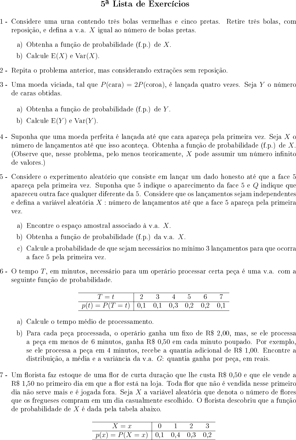 e de�na a variável aleatória X : número de lançamentos até que a face 5 apareça pela primeira