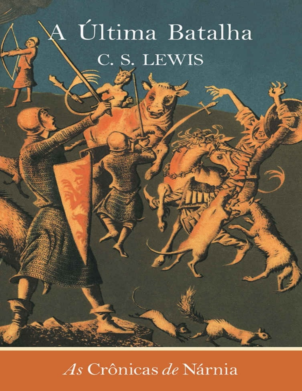 C. S. LEWIS A ÚLTIMA BATALHA ILUSTRAÇÕES DE PAULINE BAYNES SÃO PAULO 2015 A vida do autor Nasceu em Belfast, Irlanda. Por mais de trinta anos, foi membro e professor do Magdalen College, em Oxford. Conservou esse posto até tornar-se professor de Literatura Medieval e Renascentista, na Universidade de Cambridge. Seus dois primeiros livros foram de poesia e publicados sob o pseudônimo de Clive Hamilton. Mais tarde, publicou vários livros, principalmente relacionados com assuntos literários e teológicos. Para a literatura infantil, C. S. Lewis escreveu, em sete volumes, a história sobre a terra mágica de Nárnia, que começou com The Lion, the Witch and the Wardrobe (O leão, a feiticeira e o guarda-roupa). A medalha de Carnegie, para o melhor livro infantil, foi conferida a Lewis pela obra The Last Battle, mas era, obviamente, uma homenagem a toda a série Nárnia. AS CRÔNICAS DE NÁRNIA: 1. O sobrinho do mago 2. O leão, a feiticeira e o guarda-roupa 3. O cavalo e seu menino 4. Príncipe Caspian 5. A viagem do Peregrino da Alvorada 6. A cadeira de prata 7. A última batalha A ÚLTIMA BATALHA ÍNDICE I. No Lago do Caldeirão II. A precipitação do rei III. Sua Majestade, o macaco IV. O que aconteceu naquela noite V. Chega auxílio para o rei VI. Um bom trabalho noturno VII. Vivam os anões! VIII. As novas que a águia trouxe IX. A grande reunião na Colina do Estábulo X. Quem entrará no estábulo? XI. Acelera-se o passo XII. Pela porta do estábulo XIII. Os anões não se deixam tapear XIV. Cai a noite sobre Nárnia XV. Para cima e avante! XVI. Adeus às Terras Sombrias CAPÍTULO UM NO LAGO DO CALDEIRÃO Nos últimos dias de Nárnia, lá para as bandas do Ocidente, depois do Ermo do Lampião e bem pertinho da grande cachoeira, vivia um macaco. Ele era tão velho que ninguém se lembrava quando foi que aparecera por aquelas bandas. E era o macaco mais enrugado, feio e astuto que se pode imaginar. Ele morava numa casinha de madeira coberta de folhas, empoleirada num dos galhos mais altos de uma grande árvore. Seu nome era Manhoso. Naquele recanto da floresta havia bem poucos animais falantes, homens, anões ou qualquer tipo de gente. Apesar disso, Manhoso tinha um vizinho, que era também seu amigo, um jumento chamado Confuso. Pelo menos eles se diziam amigos. Na verdade, porém, Confuso era mais um empregado que amigo de Manhoso. Era ele quem fazia todo o serviço. Quando iam juntos para o rio, Manhoso enchia os alforjes de água, mas quem os carregava até em casa era Confuso. Quando precisavam de alguma coisa das cidades, que ficavam bem longe, rio abaixo, era Confuso quem descia com os paneiros vazios às costas e voltava depois com eles, pesados de tão cheios. E tudo que ele trazia de melhor e mais gostoso quem comia era Manhoso, pois, como este costumava dizer: “Você bem sabe, Confuso, que eu não posso comer capim e forragem como você. Por isso é claro que eu preciso compensar de outras formas…” E o jumento respondia: “Claro, Manhoso, claro. Eu sei disso.” Confuso nunca reclamava, pois sabia que Manhoso era muito mais sabido que ele, e até achava que, afinal de contas, era muito gentil da parte dele ser seu amigo. E se, por acaso, Confuso tentava discutir com ele sobre alguma coisa, Manhoso sempre dizia: “Ora, vamos, Confuso, eu sei muito melhor do que você o que precisa ser feito. Você sabe muito bem que não é nada inteligente, não é mesmo?” E Confuso concordava: “É verdade, Manhoso. Você tem toda a razão. Eu não sou sabido mesmo.” E acabavam fazendo sempre o que Manhoso queria. Uma manhã, no comecinho do ano, os dois andavam passeando à margem do Lago do Caldeirão. O Lago do Caldeirão é o grande lago que fica logo abaixo dos penhascos na extremidade oeste de Nárnia. A enorme cachoeira precipita-se dentro dele com estrondo, como se fosse um eterno trovão, e o rio de Nárnia brota pelo outro lado. Por causa da cascata as águas do lago estão sempre dançando, agitadas, borbulhando e fazendo círculos como se estivessem continuamente fervendo. Por isso é que se chama Lago do Caldeirão. É no comecinho da primavera que ele fica mais agitado, porque as águas da cachoeira crescem muito mais com a neve que derrete nas montanhas do lado de lá de Nárnia, na floresta ocidental, onde nasce o rio. Eles estavam olhando para o Lago do Caldeirão quando, de repente, Manhoso apontou com seu dedo escuro e fininho, dizendo: – Olhe! O que é aquilo? – Aquilo o quê? – perguntou Confuso. – Aquela coisa amarela que vem descendo pela cachoeira. Olhe! Lá está ela de novo, flutuando na água. Precisamos descobrir o que é aquilo! – Precisamos…? – disse Confuso. – É claro que sim – respondeu Manhoso. – Pode ser alguma coisa útil. Vamos, seja camarada. Pule no lago e pegue aquilo lá, para a gente dar uma olhada. – Saltar no lago? – resmungou Confuso, repuxando as orelhas compridas. – Bem… Como é que vamos pegá-lo se você não pular? – disse o macaco. – Mas… Mas… Não seria melhor que você entrasse no lago? Afinal de contas, quem quer saber o que é aquilo é você, e não eu… E você tem mãos, não é mesmo? Quando se trata de pegar alguma coisa, você é tão bom quanto qualquer homem ou anão. Eu só tenho cascos… – Puxa, Confuso! – exclamou Manhoso. – Nunca pensei ouvir uma coisa dessas. Nunca esperei isso de você! – Por quê? O que foi que eu disse de errado? – indagou o jumento, numa vozinha muito humilde, pois percebera que o amigo estava muito ofendido. – Eu só quis dizer… – Querendo que eu entre na água… – queixou-se o macaco. – Como se não soubesse perfeitamente quanto são fracos os pulmões dos macacos e quão facilmente eles se resfriam. Tudo bem, eu vou. Já estou mesmo tremendo de frio por causa deste vento terrível. Mas vou assim mesmo. Pode até ser que eu morra. E aí você vai se arrepender! (E aqui a voz de Manhoso soou como se ele estivesse prestes a c