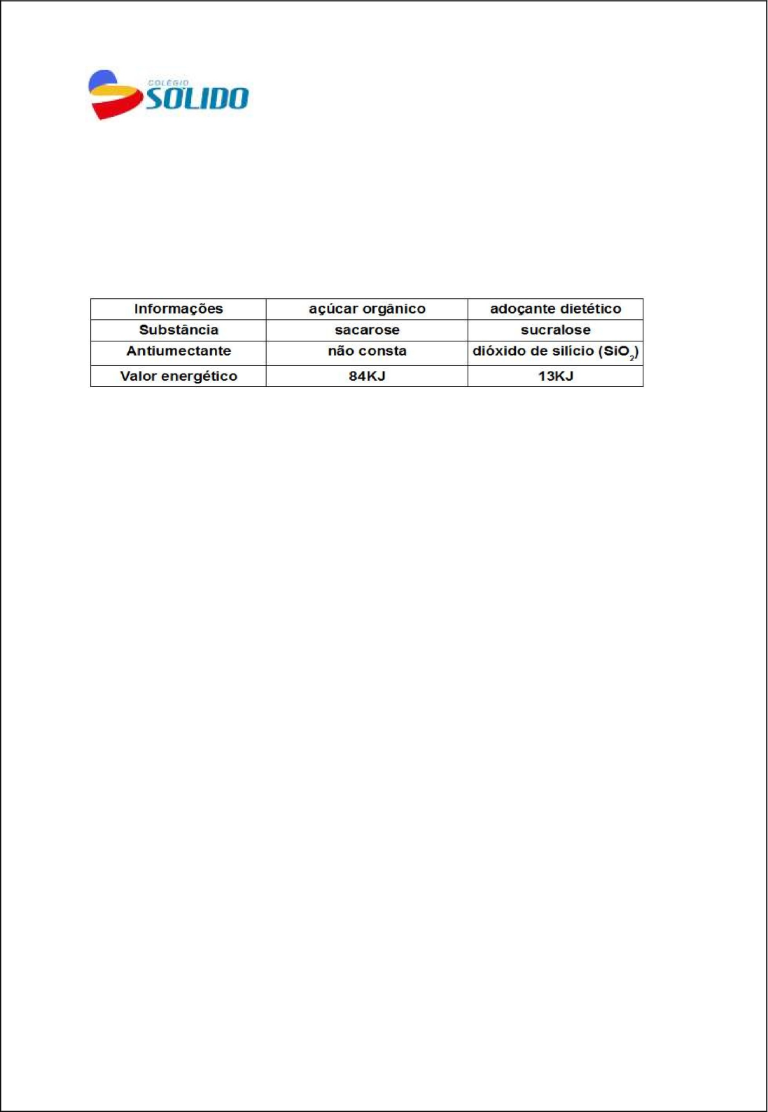 ATIVIDADE COMPLEMENTAR DE QUÍMICA – GEOMETRIA MOLECULAR PROFª PATRÍCIA LESSA - 1º ANO 1 - Dois médicos foram até a cantina do hospital para tomar café. Para adoçar seu café, um deles utilizou um envelope de açúcar orgânico e o outro um envelope de adoçante dietético, dissolvendo completamente os conteúdos em suas respectivas bebidas. A tabela apresenta algumas informações dos envelopes desses adoçantes: (Quim. Nova, 2003. Adaptado.) A estrutura de Lewis para a molécula de dióxido de silício, substância utilizada como antiumectante no adoçante dietético sucralose, é similar à estrutura de Lewis para a molécula de ________ que apresenta geometria molecular ________. Assinale a alternativa que preenche, correta e respectivamente, as lacunas do texto. a) CO2 – piramidal b) CO2 – angular c) SO2 – linear d) SO2 – angular e) CO2 – linear 2 - Sabe-se que a atmosfera do nosso planeta é composta por uma mistura gasosa que apresenta, por exemplo, os gases CH4, O3, N2 e SO3. As moléculas desses gases, respectivamente, apresentam quais geometrias moleculares? a) Tetraédrica, Trigonal, Linear e Trigonal. b) Trigonal, Angular, Angular e Tetraédrica. c) Trigonal, Linear, Tetraédrica e Angular. d) Tetraédrica, Angular, Linear e Trigonal. 3 - A geometria molecular é a indicação da forma espacial que as moléculas assumem em virtude do arranjo dos átomos ligados. Assim, correlacione as fórmulas químicas presentes na coluna B com os tipos de geometrias moleculares presentes na coluna A. Coluna A 1. Angular 2. Piramidal 3. Tetraédrica 4. Trigonal Plana Coluna B ( ) SO2 ( ) CH2O ( ) PH3 ( ) SiH4 A sequência correta dos números da coluna B, de cima para baixo, é a) 1 - 4 - 3 - 2. b) 2 - 1 - 4 - 3. c) 1 - 2 - 4 - 3. d) 3 - 4 - 1 - 2. e) 1 - 4 - 2 - 3. 4 - O fosgênio (COCl2) é um gás incolor, tóxico, asfixiante e de cheiro penetrante. Esse gás, utilizado como arma na Primeira Guerra Mundial, era produzido a partir da reação do monóxido de carbono (CO) e do gás cloro (Cl2). Qual é a geometria de cada uma dessas moléculas, respectivamente? a) Linear, trigonal plana e tetraédrica. b) Angular, linear e linear. c) Trigonal plana, angular e linear d) Tetraédrica, linear, angular. e) Trigonal plana, linear e linear. 5 - Selecione a(s) alternativa(s) onde há exata correspondência entre a molécula e sua forma geométrica. A resposta final é a soma dos números das alternativas selecionadas. 01. N2 – Linear 02. CO2 – Linear 04. H2O – Angular 08. PCl5 – Plana trigonal 16. CCl4 – Tetraédrica 32. BF3 – Pirâmide trigonal 6 - O íon nitrato (NO3–), a molécula de amônia (NH3), a molécula de dióxido de enxofre (SO2) e a molécula de ácido bromídrico (HBr) apresentam, respectivamente, a seguinte geometria: a) piramidal; trigonal plana; linear; angular. b) trigonal plana; piramidal; angular; linear. c) piramidal; trigonal plana; angular; linear. d) trigonal plana; piramidal; trigonal plana; linear. e) piramidal; linear; trigonal plana; tetraédrica. 7 - (ITA) Assinale a opção que contém a geometria molecular correta das espécies OF2, SF2, BF3, NF3, CF4 e XeO4, todas no estado gasoso. a) Angular, linear, piramidal, piramidal, tetraédrica e quadrado planar. b) Linear, linear, trigonal plana, piramidal, tetraédrica e tetraédrica. c) Angular, angular, trigonal plana, piramidal, tetraédrica e tetraédrica. d) Linear, angular, piramidal, trigonal plana, angular e tetraédrica. e) Trigonal plana, linear, tetraédrica, piramidal, tetraédrica e quadrado planar. 8 - (ITA – Adaptado) Assinale a opção que contém respectivamente a geometria das moléculas: AsH3 e SiCl4 no estado gasoso. a) Trigonal Plana, quadrado planar b) Piramidal, quadrado planar c) Trigonal Plana, tetraédrica d) Piramidal, piramidal e) Piramidal, tetraédrica 9 - (UEM) Considerando a molécula de amônia, assinale a alternativa correta. a) A geometria molecular corresponde a um tetraedro regular. b) O átomo de nitrogênio e dois átomos de hidrogênio ocupam os vértices de um triângulo equilátero. c) O centro da pirâmide formada pelos átomos de nitrogênio e pelos átomos de hidrogênio é ocupado pelo par de elétrons livres. d) Os átomos de hidrogênio ocupam os vértices de um triângulo equilátero. e) As arestas da pirâmide formada pelos átomos de nitrogênio e pelos átomos de hidrogênio correspondem a ligações iônicas. 10 - (PUC) De acordo com a Teoria da repulsão dos pares eletrônicos da camada de valência, os pares de elétrons em torno de um átomo central se repelem e se orientam para o maior afastamento angular possível. Considere que os pares de elétrons em torno do átomo central podem ser uma ligação covalente (simples, dupla ou tripla) ou simplesmente um par de elétrons livres (sem ligação). Com base nessa teoria, é correto afirmar que a geometria molecular do dióxido de carbono é: a) Trigonal plana b) Piramidal c) Angular d) Linear e) Tetraédrica 11 - Os fornos de microondas são aparelhos que emitem radiações eletromagnéticas (as microondas) que aquecem a água e, consequentemente, os alimentos que a contêm. Isso ocorre porque as moléculas de água são polares, condição necessária para que a interação com esse tipo de radiação seja significativa. As eletronegatividades para alguns elementos são apresentadas na tabela a seguir. a) Com base nessas informações, forneça a fórmula estrutural e indique o momento dipolar resultante para a molécula de água. b) Sabendo que praticamente não se observam variações na temperatura do dióxido de carbono quando este é exposto à ação das radiações denominadas microondas, forneça a estrutura da molécula de CO2. Justifique sua resposta, considerando as diferenças nas eletronegatividades do carbono e do oxigênio. 12 - A molécula resultante da ligação de oxigênio e flúor é representada pela fórmula: Dado: número atômico: O = 8; F = 9