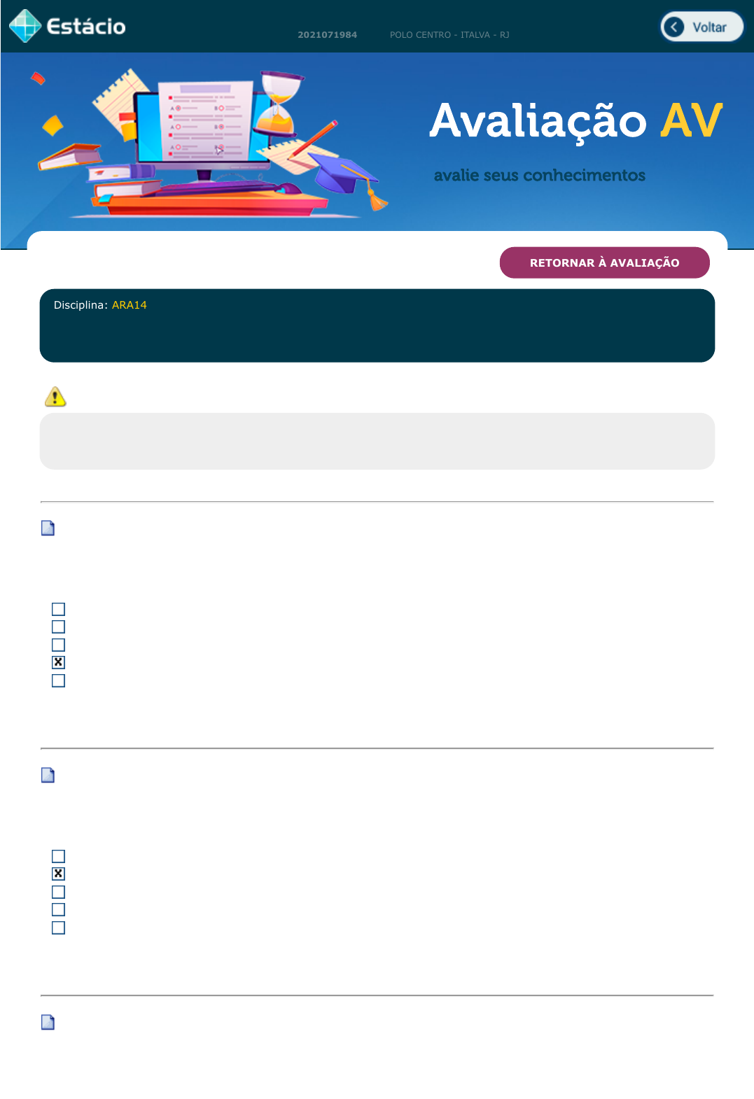 2. Caso você queira voltar à prova clique no botão "Retornar à Avaliação".
