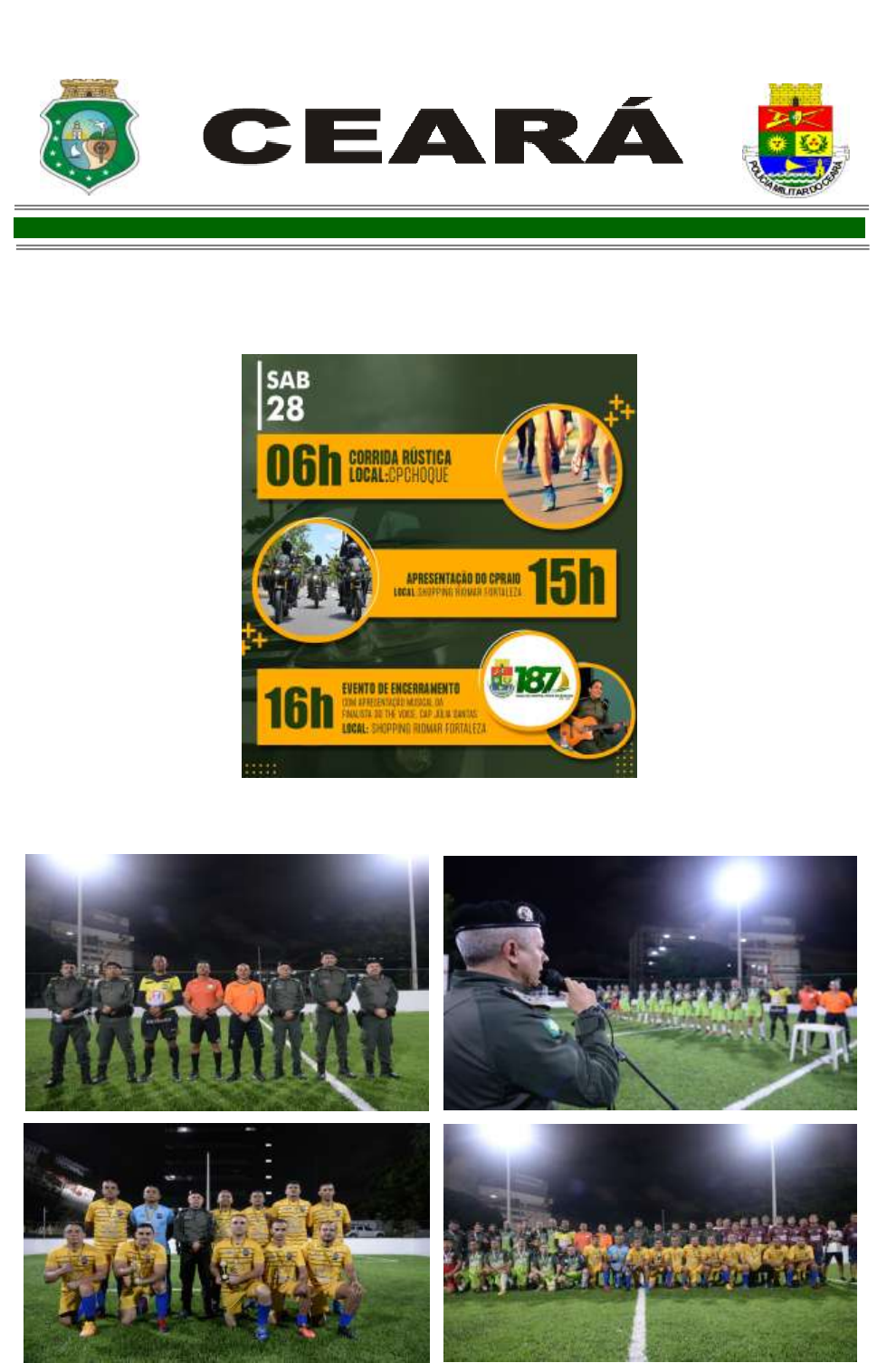 6716 CONT. BOLETIM DO CMDº GERAL nº 101, de 27.05.2022 EDITORAÇÃO POLÍCIA MILITAR DO CEARÁ BOLETIM DO COMANDO-GERAL BCG nº 101 - Fortaleza-CE, 27 de maio de 2022 - sexta-feira “PORQUE A LOUCURA DE DEUS É MAIS SÁBIA QUE A SABEDORIA HUMANA, E A FRAQUEZA DE DEUS É MAIS FORTE QUE A FORÇA DO HOMEM.” 1 Co 1:25 ENCERRAMENTO DO TORNEIO DE FUTEBOL DE ANIVERSÁRIO DE 187 ANOS DA PMCE CAMPEÃO 2º BATALHÃO 6717 CONT. BOLETIM DO CMDº GERAL nº 101, de 27.05.2022 APRESENTAÇÃO DO RPMONT ÍNDICE Circulação do BCG .................................................................................................................................. 6717 Parecer nº 1035/2021 - Separata ............................................................................................................ 6718 Tornar sem Efeito a Nota nº 262/2017-CPP ........................................................................................... 6718 Publicação de Títulos .............................................................................................................................. 6718 Transferência de Praças ......................................................................................................................... 6718 Operação Reforço Extraordinário/2022 ................................................................................................... 6719 Apresentação de Oficial .......................................................................................................................... 6719 Movimento Carcerário - Informação ........................................................................................................ 6719 Fracionamento do Gozo de Férias - Autorização ................................................................................... 6720 Publicações no DOE – Informação ......................................................................................................... 6720 Solução de Inquérito Técnico do 6º BPM ................................................................................................ 6722 Solução de Inquérito Técnico do 18º BPM .............................................................................................. 6723 Solução de Inquérito Técnico do 15º BPM .............................................................................................. 6724 Solução de Inquérito Técnico do 3º BPM ................................................................................................ 6724 Edital de Ciência de Eliminação de Documentos - Separata .................................................................. 6725 Concessão de Medalha - Separata ......................................................................................................... 6725 Solução de Inquérito Técnico do COTAM ............................................................................................... 6726 Solução de Inquérito Técnico do 2º BPRAIO .......................................................................................... 6727 Perícia Médica Admissional e Entrega de Documentos Pessoais - Curso de Formação de Soldados 2022 ........................................................................................................................................ 6729 Solução de Sindicância ........................................................................................................................... 6803 Averbação de Tempo de Contribuição .................................................................................................... 6803 Férias não gozadas – Cômputo em dobro – Averbação ......................................................................... 6804 Situação de Subjudice – Cessação SPI nº 01071978/2022 ................................................................... 6805 Situação de Subjudice – Cessação SPI nº 01072043/2022 ................................................................... 6806 Policiais Militares a Juízo ........................................................................................................................ 6807 Policiais Militares a Controladoria Geral de Disciplina ............................................................................ 6827 Policiais Militares a Delegacia ................................................................................................................. 6831 Elogio a Policiais Militares - Separata ..................................................................................................... 6833 Circulação do BCG O BCG nº 100, datado de 26/05/2022, circulou na Intranet no dia 26/05/2022. Sem alteração 2ª PARTE – INSTRUÇÃO 1ª PARTE – SERVIÇO DIÁRIO 6718 CONT. BOLETIM DO CMDº GERAL nº 101, de 27.05.2022 Parecer nº 1035/2021 - Separata Segue, em separata, o Parecer nº 1035/2021, oriundo da Secretaria da Segurança Pública e Defesa Social, versando sobre a instauração de Inquérito Técnico, para apuração de responsabilidade civil do policial militar em decorrência de acidente de trânsito envolvendo veículos locados pela PMCE. 1.1 COMANDO-GERAL Tornar sem Efeito a Nota nº 262/2017-CPP DOE nº 110, de 26/05/2022 PORTARIA Nº 012/2022-CPP - O CORONEL COMANDANTE- GERAL DA POLÍCIA MILITAR DO CEARÁ, no uso das atribuições legais e considerando o disposto no art. 4º, da Lei nº 15.797, de 25 de maio de 2015 (Lei de Promoções dos Militares Estaduais do Ceará), e ainda conforme a decisão judicial proferida nos autos do processo nº 0162447-60.2018.8.06.0001, do Exmo. Sr. Dr. Francisco Chagas Barreto Alves, Juiz de Direito da 2ª Vara da Fazenda Pública da Comarca de Fortaleza, bem como manifestação da Douta Procuradoria-Geral do Estado – PGE, nos autos do processo de VIPROC nº 00733873/2022, RESOLVE: dar cumprimento à referida decisão judicial para tornar sem efe