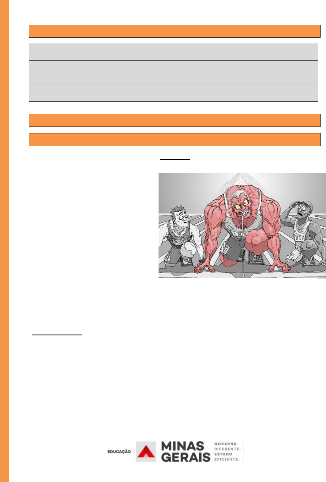 SEMANA 1 UNIDADE TEMÁTICA: - ESPORTES HABILIDADES: (EF89EF05P8) Identificar e interpretar as transformações históricas do fenômeno esportivo e discutir alguns de seus problemas (doping, corrupção, violência etc.). INTERDICIPLINARIDADE: - Português; Ciências; Inglês ATIVIDADES Atividades 01 O doping Por definição é considerado doping o uso de substâncias ou métodos capazes de aumentar artificialmente o desempenho esportivo e que estejam listados pela WADA- AMA/IOC (World Anti-Doping Agency/International Olympic Committee) sejam eles potencialmente prejudiciais á saúde do atleta ou a de seus adversários, ou contrário ao espírito do jogo. O controle de doping é regulamentado pelo Comitê Olímpico Internacional, pelas Federações Internacionais e mais recentemente pela WADA-AMA. Anualmente a WADA divulga uma lista em que são oferecidas explicações a respeito das substâncias e métodos proibidos. A idéia básica é a de que os esportistas em geral conheçam a lista das drogas e dos métodos a serem evitados, assumindo a co- responsabilidade pelo processo de controle de uso na prática esportiva. Atividade 01 – De acordo com o texto acima, assinale a opção incorreta: 1. ( ) Por definição é considerado doping o uso de substâncias ou métodos capazes de aumentar artificialmente o desempenho esportivo 2. ( ) sejam eles potencialmente prejudiciais á saúde do atleta ou a de seus adversários, ou contrário ao espírito do jogo 3. ( ) O controle de doping é regulamentado pelo Comitê Olímpico Internacional, pelas Federações Internacionais e mais recentemente pela WADA-AMA 4. ( ) A idéia básica é a de que os esportistas em geral não conheçam a lista das drogas e dos métodos a serem evitados. Histórico do doping Para Ehrnborg e Rosén, o uso de drogas e métodos entre os atletas para melhorar o desempenho físico é tão antiga quanto à história do esporte em si e tem sido uma característica da competição humana desde então. O conhecimento em desenvolvimento e uso de diferentes drogas e substâncias foram descritas em várias culturas durante a história, como entre os antigos egípcios, atletas gregos e gladiadores romanos que utilizavam chás de ervas e cogumelos, assim como os chineses que já conheciam os efeitos da efedrina. Nas primeiras edições modernas dos Jogos Olímpicos, o doping era raro, mas não ilegal. Uma das misturas dopantes mais usadas consistia em um coquetel com cocaína, cafeína e estricnina. O primeiro caso fatal de doping que se tem notícia ocorreu em 1886 com um ciclista francês. No ciclismo usavam-se intensivamente as speed balls, mistura de cocaína com heroína. O fato chamou a atenção do meio esportivo, foi iniciada então, a luta moderna pelo controle do doping. Na virada do século XXI, o controle de dopagem no esporte adquiriu uma maior sofisticação, englobando também, drogas sociais, banindo em várias modalidades desportivas a cocaína e alucinógenos derivados de anfetaminas e, de modo inovador, o consumo de maconha. A sofisticação da dopagem acompanha a evolução da farmacologia. Novas drogas com finalidade terapêutica, cada vez mais passam a ser usadas pelos seus efeitos terapêuticos e colaterais. Assim, atletas abusam do uso de beta-agonistas conhecidos como antiasmáticos (clembuterol, salbutamol, terbutalina) pelo seu efeito colateral anabolizante. Da mesma forma, são empregados insulina e seus análogos, hormônios de crescimento e gonadotrofina coriônica humana. O combate ao doping no esporte na sua forma moderna teve início na década de 60. Segundo relatos, cerca de 30% dos participantes dos eventos desportivos internacionais faziam uso de algum tipo de estimulante químico. Em 1967, o COI condenou a prática do doping, apresentando uma lista de substâncias consideradas proibidas e iniciou o controle antidoping. O ano de 1968 com os Jogos Olímpicos de Inverno na França, e os Jogos Olímpicos de Verão na cidade do México pode ser considerado o marco do controle de doping no esporte. Para De Rose et al., a luta contra a dopagem compreende, idealmente, não só a programação de controles antidoping durante e fora de competições esportivas, mas especialmente uma conscientização e orientação dos atletas a respeito desta importante temática, bem como de um processo de julgamento no tempo e na forma adequada dos atletas quando ocorre um resultado analítico adverso no laboratório. Atividade 02 - Encontre no quadro abaixo, as palavras destacadas no texto acima: C A Q T A G E G I S E A T L E T A S E N A G J N O I U Y T R E W Q A A X F T Z H M I A N F E T A M I N A S C N I X I K N E B G I P N D E A F I H M D S S I D N B O M N H E R I E E D Y O W T O S O V B L M N B V C S X Z G P E Ó L E T P D A I A A M S P G P A I D R Ç R G Z I N A Z S E I O E I I N C I P T B X O N T F A N C R N N D G V A O I V S P A G E R N O T O G R V F B A U F W I B L T E T T E S H O B R N S O R E N O E A N O A E D I G N T H G N A L U C I N Ó G E N O S A M G Y J G E F G L T M D F L C O T S K B U L N D G D I A I I I U I P O Q R D E S E M P E N H O F I S I C O Atividade 03 Analise a imagem abaixo, e responda: a) Cite 5 efeitos colaterais que os anabolizantes causam nos homens b) E nas mulheres? c) Quais são os sinais que evidenciam o uso? Atividades 02 Atividade 01 Observe os cartazes abaixo, uma campanha “Jogo Limpo”, contra as drogas, doping, assédios, abusos, racismo e outras formas de violência. a- Quais informações você obtém no cartaz?___________________________________ __________________________________________________________________________ __________________________________________________________________________ b- Você já viu algum cartaz parecido?_______________________________ Então agora, você vai escolher as informações e elaborar um cartaz. Deve ser feito em uma folha de A4 (chamex). Pode ser feito de colagem, desenhado ou impresso, como achar melhor! Mas usem a criatividade! 