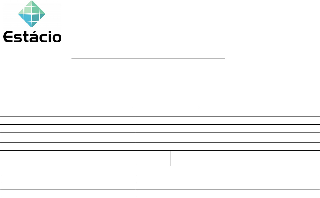 Centro Universitário Estácio de Ribeirão Preto RELATÓRIO FINAL DE ESTÁGIO ( ) SDE0143 – Prática Profissional em Educação Física I ( ) SDE3981 – Prática Profissional em Educação Física II ( ) SDE0145 – Prática Profissional em Educação Física III ( ) SDE3983 – Prática Profissional em Educação Física IV ( ) Prática Profissional em Educação Física (estágio não obrigatório) Estagiário(a): Nome completo do aluno-estagiário Nº de Matrícula: Semestre do Curso em que está matriculado(a): Atividade desenvolvida no estágio: Total de horas previstas: Área de Estágio: I, II, III, IV (conforme apêndice 1 no regulamento de estágio) Instituição/Empresa Concedente: Supervisor da Concedente: Telefone: E-mail: 1. Descreva as principais atividades desenvolvidas pelo profissional observado. 2. Descreva as principais características de infraestrutura da instituição. 3. Analise, criticamente, a atuação do profissional observado (capacidade de integrar conhecimentos de diversas áreas do conhecimento, relacionamento com o público, estratégias de ensino, criatividade, capacidade de organização, etc.). 4. Discorra sobre a relevância e o impacto deste estágio na sua atuação profissional futura. 5. Apresente sugestões/comentários para o aprimoramento das atividades e/ou da instituição. ALUNO ESTAGIÁRIO Assinatura Data: _____________________ SUPERVISOR DA INTERVENIENTE Nome completo: Assinatura Data: _____________________ SUPERVISOR DA CONCEDENTE Assinatura Data: _____________________ Espaço reservado ao carimbo da Instituição/Empresa CONCEDENTE Obs.: Este documento dever ser impresso utilizando frente e verso da folha. Caso não seja possível, os Supervisores deverão rubricar as folhas anteriores. Relatório Final (Página 1)
