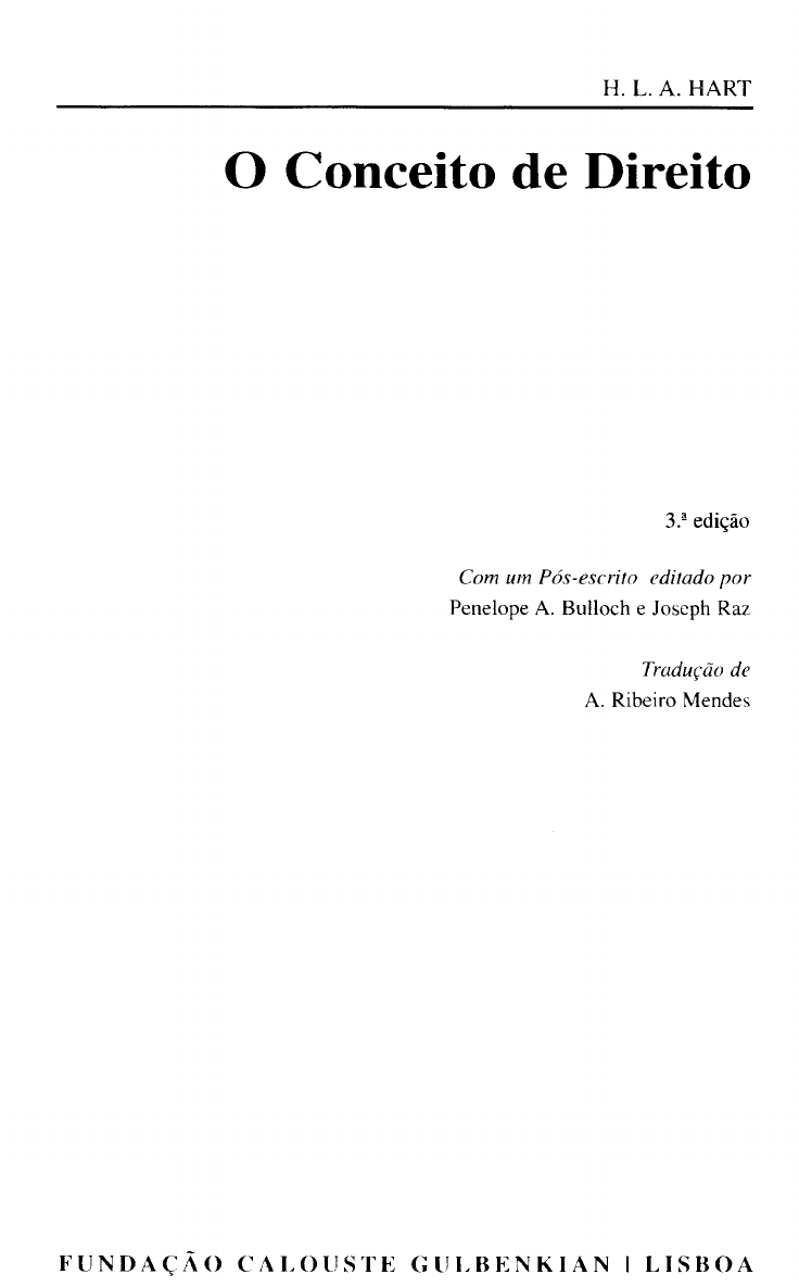 ___________________________________ H. L. A. HART O Conceito de Direito 3.a edição Com um Pós-escrito editado por Penelope A. Bulloch e Joseph Raz Tradução de A. Ribeiro Mendes NOTA PRÉVIA DO TRADUTOR O livro de H.L.A. Hart, cuja tradução a Fundação Calouste Gulbenkian apresenta agora ao público de língua portuguesa, é uma obra que goza de um grande prestígio entre os cultores da filosofia do direito e da teoria geral do direito. Trata-se de um livro que revela um grande rigor de análise, encadeando-se os raciocínios e argumentações sobre a natureza do direito, sobre a distinção dos conceitos de leis, comandos e ordens, sobre as relações entre o soberano e o súbdito, sobre as relações entre a justiça e a moral e entre esta e o direito. Em especial, a concepção do Professor de Oxford que considera o direito como uma união de regras primárias e secundárias tem sido alvo de vivo debate entre os filósofos do direito no último quarto de século. O tradutor procurou apresentar uma versão fiel do pensamento de Hart, mas a sua tarefa não foi fácil, nomeadamente porque não existe em Portugal uma experiência de versão em língua portuguesa de obras jurídicas inglesas ou norte-americanas. Procurando respeitar o desejo do autor, de reduzir ao mínimo as notas de pé de página, o tradutor evi tou incluir notas da sua responsabilidade, só o fazendo quando considerou conveniente indicar as expressões utilizadas na língua inglesa pelo autor ou dar uma breve explicação sobre normas, institutos ou referências com os quais o leitor português não está familia rizado. Tais notas aparecem na tradução assinaladas com asterisco. Porque esta tradução se destina em larga medida a estudantes de direito, pareceu conveniente incluir no final um glossário de palavras ou expressões latinas utilizadas na obra, atendendo a que deixou de ser obrigatório o estudo de latim no ensino secundário para os estudantes que preten dem ingressar nas faculdades de direito. Esta tarefa não teria sido seguramente levada a cabo se não fosse o auxílio valioso e constante do Sr. Dr. José de Sousa e Brito, profundo conhecedor da filosofia analítica inglesa e discípulo de Hart. Este projecto de tradução partiu, aliás, do Dr. Sousa e Brito, tendo sido apresentado por ele e pelo ora tradutor à Fundação Calouste Gulbenkian há cerca de onze anos, só agora tendo sido possível a respectiva concretização. Duas últimas palavras de reconhecimento são devidas à Sr.* Dr.a Ana de Freitas, encarregada de proce der à revisão da tradução, e ao irmão do tradutor, Dr. Fernando Ribeiro Mendes, pelas sugestões que fizeram em momentos diferentes da preparação desta versão. NOTA DOS EDITORES Decorridos alguns anos desde a sua publicação, O Conceito de Direito transformou o modo como era compreendida e estudada a Teoria Geral do Direito (!,no mundo de lín gua inglesa e fora dele. O seu enorm e impacte deu origem a uma multiplicidade de publi cações que discutem o livro e as suas doutrinas, e isso não só no contexto da Teoria Jurídica, como também no da Filosofia Política e da Filosofia Moral. Durante muitos anos, Hart acalentou no espírito a ideia de aditar um capítulo ao livro O Conceito de Direito. Não desejava retocar o texto, cuja influência tão grande tem sido, e, de harmonia com o seu desejo, publica-se aqui esse texto inalterado, salvo cor recções menores. Mas o autor queria dar resposta às muitas discussões sobre o livro, para defender a sua posição contra os que o interpretaram incorrectamente, refutando as críti cas infundadas, e — facto que assumia igual importância a seus olhos — aceitando a pro cedência das críticas justificadas e sugerindo modos de adaptar as doutrinas da obra para ir ao encontro desses pontos. A circunstância de o novo capítulo — concebido, em pri meiro lugar, com o um prefácio, mas, no fim, como um pós-escrito — estar inacabado ao tempo da sua morte, apenas em parte se ficou a dever ao seu perfeccionismo meticuloso. Tal ficou a dever-se também às suas dúvidas persistentes sobre a bondade do projecto e à angustiante incerteza sobre se conseguiria estar à altura do vigor e do carácter penetrante das teses da obra, tais como haviam sido originalmente concebidas. Não obstante, e com muitas interrupções, perseverou no trabalho sobre o pós-escrito, achando-se quase com pleto, na altura da sua morte, o primeiro dos dois capítulos 1 projectados. Quando Jennifer Hart nos pediu para vermos os seus papéis e para decidirmos se havia neles algo susceptível de ser publicado, a nossa primeira ideia foi a de não deixar que se publicasse qualquer texto com o qual Hart não teria ficado satisfeito. Ficámos, por isso, encantados ao descobrir que, na sua maior parte, o primeiro capítulo 11 do pós- -escrito se achava em estádio final de redacção. Descobrimos apenas notas manuscritas destinadas ao segundo capítulo ' mas estas eram demasiado fragmentárias e incipien tes para serem susceptíveis de publicação. Em contraste com isto, o primeiro capítulo 1 1 X NOTA DOS EDITORES aparecia em diversas versões, tendo sido dactilografado, revisto, tornado a dactilografar e revisto de novo. Mesmo a versão mais recente não tinha, obviamente, sido encarada por ele como tendo alcançado a forma definitiva. Há numerosas alterações a lápis e a esfe rográfica. Além disso, Hart não eliminou as versões mais antigas, parecendo, antes, ter continuado a trabalhar em qualquer das versões que tivesse à mão. Embora isto tornasse mais difícil a tarefa de edição, as alterações introduzidas durante os dois últimos anos foram, sobretudo, mudanças de matiz estilístico, o que, em si, indicava que ele se achava satisfeito, no essencial, com o texto, tal como estava. A nossa tarefa consistiu em comparar as versões alternativas, e, quando estas não tinham correspondência entre si, em determinar se as partes do t