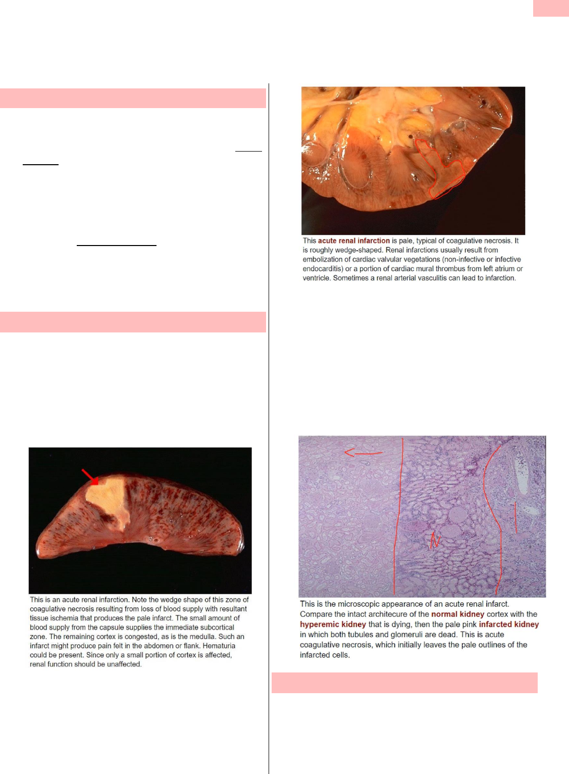 Laura R. T6 1 BBPM V - PATOLOGIA Nefropatias Crônicas e Infarto Renal DEFINIÇÕES AZOTEMIA: elevação dos níveis sanguíneos de compostos nitrogenados (ureia) e creatinina devido à redução da taxa de filtração glomerular. É um achado. o Pré-renal: baixa perfusão, isquemia, choque, hemorragia, insuficiência cardíaca o Renal: defeitos intrínsecos ao rim o Pós-renal: obstrução ao fluxo urinário UREMIA: azotemia + sinais clínicos + anormalidades bioquímicas. É uma síndrome. o Há a presença secundária de gastroenterite urêmica, neuropatia periférica e pericardite urêmica, encefalopatia urêmica o Pacientes requerem diálise neste estágio INFARTO RENAL Geralmente devido a êmbolos de trombos murais atriais esquerdo ou infarto do miocárdio ventricular esquerdo Também endocardite, aneurisma da aorta abdominal e êmbolos ateroscleróticos. Lembrar dos contextos infecciosos (endocardite) Os infartos são em cunha do tipo anêmico “branco” cercado por hiperemia intensa Em peças formalizadas, o formol tende a deixar a lesão mais branca como na imagem acima, evidenciando-a. Já em peças a fresco, a lesão fica mais clara, mas não chega a ficar branco, como na imagem abaixo A isquemia resulta em necrose coagulativa em órgãos sólidos, exceto o cérebro, em que ocorre necrose liquefativa. Não existe o termo necrose isquêmica. O primeiro sinal da necrose é o apagamento das estruturas, que pode ser notado do lado esquerdo da foto, onde só vemos “sombras” das estruturas. Por outro lado, mais à direita, no centro da imagem, já é possível ver mais coloração, delimitação das estruturas. Junto da necrose coagulativa vemos bem mais infiltrado inflamatório, geralmente, com polimorfonucleados. GLOMERULONEFRITE CRÔNICA É o estágio final de várias formas de doenças glomerulares É caracterizada por insuficiência renal progressiva, uremia e morte Laura R. T6 2 BBPM V - PATOLOGIA Clínica: anemia, anorexia, proteinúria, hipertensão e azotemia Macroscopia: rins diminuídos de tamanho com cicatrizes finas e simétricas Microscopia: hialinização de glomérulos, fibrose intersticial, atrofia de túbulos e infiltrado linfocitário. o Esses achados são chamados de nefropatia terminal, a única salvação é o transplante. Quando você perde um glomérulo, você sobrecarrega outro, causando um efeito em cadeia Na imagem abaixo, não é uma anomalia. Trata-se de um rim transplantado. Importante notar as alterações de dos rins em estágio terminal. No rim transplantado é possível notar focos que mostram que o paciente foi a óbito por rejeição O rim transplantado é colocado na fossa ilíaca porque o acesso é mais fácil, não é preciso retirar os rins do paciente, só faz uma anastomose, deixando o rim protegido pela fossa ilíaca. Na microscopia do rim terminal, podemos ver artérias bem calibrosas, com parede muscular bem espessadas e diminuição do lúmen. Também vemos glomérulos escleróticos não funcionantes. Notamos as estruturas tubulares com material eosinofílico dentro, obstruídos e não funcionantes. Presença de infiltrado inflamatório crônico por linfomononucleados. Entre os tubos nota-se presença de um material rosa claro, que é o estroma renal que se prolifera quando as outra estruturas vão atrofiando. Nada mais é do que fibrose. Tudo isso leva a um aspecto de “tireoidização” na microscopia, lembra muito um corte de tireoide. Abaixo, notamos duas imagens. A imagem menor é um corte de tireoide, onde notamos as células foliculares formando estruturas foliculares, em que dentro tem um material chamado coloide, que são os hormônios tireoidianos que ficam armazenados dentro do folículo. Já a imagem maior é um corte de rim terminal. Essas estruturas que lembram um folículo tireoidiano são túbulos atróficos e dilatados, o conteúdo no interior são pedaços de citoplasma descamados, proteínas que vão acumulando e entupindo o tubo formando uma matéria rosa que lembra o coloide. Há também o infiltrado no interstício. Rim terminal aspecto de tireoidização: esclerose glomerular, atrofia tubular, infiltrado inflamatório mononuclear no interstício e fibrose intersticial Hializações parciais do glomérulo, glomérulo hipercelular, com perda dos capilares, presença de estruturas nodulares (hialinas), podendo evoluir e ficar todo hialinizados, como se fosse em um Laura R. T6 3 BBPM V - PATOLOGIA processo cicatricial. Presença de infiltrado inflamatório NEFROPATIA DIABÉTICA A principal doença crônica prevalente que vai levar a essa falência renal é a nefropatia diabética Existem dois eixos de lesão: o Hiperglicemia: fomração de produtos finais de glicolisação responsáveis pelo espessamento da MBG e aumento da matriz mesangial o Hemodinâmico: alterações hemodinâmicas (distúrbios de circulação) resultando em hipertrofia glomerular com aumento da área de filtração, contribuindo para proteinúria o Produção de espécies reativas de oxigênio ALTERAÇÕES MORFOLÓGICAS DA NEFROPATIA DIABÉTICA: Espessamento da Membrana Basal Glomerular: o É a alteração morfológica mais precoce o É vista em praticamente todos os diabéticos independente de proteinúria o É melhor vista em ME o Na imagem abaixo vemos que o valor padrão é 0.3 um, porém a membrana está espessada. Notamos também alterações nos podócitos, que vai levar a perda de proteína, que é o achado mais inicial Mesangioesclerose difusa o Aumento difuso da matriz mesangial o Material PAS positivo, substância rosa no meio do glomérulo, que é a matriz mesangial associado com espessamento da MBG. Quase não se vê capilar glomerular pérvio, são todo obliterados (glomérulo disfuncional). Glomeruloesclerose nodular (lesão de Kimmestiel-Wilson) o Nódulos dentro dos glomérulos o Lesão mais específica do DM o Consiste de nódulos PAS positivo situados na periferia dos glomérulos o É associada com o acúmulo de grande q