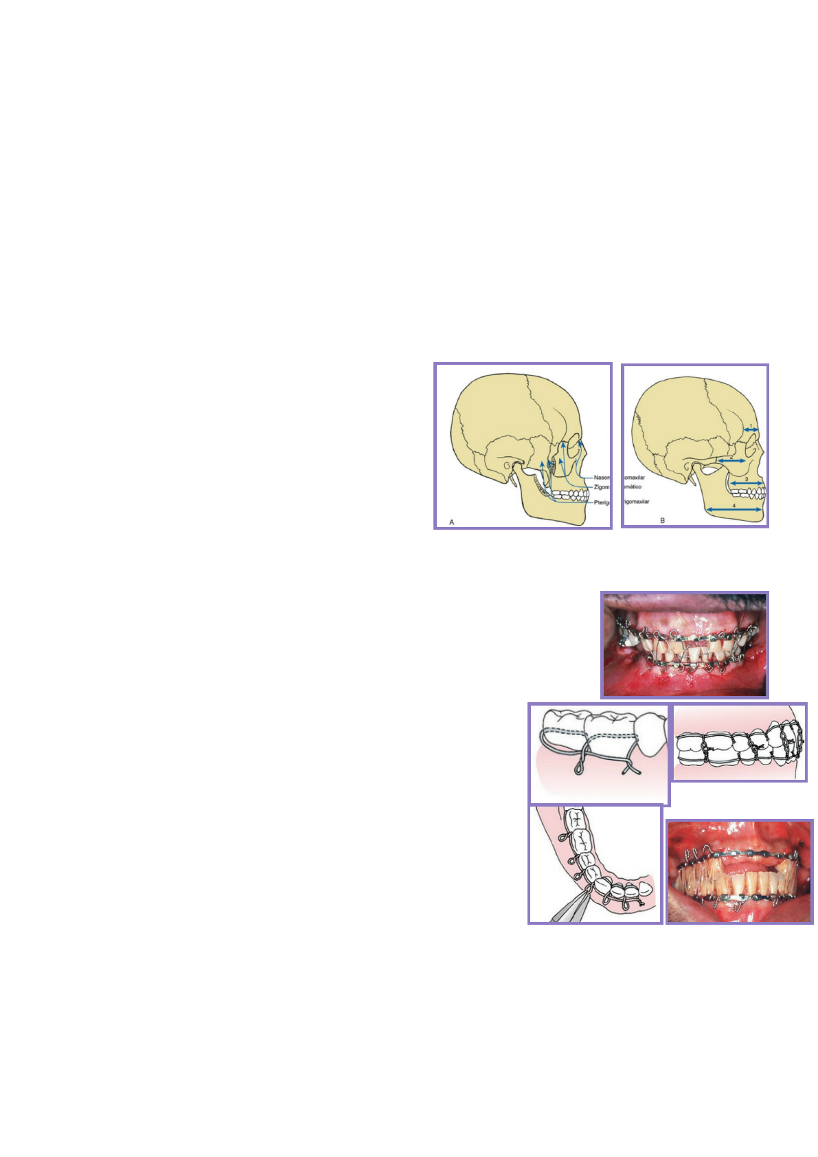 Fixação Princípios cirúrgicos básicos do tratamento ● Redução da fratura ● Fixação ● Oclusão ● Infecção Deve ser abordado preferencialmente imediatamente. Entre 2 e 3 dias o edema aumenta, impossibilitando a abordagem, o que leva a esperar 3 ou 4 dias para eliminar o edema e poder abordar. Por onde começar: começar pelas áreas de estabilização facilitada e progredir para as áreas instáveis. Suporte primário vertical e horizontal da face Suporte Primário Vertical (pilares) ● Nasomaxilar; Zigomático; Pterigomaxilar Suporte Primário Horizontal (pilares) ● Barra frontal; (Arco zigomático; Complexo zigomático); Alvéolos maxilares; Palato; Segmento basal da mandíbula. FMM - Fixação maxilomandibular para estabelecimento da oclusão Barra de Erich - arco pré fabricado, adaptado, fixado com fios de aço Técnica de Ivy - Fixação em laço contínuo - Elásticos (redução fechada) - 2 motivos: fraturas não são tratadas no mesmo dia ou severamente deslocadas. Usado por algumas horas ou dias, com elásticos potentes, para retornar os ossos e a oclusão às posições originais, aí então é substituído pelos fios de aço. Desdentados - próteses fixadas a mandíbula com fio de aço (circum mandibular é uma das técnicas); Parafusos. Ambas as próteses são fixadas com o fio de aço. Novas dentaduras confeccionadas após (1 mês a 1 mês e meio). Crianças - técnica de esplintagem - indicada para fraturas mandibulares em redução fechada (por conta da presença dos germes, dentes decíduos e cooperação das crianças). A placa de acrílico se chama goteira de acrílico e a goteira é presa com fios de aço circum-mandibulares. É usada no pré-operatório como FIM e no pós (por 6 semanas - dependendo da necessidade. A fixação interna rígida pode não requerer a FIM ou requerer por um período de tempo menor). FIM para fraturas condilares → portanto que se tenha adequada função e oclusão pós operatória. FIM por 14 a 21 dias para adultos e 10 a 14 dias para crianças + reabilitação funcional intensa (sem necessidade de fixação interna rígida). Tempo de FIM → longos períodos podem gerar anquilose óssea ou fibrosa e grave limitação de abertura de boca. Acessos cirúrgicos Local de redução aberta Tipo de acesso Características do acesso Imagem Sínfise e região anterior da mandíbula Acesso intraoral Preservação do nervo mentual Ângulo, ramo e côndilo Acesso extraoral Preservação de nervos, ductos e vasos sanguíneos Ângulo ou posterior do corpo da mandíbula Acesso intraoral + trocarte e cânula Preservação de nervos, ductos e vasos sanguíneos Fratura isolada de zigoma Acesso intraoral e extraoral Intraoral, na região lateral da sobrancelha e infraorbital Fratura NOE Acesso extraoral Bicoronal Fixação interna rígida Usam placas, parafusos ou ambos. Características gerais ● As placas variam de 1,5 a 0,6 mm ● Os parafusos variam de 2 a 0,7 mm de diâmetro externo da espira Tipos de placa: Placa monocortical/Placa bicortical/Lag Screw/Ligadura transnasal direta com fio de aço/Placa absorvível (Côndilo e Sínfise) Remoção ● Palpáveis ● Infectados ● Interferência em cirurgias reconstrutoras secundárias