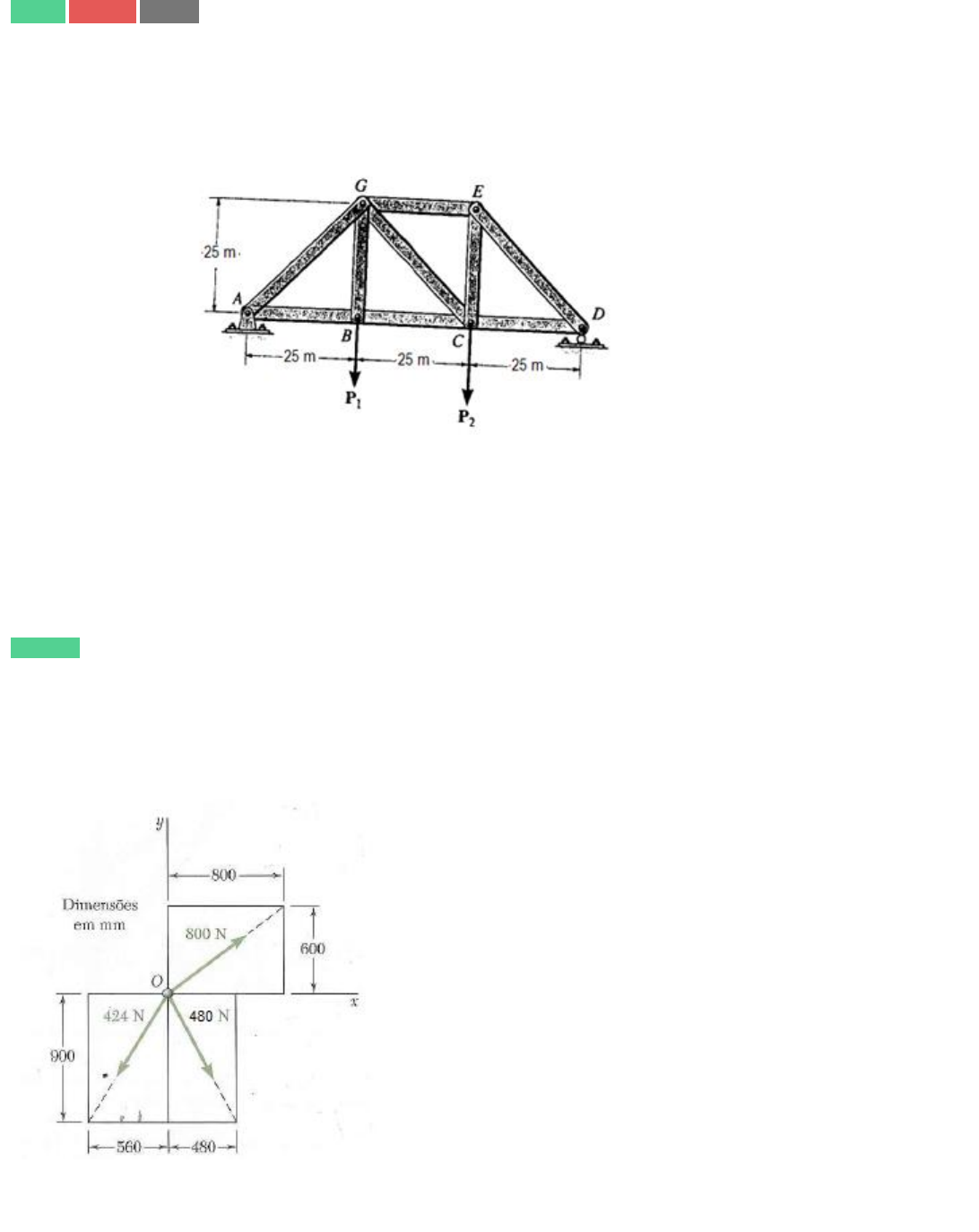 Aluno: Avaliação: AV2 [Total de pontos: 5 Pontuação] - 24 de Maio de 2022 08:00 Finalizado Local: SALA_ONLINE / A_ONLINE / P_ONLINE / Acadêmico: Módulo B - 80790 . 7 - Mecânica dos Sóli Correto Incorreto Anulada Discursiva Objetiva Total:5,00/5,00 1Código:57756 -Disciplina -MECÂNICA DOS SÓLIDOS Enunciado: Analise a treliça abaixo e determine a força do membro AB e se ele está em compressão ou tração. As forças P 1 e P 2 possuem valor de 200 kN. Alternativa correta: • b) 200 N e compressão Alternativa marcada: • b) 200 N e compressão 0,50/ 0,50 2Código:57791 -Disciplina -MECÂNICA DOS SÓLIDOS Enunciado: Analisando o desenho abaixo, assinale a alternativa que demonstra a componente horizontal (eixo x) e a vertical (eixo y), respectivamente, da força de 800 N. (As alternativas indicam as forças em módulo.) Alternativa correta: • d) 640 e 480. Alternativa marcada: • d) 640 e 480. 0,50/ 0,50 3Código:57759 -Disciplina -MECÂNICA DOS SÓLIDOS Enunciado: Para o engenheiro, o conhecimento das grandezas vetoriais é primordial. No entanto, nos primeiros semestres do curso, o aluno tem dificuldade em perceber a importância prática das operações vetoriais. No ramo da construção civil grandezas como força, torque e velocidade (grandezas vetoriais) se fazem presentes no seu dia a dia. Guindastes, pontes, elevadores, automóveis, dimensionamento de vigas e treliças, onde estão envolvidos forças, carregamentos, reações de apoio, as operações vetoriais são largamente utilizadas. Representando um vetor por coordenadas, como o vetor = (- 8,0,3), podemos observá-los também em seus vetores unitários. A representação do vetor com seus vetores unitários corresponde a: Alternativa correta: • b) - 8i + 3k; Alternativa marcada: • b) - 8i + 3k; 0,50/ 0,50 4Código:57787 -Disciplina -MECÂNICA DOS SÓLIDOS Enunciado: Quais das grandezas físicas abaixo são apenas vetoriais? Alternativa correta: • c) Deslocamento e torque. Alternativa marcada: • c) Deslocamento e torque. 0,50/ 0,50 5Código:57763 -Disciplina -MECÂNICA DOS SÓLIDOS Enunciado: Os dois vetores a e b, com coordenadas (-7,0,10) e (1,3,0), respectivamente, representam a posição de um objeto em trajetória parabólica no ar depois de ser arremessada por um brinquedo com molas. Para esses vetores, o produto escalar entre eles corresponde a: Alternativa correta: • c) -7 Alternativa marcada: • c) -7 0,50/ 0,50 6Código:57770 -Disciplina -MECÂNICA DOS SÓLIDOS Enunciado: Para se determinar o sentido de rotação de um objeto é necessário utilizar a regra da mão direita. Qual letra representa a ordem correta de execução da regra da mão direita? Alternativa correta: • a) r x F. Alternativa marcada: • a) r x F. 0,50/ 0,50 7Código:103699 -Disciplina -MECÂNICA DOS SÓLIDOS Enunciado: O desenho abaixo representa uma viga carregada: Com base nos dados apresentados, é correto afirmar que o momento fletor máximo ocorrerá: e) no ponto A. Alternativa marcada: • e) no ponto A. Justificativa: Com base nos cálculos, o pondo mais crítico por estar mais distante do ponto onde a força é aplicada. 0,50/ 0,50 8Código:57766 -Disciplina -MECÂNICA DOS SÓLIDOS Enunciado: No laboratório de Engenharia durante a aula de Mecânica dos Sólidos, o professor Zezo utilizando palitos de picolés montou a treliça a seguir: Calcule a reação de apoio VE no apoio E. Alternativa correta: • c) 100 KN Alternativa marcada: • c) 100 KN 0,50/ 0,50 9Código:57798 -Disciplina -MECÂNICA DOS SÓLIDOS Enunciado: A viga representada na figura está em equilíbrio. Calcule as reações de apoio e assinale a alternativa correta. Alternativa correta: • e) 11,25 N e 18,75 N.m Alternativa marcada: • e) 11,25 N e 18,75 N.m 0,50/ 0,50 10Código:57795 -Disciplina -MECÂNICA DOS SÓLIDOS Enunciado: Assinale a alternativa que representa o diagrama de corpo livre da figura abaixo. Alternativa correta: • b) V. Alternativa marcada: • b) V.