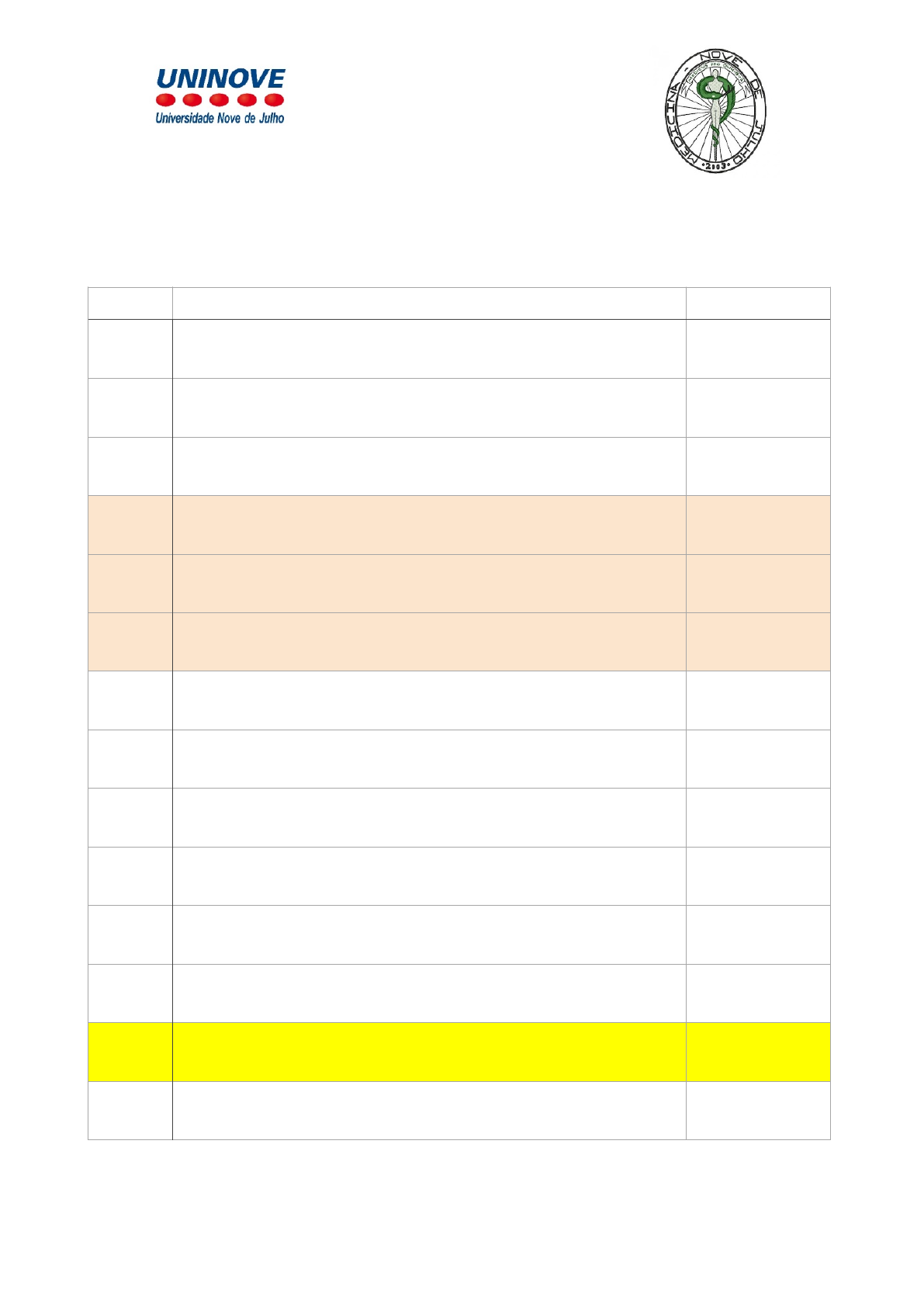 UNIVERSIDADE NOVE DE JULHO DEPARTAMENTO DE SAÚDE III CURSO MEDICINA - OSASCO Cronograma DATA TEMA PROFESSORES - - Aletheia Arthur 23/2 Introdução - biomoléculas Arthur Aletheia 25/2 Sistema tampão Marluce Aletheia 1/3 Feriado Aletheia Arthur 2/3 Feriado Arthur Aletheia 4/3 Feriado Marluce Aletheia 8/3 Organização e funcionalidade do genoma/revisão de termos e conceitos Aletheia Arthur 9/3 Aminoácidos: estrutura e função Atividade Grupos funcionais Arthur Aletheia 11/3 Aminoácidos: ionização de aminoácidos. Marluce Aletheia 15/3 Aminoácidos como precursores de biomoléculas Aletheia Arthur 16/3 Agentes mutagênicos: mutação Arthur Aletheia 18/3 Alterações Cromossômicas (Estruturais e Numéricas) Marluce Aletheia 22/3 Forms 1 - avaliativo Aletheia Arthur 23/3 Ligação peptídica Peptídeos de importância biológica Arthur Aletheia DATA 25/3 Estrutura e função de proteínas. Dinâmica Celular I (Enovelamento Protéico e Chaperonas) Marluce Aletheia 29/3 Hemoglobina e Mioglobina (parte 1) Aletheia Arthur 30/3 Hemoglobina e Mioglobina (parte 2) Discussão do Caso Projeto Integrador - Arthur Aletheia 1/4 Tampões Biológicos Marluce Aletheia 5/4 Estrutura e função de lipídios (parte 1) Forms Aletheia Arthur 6/4 Gasometria e distúrbios do equilíbrio ácido-base Exercício - Casos clínicos Arthur Aletheia 8/4 Estrutura e função de lipídios (parte 2) Marluce Aletheia 12/4 Aplicação do bloco 2 - Atividade continuada Aletheia Arthur 13/4 Forms 2 - avaliativo Arthur Aletheia 15/4 Feriado Marluce Aletheia 19/4 Padrão De Herança Ligado ao Cromossomo X e Y; Herança mitocondrial: Distrofia Muscular de Duchenne, Hemofilia, Síndrome de Rett Aletheia Arthur 20/4 Estrutura e função de membranas Forms Arthur Aletheia 22/4 Feriado Marluce Aletheia 26/4 Estrutura e função de lipoproteínas Atividade para fixação do conteúdo Aletheia Arthur 27/4 Determinação Sexual e Defeitos Produzidos Por Alterações Dos Cromossomos Sexuais Estudo de Caso Clínico Arthur Aletheia 29/4 Carboidratos 1 Marluce Aletheia TEMA PROFESSORESDATA 3/5 Carboidratos 2 Aletheia Arthur 4/5 Citoesqueleto (parte 1) Estudo de Caso Clínico Arthur Aletheia 6/5 Citoesqueleto (parte 2) Estudo de Caso Clínico Marluce Aletheia 10/5 Forms 3 - avaliativo Aletheia Arthur 11/5 ATIVIDADE AVALIATIVA SOMATIVA Arthur Aletheia 13/05 Doenças Produzidas Por Mecanismo Monogênico Autossômico Dominante-I (Síndrome de Marfan, Doença de Huntington) Marluce Aletheia 17/5 Doenças Produzidas Por Mecanismo Monogênico Autossômico Dominante - II (DRPAD) Aletheia Arthur 18/05 Dinâmica celular I - Glicosilação Arthur Aletheia 20/5 Dinâmica celular II Endereçamento de proteína e tráfego vesicular Discussão de Caso Projeto Integrador" Marluce Aletheia 24/5 Apoptose Aletheia Arthur 25/5 Doenças Produzidas Por Mecanismo Monogênico Autossômico Recessivo I - Anemia Falciforme, Fibrose Cística Discussão do Caso Projeto Integrador Arthur Aletheia 27/5 Estrutura e função de enzimas Marluce Aletheia 31/5 Doenças Produzidas Por Mecanismo Monogênico Autossômico Recessivo II - Erros Inatos do Metabolismo Estudo de Caso Clínico Aletheia Arthur 1/6 Casos integrada Arthur Aletheia 3/6 Estrutura e função de enzimas (cinética enzimática; inibidores) Exercício para fixação do conteúdo Marluce Aletheia TEMA PROFESSORESDATA 7/6 Doenças Produzidas Por Mecanismo Multifatorial (Câncer e Diabetes tipo I) Estudo de Caso clínico Aletheia Arthur 8/6 Genética De Populações Arthur Aletheia 10/06 Aconselhamento Genético - Bioética Dramatização Marluce Aletheia 14/6 Forms 4 - avaliativo Aletheia Arthur 15/6 Atividade Final Arthur Aletheia 17/6 Devolutiva da Substitutiva Conferência das notas finais Marluce Aletheia 21/6 Discussão de casos clínicos Aletheia Arthur 22/06 Encerramento da Disciplina Arthur Aletheia TEMA PROFESSORESDATA