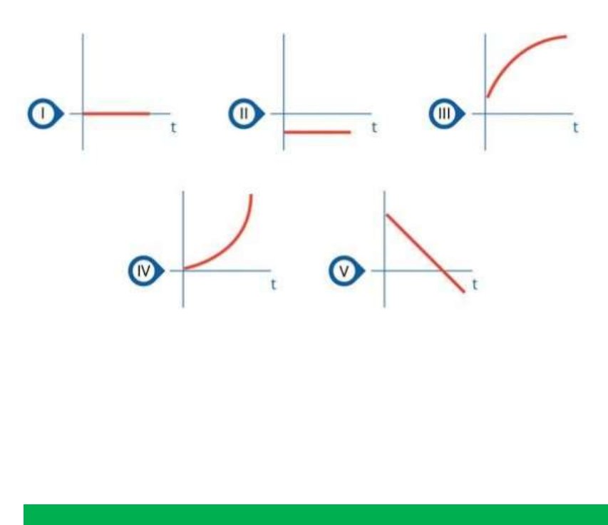 PROVA N2 – LABORATÓRIO DE MATEMÁTICA E FÍSICA Movimentos Retilíneos Uniformes (MRUs) são raros de serem encontrados na natureza. Os corpos em MRU necessitam que forças que atuem sobre eles anulem-se umas às outras. Caso contrário, sofrem acelerações. Os gráficos a seguir representam variações das grandezas apresentadas por um corpo ao longo do tempo. Fonte: O autor. Assinale a alternativa correta para quais deles devem representar, simultaneamente, grandezas importantes em um Movimento Retilíneo Uniforme: a) Os gráficos I, II, III e IV. b) Os gráficos II, III e V, somente. c) Os gráficos I, II e V, somente. d) Os gráficos II, IV e V, somente. e) Os gráficos I, II e IV, somente.