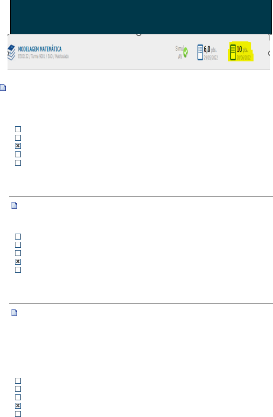 Disciplina: EEX0122 - MODELAGEM MATEMÁTICA Período: 2022.1 EAD (G) / AVS