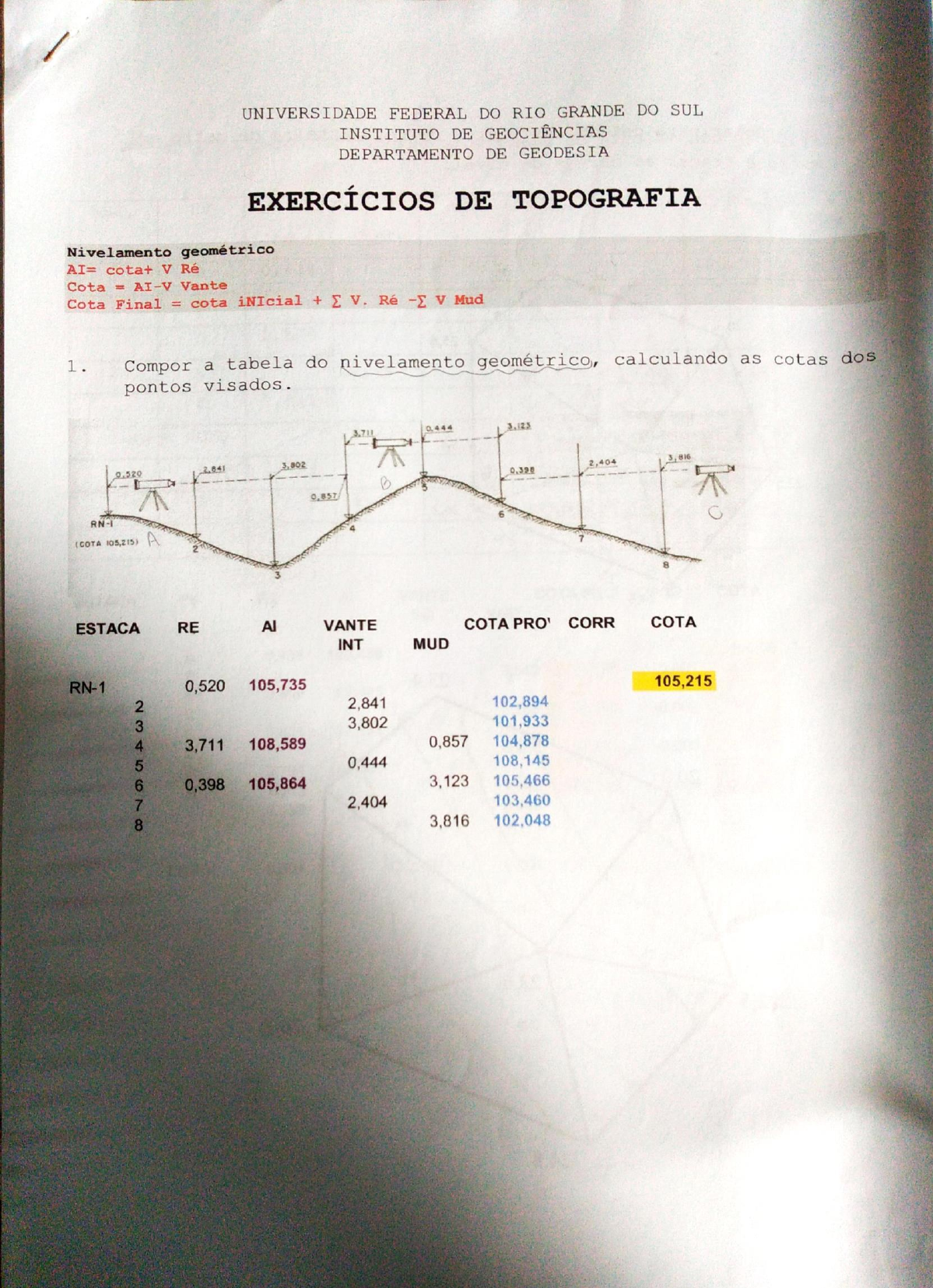 e realizar o cálculo das cotas de todos os pontos. São