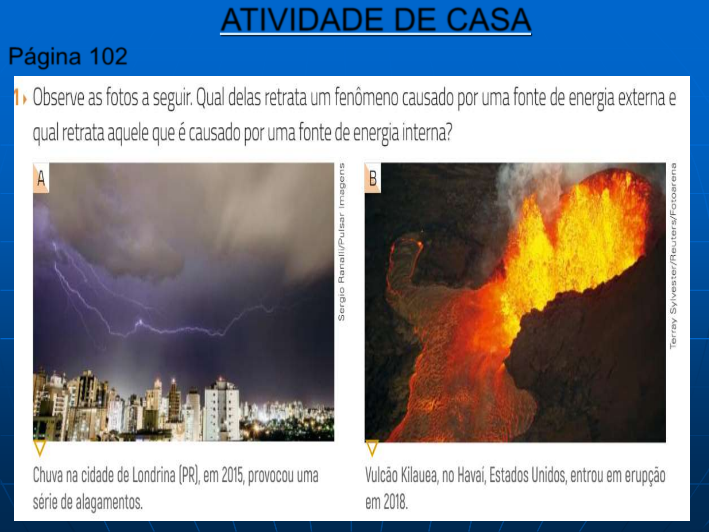 1. Observe as fotos a seguir. Qual delas retrata um fenômeno