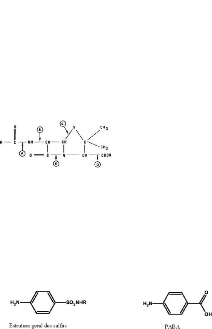 1- Antimicrobianos betalactâmicos, de origem natural ou sintética, que, em conjunto, cobrem o tratamento específico da maioria das infecções correntes. São bactericidas. Distribuem-se amplamente no organismo, exceto no sistema nervoso central, exceto quando as meninges estão inflamadas. Apresentam baixa toxicidade em doses terapêuticas e têm possibilidade de uso em gravidez e lactação. Sua desvantagem é a indução de reações de hipersensibilidade.