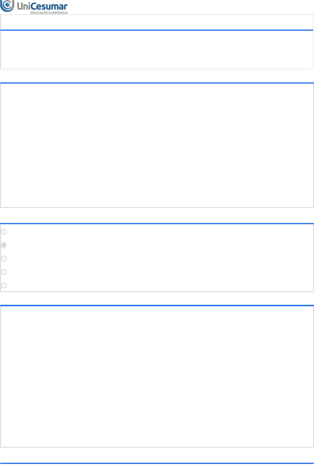 ATIVIDADE 3 - PED - TEORIA E PRÁTICA NA EDUCAÇÃO DE JOVENS E ADULTOS - 51/2022 Período:28/02/2022 08:00 a 18/03/2022 23:59 (Horário de Brasília) Status:ENCERRADO Nota máxima:1,50 Gabarito:Gabarito será liberado no dia 04/05/2022 00:00 (Horário de Brasília) Nota obtida:1,35 1ª QUESTÃO A avaliação em caráter democrático tem avançado, haja vista seu sentido na construção de critérios coletivos definidos no âmbito interno dos ambientes escolares. Estes critérios precisam acontecer com maior rigor na avaliação escolar. Saber o que fazer com os resultados torna-se mais difícil ainda, pois requer reorganização da prática. Sobre a avaliação, leia as assertivas a seguir: I. A avaliação possui a finalidade de controle disciplinar, garantindo a ordem em sala de aula. II. A avaliação, como instrumento, permite compreender a realidade escolar dos alunos, principalmente no que diz respeito ao trabalho em sala de aula. III. A avaliação no contexto da EJA deve mensurar simplesmente fatos ou conceitos assimilados com o intuito de seleção e classificação dos educandos. IV. A avaliação não é só para o aluno, mas também para o professor que deve sistematizar seu trabalho e retomar conteúdos, a fim de atingir os objetivos propostos. Está correto apenas o que se afirma em: ALTERNATIVAS I e II. II e IV. I, II e III. I, III e IV. II, III e IV. 2ª QUESTÃO O trabalho com o texto propicia aos sujeitos da EJA, situações diversas e possíveis para perceberem a realidade, embora o professor desenvolva a partir desse instrumento, atividades específicas durante o processo de alfabetização, como por exemplo, quando utiliza as letras do nome ou a primeira sílaba de uma palavra significativa do texto para depois introduzir outras sílabas ou palavras. Considerando esse contexto, avalie as asserções a seguir e a relação proposta entre elas. I. À medida que apresenta os sentidos e significados do que trabalha, o professor favorece aos seus alunos perceberem melhor a realidade, observando o conhecimento aprendido na sua prática social. PORQUE: II. Os sujeitos da EJA ao estabelecerem relações sobre o que aprenderam, observam e vêem continuamente na prática social, reestruturam o pensamento e se apropriam do sistema de escrita. A respeito dessas asserções, assinale a opção correta. ALTERNATIVAS As asserções I e II são proposições verdadeiras e a II é uma justificativa correta da I. As asserções I e II são proposições verdadeiras, mas a II não é uma justificativa correta da I. A asserção I é uma proposição verdadeira e a II é uma proposição falsa. A asserção I é uma proposição falsa e a II é uma proposição verdadeira. As asserções I e II são proposições falsas. 3ª QUESTÃO Considere a citação a seguir: “Letrar é mais que alfabetizar, é ensinar a ler e escrever dentro de um contexto onde a escrita e a leitura tenham sentido e façam parte da vida do aluno” (SOARES, 2003, p. 23). SOARES, Magda. Alfabetização: a ressignificação do conceito. In: Alfabetização e cidadania. Revista de Educação de Jovens e Adultos, n. 16, São Paulo, 2003. Considerando o exposto, analise as afirmativas a seguir: I. O letramento é entendido como a aprendizagem do sistema de leitura e de escrita, tanto na educação de crianças, quanto de jovens e adultos. II. O trabalho na EJA corresponde a utilização da leitura e da escrita do aluno apenas dentro de sala de aula, isso significa trabalho com letramento. III. Não basta o aluno apenas ler e escrever, é preciso ir além da alfabetização funcional, ou seja, é saber fazer uso da leitura e da escrita na prática social. IV. Sendo o aluno alfabetizado a partir das discussões e problematizações como propõe o método de Paulo Freire, é possível ocorrer tanto o trabalho de alfabetização quanto de letramento. É correto o que se afirma em: ALTERNATIVAS I e II, apenas. I, II e III, apenas. I, II e IV, apenas. II e III, apenas. III e IV, apenas. 4ª QUESTÃO Para atuar na Educação de Jovens e Adultos, o docente necessita de formação adequada. A valorização dos sujeitos nas suas condições reais de aprendizagem deve ser o caminho. Discernimento, compromisso e ética são princípios fundamentais para a concretização desse trabalho. Analise as afirmativas a seguir: I. A prática social indica a experiência, a qual impossibilita o crescimento pessoal e profissional dos alunos da EJA. II. A formação docente é importante, contudo, não está relacionada com a qualidade da educação escolar dos alunos da EJA. III. Partir da realidade dos alunos que frequentam a EJA desperta maior interesse desses, no estabelecimento de relações, visando os saberes científicos. IV. As experiências dos educandos que representam sua prática social devem ser considerados pelo professor. O respeito aos conhecimentos trazidos favorecem à confiança e persistência em apropriar-se dos conhecimentos formais. Está correto apenas o que se afirma em: ALTERNATIVAS II e III. II e IV. III e IV. I, II e III. II, III e IV. 5ª QUESTÃO O currículo escolar da Educação de Jovens e Adultos deve atribuir à educação o princípio da emancipação, propagar múltiplas possibilidades para que os indivíduos possam se desenvolver com capacidade para intervir na realidade. Ao pensar o currículo para esta modalidade de ensino, torna-se fundamental levantar o problema existente nas relações sociais estabelecidas, considerando o modo como essas relações vão se colocando, e como os comportamentos humanos se alteram em função das questões de poder, ou de resistência a ele. Nesse sentido, analise as afirmativas que seguem: I. A EJA deve garantir e assegurar uma educação para a inserção social e política dos cidadãos. II. A EJA precisa partir dos conhecimentos da prática social, visando levar seus sujeitos a perceberem o conhecimento para além da realidade a que estão imersos. III. O curr