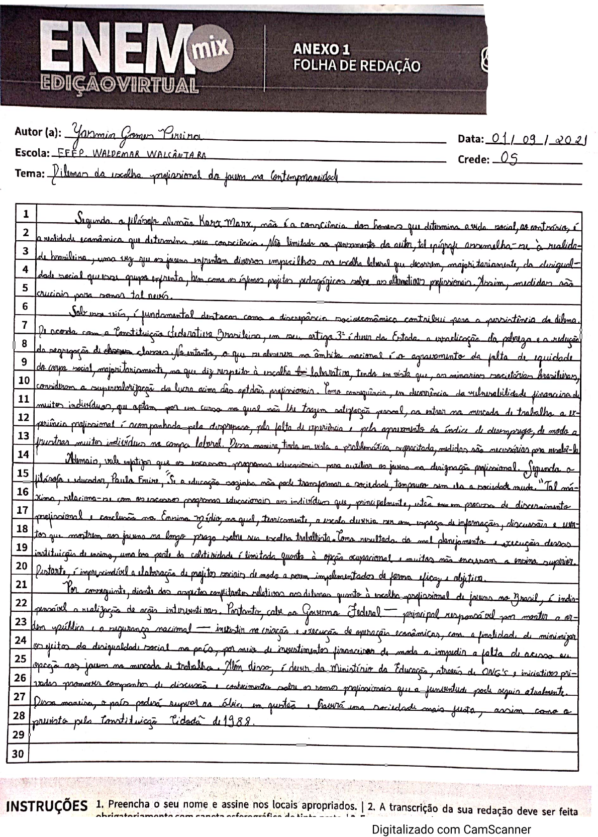 REDAÇÃO ELABORADA POR YASMIN GOMES Whatsapp: 88 99300-6723