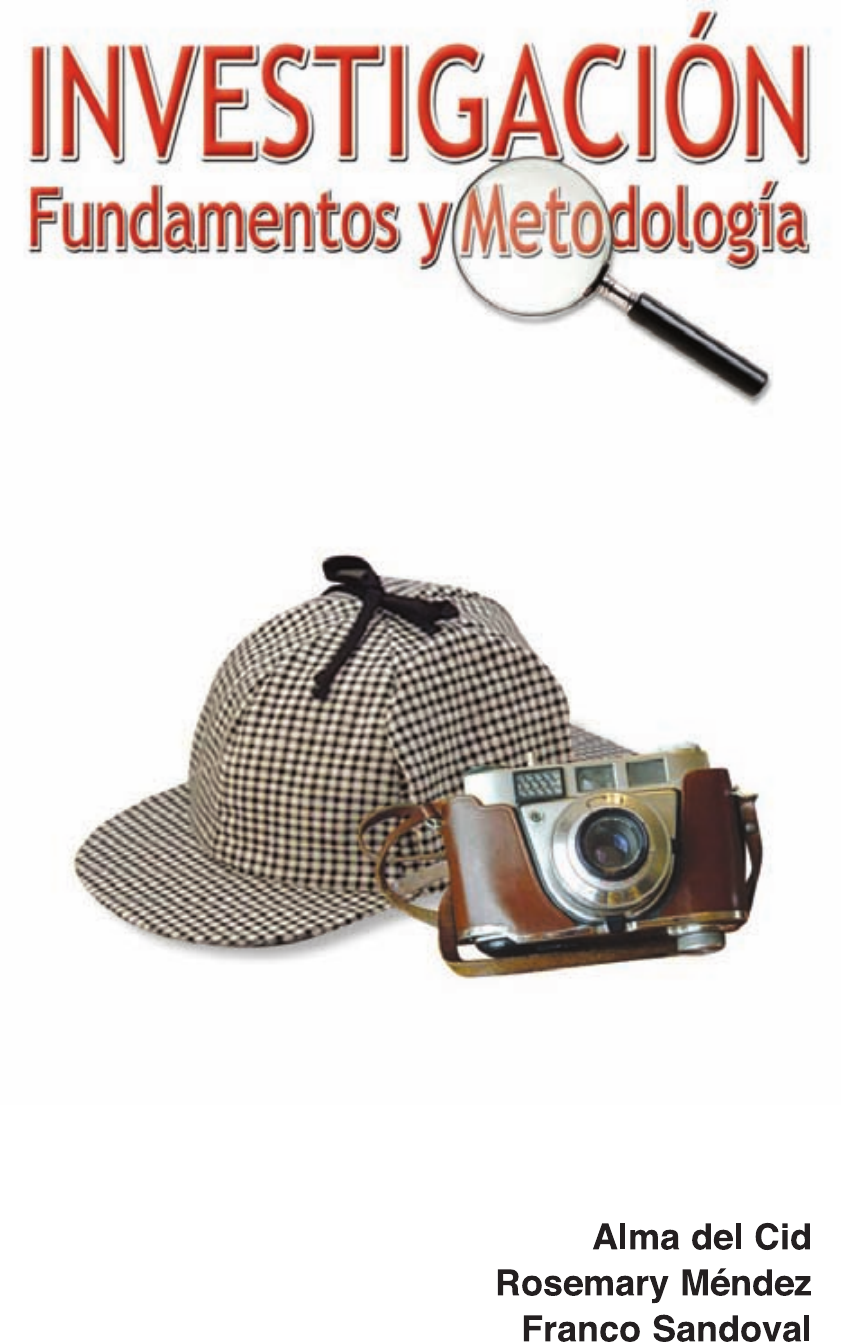 Maestra en Desarrollo con énfasis en Descentralización y Poder Local. Licenciada en Administración de Em- presas, con estudios en Tecnologías de Información y Comunicación. Actualmente estudia doctorado en Ciencias Empresariales. Ha sido consultora en temas relacionados con Descentralización del Estado y Ad- ministración de Empresas. Amplia experiencia en el campo de la edu- cación, tanto pública como privada. Actualmente es Docente de Dedi- cación Completa en el área de Investigación de la Universidad Rafael Landívar. Alma del Cid Licenciada en Administración de Empresas con estudios de maestría en Docencia Universitaria y trayectoria académica en este campo. Actualmente estudia doctorado en Ciencias Empresariales. Es Directora de Sedes Regionales de la Facultad de Ciencias Económicas y Empresariales de la Universidad Rafael Landívar. Rosemary Méndez Doctor en Sociología, con estudios de maestría en Filosofía y licenciatura en Antropología, Filosofía y Letras. Autor de varios libros. Fundador y gerente general de una cadena de pequeños hoteles. Actualmente es Director de Investigación y Tesis en la Facultad de Ciencias Económicas y Empresariales de la Universidad Ra- fael Landívar. Franco Sandoval Investigación. Fundamentos y metodología Investigación. Fundamentos y metodología Primera edición ALMA DEL CID PÉREZ Rosemary Méndez Franco Sandoval Recinos Universidad Rafael Landívar Editor: Hugo Rivera Oliver e-mail: hugo.rivera@pearsoned.com Editor de desarrollo: Felipe Hernández Carrasco Supervisora de producción: Adriana Rida Montes PRIMERA EDICIÓN, 2007 D.R. © 2007 por Pearson Educación de México, S.A. de C.V. Atlacomulco 500-5° Piso Col. Industrial Atoto 53519, Naucalpan de Juárez, Edo. de México Cámara Nacional de la Industria Editorial Mexicana Reg. Núm. 1031. Prentice-Hall es una marca registrada de Pearson Educación de México, S.A. de C.V. Reservados todos los derechos. Ni la totalidad ni parte de esta publicación pueden reproducirse, registrarse o transmitirse, por un sistema de recuperación de información, en ninguna forma ni por ningún medio, sea electrónico, mecánico, fotoquímico, magnético o electroóptico, por fotocopia, grabación o cualquier otro, sin permiso previo por escrito del editor. El préstamo, alquiler o cualquier otra forma de cesión de uso de este ejemplar requerirá también la autorización del editor o de sus representantes. ISBN 10: 970-26-1075-3 ISBN 13: 978-970-26-1075-5 Impreso en México. Printed in Mexico. 1 2 3 4 5 6 7 8 9 0 - 10 09 08 07 Del Cid Pérez, Alma; Méndez, Rosemary y Franco Sandoval Recinos Investigación. Fundamentos y metodología PEARSON EDUCACIÓN, México, 2007 ISBN: 978-970-26-1075-5 Formato: 20 × 25.5 cm Páginas: 200 Contenido Sección I Fundamentos de investigación 1 Capítulo 1 La investigación científica 3 1.1. Qué es investigar 5 1.2. Curiosidad, conocimiento y desarrollo 7 1.3. Un poco de historia 7 1.3.1. Herodoto (484-430 o 420) 7 1.3.2. Galileo Galilei (1564-1642) 8 1.3.3. Adam Smith (1723-1790) 8 1.4. De la curiosidad a la rigurosidad 10 1.5. La sociedad (y la empresa) del conocimiento 12 1.6. El proceso de investigación 13 1.7. La investigación, un sistema 14 1.8. La investigación aplicada 16 1.9. Ética e investigación: ¿Asuntos no relacionados entre sí? 18 1.10. Los distintos “métodos” lógicos 19 1.10.1. Método analítico 19 1.10.2. Método sintético 20 1.10.3. Método inductivo 20 1.10.4. Método deductivo 20 1.10.5. Enfoque cuantitativo 21 1.10.6. Enfoque cualitativo 21 1.11. La investigación: Para no olvidar 22 Capítulo 2 Tipos de investigación 25 2.1. Investigación histórica 27 2.2. Investigación teórica o conceptual 28 2.3. Investigación experimental 29 2.4. Investigación descriptiva 29 2.5. La teoría en la investigación 30 2.6. Los dos grandes marcos en la investigación 31 2.6.1. El marco contextual 31 2.6.2. Haciendo problema “lo que no es problema” 32 2.6.3. El marco teórico y su construcción 33 Sección II Metodología de investigación 37 Capítulo 3 Cómo llegar al principio. La selección del tema de investigación 39 3.1. Fuentes de temas de investigación 41 3.2. Aspectos a tomar en cuenta para seleccionar el tema de investigación 43 3.3. Investigación preliminar 44 vi Contenido 3.3.1. Objetivos 44 3.3.2. Componentes 45 Capítulo 4 Estableciendo guías para investigar. Planteamiento del problema 49 4.1. Elementos que conforman el planteamiento del problema 51 4.1.1. Pregunta de investigación 52 4.1.2. Hipótesis 53 4.1.3. Variables de estudio 55 4.1.4. Objetivos 60 4.1.5. Alcances de la investigación 63 Capítulo 5 En dónde obtener la información. Población y muestra 67 5.1. Fuentes de información 69 5.1.1. Fuentes secundarias 69 5.1.2. Fuentes primarias 71 5.2. Población 72 5.2.1. Características de la población 73 5.3. Muestra 74 5.3.1. Factores a tomar en cuenta para seleccionar la muestra 74 5.3.2. Característica de la muestra 75 5.3.3. Tipos de muestreo 75 5.3.4. Tamaño de la muestra 83 5.4. Censo 84 5.4.1. Limitaciones para realizar censos 84 5.5. La encuesta 85 5.5.1. Pasos para realizar una encuesta 86 5.5.2. Formas de realizar la encuesta 86 5.5.3. Características de los resultados de la encuesta 87 Capítulo 6 Cómo obtener la información. Técnicas e instrumentos de investigación 91 6.1. Técnicas de investigación documental 94 6.1.1. Técnica de fichaje 95 6.1.2. Técnica de resumen 97 6.1.3. Técnica de elaboración de mapas 99 6.2. Técnicas de investigación de campo 102 6.2.1. Observación 103 6.2.2. Entrevista 106 6.2.3. Cuestionario 109 6.3. Secciones que deben contener los instrumentos 111 Capítulo 7 Acercándonos a la realidad. Trabajo de campo 117 7.1. Recopilación de información 119 7.1.1. Aspectos a tener en cuenta al momento de recopilar la información 120 7.1.2. Errores en la información recopilada 121 7.2. Procesamiento de información 122 7.2.1. Pasos a seguir par