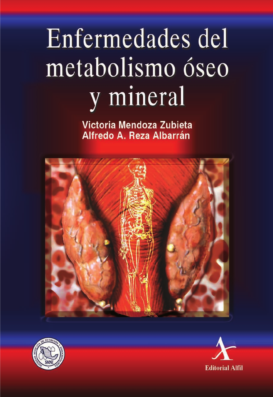 http://booksmedicos.org ENFERMEDADES DEL METABOLISMO ÓSEO Y MINERAL Enfermedades del metabolismo óseo y mineral Todos los derechos reservados por: E 2006 Editorial Alfil, S. A. de C. V. Insurgentes Centro 51--204, Col. San Rafael 06470 México, D. F. Tels. 55 66 96 76 / 57 05 48 45 / 55 46 93 57 e--mail: alfil@editalfil.com www.editalfil.com ISBN 968--7620--56--0 Dirección editorial: José Paiz Tejada Editor: Dr. Jorge Aldrete Velasco Revisión técnica: Dr. Sergio Herrero Herrera Revisión editorial: Irene Paiz Diseño de portada: Arturo Delgado--Carlos Castell Impreso por: Publidisa Mexicana, S. A. de C. V. Calz. Chabacano 69, Col. Asturias. 06850 México, D. F. Autores y colaboradores AUTORES Dr. Alfredo A. Reza Albarrán Médico internista, endocrinólogo y especialista en metabolismo mineral. Jefe de la Clí- nica de Paratiroides yHueso, Departamento de Endocrinología yMetabolismo, Instituto Nacional de Ciencias Médicas y Nutrición “Salvador Zubirán”. E--mail: a_reza_albarran@yahoo.com.mx, Ali_Yasfir@hotmail.com Capítulos 21, 25 Dra. Victoria Mendoza Zubieta Médico internista y endocrinólogo,MCM. Profesor Adjunto de la especialidad de Endo- crinología, UNAM. Investigador Asociado “B”, Departamento de Endocrinología, Hos- pital de Especialidades, Centro Médico Nacional “Siglo XXI”, IMSS. E--mail: vmendozazu@yahoo.com.mx Capítulos 1, 13 COLABORADORES Dra. Ma. del Rosario Arechavaleta Granell Médico internista y endocrinóloga. Certificada y recertificada por el Consejo Mexicano de Endocrinología. Centro Médico Nacional de Occidente, IMSS, Guadalajara, Jalisco, México. E--mail: r_arechavaletag@yahoo.com.mx Capítulo 24 V VI (Autores)Enfermedades del metabolismo óseo y mineral Dra. Consuelo Barrón Uribe Ex--Jefe del Servicio de Endocrinología, Hospital de Pediatría, CentroMédico Nacional “SigloXXI”, IMSS. Presidente de laSociedad deEndocrinologíaPediátrica,A.C.Profe- sorTitular de laResidencia enEndocrinologíaPediátrica,UNAM.Certificaday recertifi- cada por el Consejo Mexicano de Endocrinología. E--mail: cobarron@mexis.com Capítulo 23 Dr. Yulino Castillo Núñez Médico internista y endocrinólogo. Coordinador del PosgradoNacional deEndocrinolo- gía y Nutrición, Hospital “Dr. Salvador B. Gautier”, Instituto Dominicano de Seguros Sociales. Coordinador de Medicina Interna, Instituto Tecnológico de Santo Domingo (INTEC). Profesor de Endocrinología, Universidad Autónoma de Santo Domingo (UASD), Santo Domingo, República Dominicana. E--mail: y.castillo@verizon.net.do Capítulos 2, 4 Dra. Sonia Gabriela Cheng Oviedo Endocrinóloga, Maestra en Ciencias Médicas. Certificada por el Consejo Mexicano de Endocrinología. Adscrita al Servicio de Endocrinología y a la Unidad de Investigación Médica en Endocrinología Experimental, Hospital de Especialidades, Centro Médico Nacional “Siglo XXI.”,IMSS. E--mail: soniacheng@prodigy.net.mx Capítulo 7 Dr. Fidencio Cons Molina Profesor deReumatología de la Facultad deMedicina de laUABC.Director de laUnidad de Diagnóstico de Osteoporosis. Coordinador de Difusión Científica de la Asociación Mexicana de Metabolismo Óseo y Mineral. Director Científico de la Sociedad Latino- americana de Densitometría Clínica. E--mail: fcons@telnor.net Capítulo 10 Dra. Ma. del Carmen Cravioto Investigadora Titular. Coordinadora de la Clínica de Salud Reproductiva, Departamento deBiologíade laReproducción, InstitutoNacionaldeCienciasMédicasyNutrición“Sal- vador Zubirán”. E--mail: mcravioa@sni.conacyt.mx Capítulo 6 Dra. Ana Laura Espinosa de los Monteros Sánchez Médico Endocrinóloga. Certificada y recertificada por el ConsejoMexicano deEndocri- nología. Investigador Asociado “C”, Servicio de Endocrinología, Hospital de Especiali- dades, Centro Médico Nacional “Siglo XXI”, IMSS. E--mail: analems@hotmail.com Capítulo 16 VIIAutores y colaboradores Dr. Francisco J. Gómez Pérez Médico internista y endocrinólogo. Certificado y recertificado por el ConsejoMexicano de Endocrinología. Jefe del Departamento de Endocrinología y Metabolismo. Profesor Adjunto de la Especialidad en Endocrinología, UNAM. Instituto Nacional de Ciencias Médicas y Nutrición “Salvador Zubirán.” E--mail: fgomezp@prodigy.net.mx Capítulo 17 Dr. Frank A. Gottschalk, M. D. Professor, Orthopaedic Surgery. Department of Orthopaedic Surgery, University of Texas Southwestern Medical Center, Dallas, TX, USA. E--mail: frank.gottschalk@utsouthwestern.edu Capítulo 11 Dra. Anell Hernández García Médico internista y endocrinóloga. Certificada por el ConsejoMexicano de Endocrinología. E--mail: anellhg@hotmail.com Capítulo 5 Dra. Irma Hernández García Investigadora Asociada “B”. Médico endocrinóloga. Certificada y recertificada por el ConsejoMexicano deEndocrinología. Servicio de Endocrinología, Hospital deEspecia- lidades, Centro Médico Nacional “Siglo XXI”, IMSS. E--mail: irmahernandezg@yahoo.com Capítulo 16 Dr. Sergio Hernández Jiménez Médico internista y endocrinólogo. Certificado por el Consejo Mexicano de Endocrino- logía. Departamento de Endocrinología, Instituto Nacional de CienciasMédicas yNutri- ción “Salvador Zubirán”. E--mail: sergiohdzj@hotmail.com Capítulo 8 Dr. Miguel F. Herrera Departamento deCirugía, InstitutoNacional de CienciasMédicas yNutrición “Salvador Zubirán”. E--mail: herrera@quetzal.innsz.mx Capítulo 14 Dra. Cristina Martínez Sibaja Médico internista y endocrinóloga. Certificada por el ConsejoMexicano de Endocrinología. E--mail: cmartinezsibaja@hotmail.com Capítulo 8 Dr. Moisés Mercado Atri Médico internista y endocrinólogo. Certificado y recertificado por el ConsejoMexicano de Endocrinología. Profesor Titular de la Especialidad de Endocrinología, UNAM. In- VIII (Autores)Enfermedades del metabolismo óseo y mineral vestigador Titular. Jefe del Servicio de Endocrinología y de la Unidad de Investigación Médica en Endocrinología Experiment