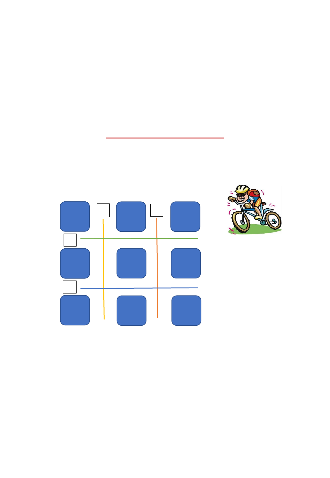 NOME: __________________________________________________ DATA: _____________________ (EF04MA16) Descrever deslocamentos e localização de pessoas e de objetos no espaço, por meio de malhas quadriculadas e representações como desenhos, mapas, planta baixa e croquis, empregando termos como direita e esquerda, mudanças de direção e sentido, intersecção, transversais, paralelas e perpendiculares. PEDALANDO Este é o plano da praça onde Francisco pratica suas corridas de bicicleta. Observe com atenção para responder às seguintes questões: A – Para chegar à rua W, qual rua paralela a ela, ele terá que passar? _____________________________________________________________________ B – Suponha que ele esteja na rua X. Qual sua posição em relação a rua Y? Paralela ou perpendicular? _____________________________________________________________________ C – Agora ele está na rua W, quais rua são perpendiculares a ela? _____________________________________________________________________ X Y Z W