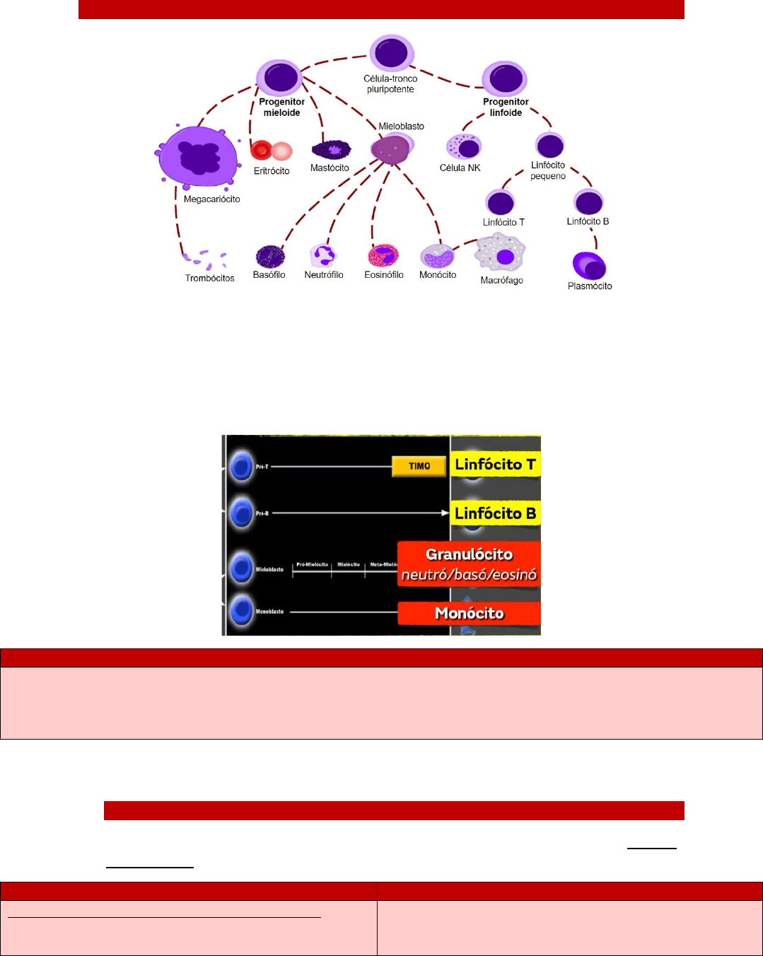 Medcurso 2021 SÉRIE BRANCA A linhagem linfoide dá origem a linfócitos pré-T e pré-B que amadurecem, respectivamente, uns no timo e outros já saem maduros da medula. Leucemias Tumor com origem na medula e provoca acúmulo de células brancas (leucócitos) Fisiopatologia Mutação: deleção, translocação, ganho cromossomial → expressão de proto-oncogenes → multiplicação celular → leucemia Aguda: células progenitoras (imaturas) - blastos Crônica: célula madura Leucemia aguda 1. Leucemia Mieloide Aguda (adultos) Mutação com bloqueio PRECOCE na maturação e estímulo à proliferação: blastos em excesso! Clínica e Laboratório Diagnóstico Proliferação de blastos (clone leucêmico): febre neoplásica >= 20% de blastos mieloide na medula óssea! • Biópsia: celularidade (%) Ocupação da medula: pancitopenia (anemia, imunossupressão, trombocitopenia) e dor óssea Corrente sanguínea (leucemização): - Leucocitose por blastos - Risco de leucostase (cefaleia, dispneia) Infiltração tecidual: - Hepatoesplenomegalia - Pele, SNC, gengiva, órbita, linfonodo, testículo, etc Em resumo: aumento de blastos + pancitopenia + infiltração tecidual • Aspirado (mielograma): tipos celulares (morfologia) Subtipos: M0-M7 de acordo com a fase da célula de acúmulo. • M2: mais comum! Clínica com infiltração ocular (cloroma). • M3: Leucemia Pro-Mielocítica Aguda. Clínica com CIVD e tratamento com ácido trans retinóico. • M4 e M5: hiperplasia gengival. Blasto Mieloide Morfologia: bastonete de Auer Citoquímica: mieloperoxidase Imunofenotipagem: CD34, CD33, CD14, CD13 Citogenética (FISH ou cariótipo): t(8,21) – M2; t(15,17) – M3; inv(16) – M4 Tratamento Tratamento específico: quimioterapia. M3: ácido trans retinóico. Suporte: pancitopenia. - Anemia: manter Hb >= 6-7 (>= 8-9 no cardiopata) - Plaquetopenia: avaliar transfusão (1 U/10 kg) • < 10.000/mm³: sempre • < 20.000/mm³: se febre ou infecção • < 50.000/mm³: se sangramento ativo - Leucopenia: risco de neutropenia febril → neutrófilos < 500/mm³ (segmentado e bastão) + 1 pico >= 38,3ºC ou >= 38ºC por mais de 1h • Culturas (diferentes materiais) + Cefepime (anti-pseudomonas) • Se Gram (+): infecção de pele, cateter, pulmão, redução de PA → associar Vancomicina • Sem melhora em 4-7 dias: + antifúngico • Tratamento ambulatorial: para neutropenia febril de risco baixo! ✓ Ciprofloxacina + amoxicilina/clavulanato ✓ Risco baixo: expectativa de neutropenia < 7 dias; sem disfunção orgânica; sem manifestação gastrointestinal (pelo risco de translocação bacteriana) Síndrome da Lise Tumoral Quadro de toxemia provocado pela lise celular generalizada, como na quimioterapia. ✓ Hipercalemia (alteração mais grave) ✓ Hiperuricemia ✓ Hiperfosfatemia ✓ Hipocalcemia Prevenção: hidratação prévia à quimioterapia + alopurinol ou rasburicase 2. Leucemia Linfocítica Aguda (crianças) Características e subtipos Clínica Idade: criança (câncer mais comum da infância!) Subtipos de LLA: mais comum de linfócitos B • Variante infantil: L1 • Adulto: L2 • Burkitt-like: L3 • T: origem de linfócitos T Geral Astenia (ANEMIA), febre (LEUCOPENIA), petéquias e equimose (PLAQUETOPENIA) Leucostase, infiltração (hepatoespleno, pele) Mais específico Dor óssea Linfonodomegalia, infiltração de SNC e testículo (incomum em mieloide) Diagnóstico >= 20% de blastos linfoides em MO Blasto linfoide: • Citoquímica: PAS (ácido periódico de Schiff) • Imunofenotipagem: CD10, CD19 e CD20 (linhagem B), CD3 e CD7 (linhagem T) • Citogenética: t(12,21)/hiperploidia (bons), t(9,22)/cromossomo philadelfia (ruim). Tratamento Específico: quimioterapia envolvendo profilaxia para SNC. O mesmo supracitado para suporte (pancitopenia) e síndrome da lise tumoral. Leucemia crônica Mutação com bloqueio TARDIO na maturação e estímulo à proliferação: formas celulares adultas em excesso! Leucometria diferencial • Granulócitos: basófilo, eosinófilo e neutrófilos (mielócito, metamielócito, bastão, segmentados) • Mononucleares: linfócitos e monócitos Leucocitose com desvio à esquerda Ocorre em fases iniciais de infecção por excesso (“consumo”) de segmentado, que provoca aumento de bastões. 1. Leucemia Mieloide Crônica Clínica e Laboratório Causa: cromossomo philadelfia t(9,22) → estímulo à acúmulo de células maduras pela tirosina quinase. Acúmulo de células maduras: • Leucocitose às custas de células adultas • Basofilia e eosinofilia • Neutrofilia acentuada com desvio à esquerda (infecção não é frequente) • Fosfatase leucocitária BAIXA (parece reação leucemoide) • Trombocitose • Síndrome de leucostase Infiltração tecidual: baço, fígado, linfonodo. • Esplenomegalia de grande monta Não é esperado infecções de repetição, uma vez que as células em excesso são maduras. Diagnóstico Medula óssea e/ou sangue periférico: identificar Gene BCR/ABL ou Cromossomo Philadelfia. Tratamento Fase crônica: geralmente insidioso, sem infecções de repetição, com quadro variável por leucostase. Crise blástica: agudização da doença. Mutação adicional na medula óssea. Risco de óbito. • Imitinabe (Gleevec): inibidor de tirosina-quinase. • Transplante de medula óssea se refratário. 2. Leucemia Linfocítica Crônica (idosos) Acúmulo da linhagem linfoide adulta (linfócito B – CD5) → incapacidade do linfócito B em formar plasmócitos, gerando redução de anticorpos. Clínica e laboratório Diagnóstico Linfocitose Hipogamaglobulinemia: infecções recorrentes Linfonodomegalia Casos graves: anemia e plaquetopenia Sangue periférico: linfocitose (> 5.000) + linfócitos B CD5 (+) – citometria de fluxo Tratamento Pesquisa de mutações (como IGHV, TP53, del(17p) para decisão terapêutica: ibrutinibe, venetoclax, clorambucil, fludarabina...) Estadiamento de Rai Característica 0 Linfocitose 1 Linfocitose + lin