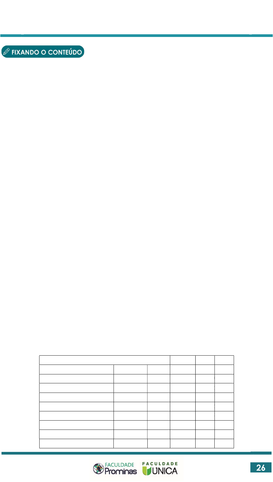 26 FIXANDO O CONTEÚDO 1. (UFPR – 2018 – Coren – PR – Contador) Considere as afirmativas abaixo, acerca da situação patrimonial e do desempenho econômico e financeiro da Companhia Curitiba para os períodos encerrados em 31/12/X1 e 31/12/X0: • Em 31/12/X1 os ativos imobilizados representavam 60% dos ativos totais da Companhia Curitiba. • Houve uma redução de 30% no montante de empréstimos a pagar entre 31/12/X1 e 31/12/X0. • O resultado do período X1 cresceu 28% em relação ao resultado do período X0. • As receitas financeiras representaram 8% das receitas totais do período X1. • Houve uma redução de 18% no valor das despesas gerais administrativas em X1 quando comparadas a X0. Com base nos conceitos de Análise Horizontal e Vertical da Análise de Demonstrações Contábeis, assinale a alternativa com a sequência correta do tipo de análise efetuada, de cima para baixo. a) vertical – vertical – horizontal – vertical – vertical. b) horizontal – vertical – vertical – horizontal – vertical. c) horizontal – horizontal – vertical – vertical – horizontal. d) vertical – horizontal – horizontal – vertical – horizontal. e) vertical – horizontal – horizontal – horizontal – vertical. 2. Para responder à questão observe e analise o Balanço Patrimonial da empresa abaixo dos anos de 2015 e 2016. Ativo Circulante 2015 AV 2.016 AV AH Caixa 242.371 2,93% 497.701 5,51% 205,35% Clientes 475.726 5,75% 583.513 6,46% 122,66% Outras Contas a receber 76.259 0,92% 147.881 1,64% 193,92% Estoque 31.965 0,39% 20.135 0,22% 62,99% Total Ativo circulante 826.321 10,00% 1.249.230 13,84% 151,18% Não circulante Realizável a Longo Prazo Contas a receber 1.172.767 14,19% 1.120.476 12,41% 95,54% Unidade 2 : ANÁLISE HORIZONTAL, ANÁLISE VERTICAL E INDICADORES DE LIQUIDEZ 27 Investimentos 22.060 0,27% 22.060 0,24% 100,00% Imobilizado 185.699 2,25% 198.623 2,20% 106,96% Intangível 6.060.461 73,31% 6.437.748 71,31% 106,23% Total Não Circulante 7.440.987 90,00% 7.778.907 86,16% 104,54% Total do Ativo 8.267.308 100,00% 9.028.137 100,00% 109,20% Passivo Circulante 2015 AV 2.016 AV AH Fornecedores 111.494 1,35% 172.440 1,91% 154,66% Empréstimos 371.225 4,49% 228.981 2,54% 61,68% Férias 76.949 0,93% 85.172 0,94% 110,69% Tributos 50.122 0,61% 47.774 0,53% 95,32% Outras Contas a pagar 362.465 4,38% 329.273 3,65% 90,84% Total Passivo Circulante 972.255 11,76% 863.640 9,57% 88,83% Não Circulante Exigível a Longo prazo Empréstimos 2.761.449 33,40% 3.174.233 35,16% 114,95% Patrimônio Liquido Capital Social 2.636.499 31,89% 2.773.985 30,73% 105,21% Reservas Pat Líquido 1.897.105 22,95% 2.216.279 24,55% 116,82% Total do Não circulante 7.295.053 88,24% 8.164.497 90,43% 111,92% Total do Passivo 8.267.308 100,00% 9.028.137 100,00% 109,20% Com base nos percentuais das análises verticais e horizontais apresentados no Balanço Patrimonial acima, assinale a afirmativa CORRETA: a) a conta total do ativo circulante em 2015 representava 13,84% do total do ativo e em 2016 esse valor teve uma queda passando a representar 10% do total do ativo. b) a conta total do passivo circulante em 2015 representava 9,57% do total do passivo e em 2016 esse valor teve um crescimento passando a representar 11,76% do total do passivo. c) a conta do total do ativo circulante cresceu 51,18% em relação ao ano de 2015 enquanto o passivo circulante apresentou uma queda de 11,17% em relação ao ano de 2015, o que ajudou a liquidez a curto prazo da empresa em 2016. d) ocorreu um aumento de 2,31 pontos percentuais, na participação relativa do passivo não circulante sobre o passivo total do ano de 2015 para 2016. e) ocorreu uma diminuição de 7,57 pontos percentuais, na participação relativa do capital social sobre o passivo total em 2016. 28 3. Concurso Saneago – GO – 2018 (adaptado) A análise vertical das contas das demonstrações contábeis mostra a composição percentual e a participação de cada conta em relação a um valor adotado como base. A análise vertical do balanço patrimonial permite visualizar, do lado do passivo, a parcela de participação de fontes de recursos oriundos de: a) imobilizações externas e internas. b) investimentos financeiros e de capital. c) capital de terceiros e próprios. d) fundos monetários e não monetários. e) dos ativos circulantes e não circulantes. 4. (Concurso Copasa – Fumarc 2018) A Análise Vertical das fontes de recursos da Cia. Tomaz & Valdir em 31/12/20X1 estava assim representada: Considerando as informações, é correto afirmar: a) O principal componente dos Capitais de Terceiros é a conta Fornecedores, que representa 23% das fontes de recursos. b) Os Capitais de Terceiros correspondem a 60% do total das fontes de recursos da Cia. c) Os Capitais Próprios correspondem a 32% do total das fontes de recursos da Cia. d) Os empréstimos de curto prazo são altamente expressivos em relação ao total da dívida da empresa. e) Os salários, impostos, contribuições e obrigações sociais representam 20% do total. 29 5. Segundo Matarazzo (2010), a análise das Demonstrações Contábeis deve partir do geral para o particular. Sendo assim, inicia-se a análise por meio do cálculo dos Índices e, em seguida, aplicam-se as Análises Vertical e Horizontal. Neste contexto, analise o Balanço Patrimonial da Cia. Descomplica e assinale a alternativa CORRETA: a) o imobilizado representa 25,46% aproximadamente do ativo total. b) o índice de liquidez seca da CIA. descomplica é de 0,83 aproximadamente. c) o passivo circulante representa 47,11% e o exigível a longo prazo 12,52% aproximadamente do total do passivo. d) considerando a análise vertical, pode-se afirmar que o patrimônio líquido da cia. descomplica apresenta o percentual de 29,36% aproximadamente. e) de acordo com a análise vertical do balanço patrimonial da cia. descomplica, a conta clientes representa o percentual de 39,33% aproximadamente e a conta estoques de