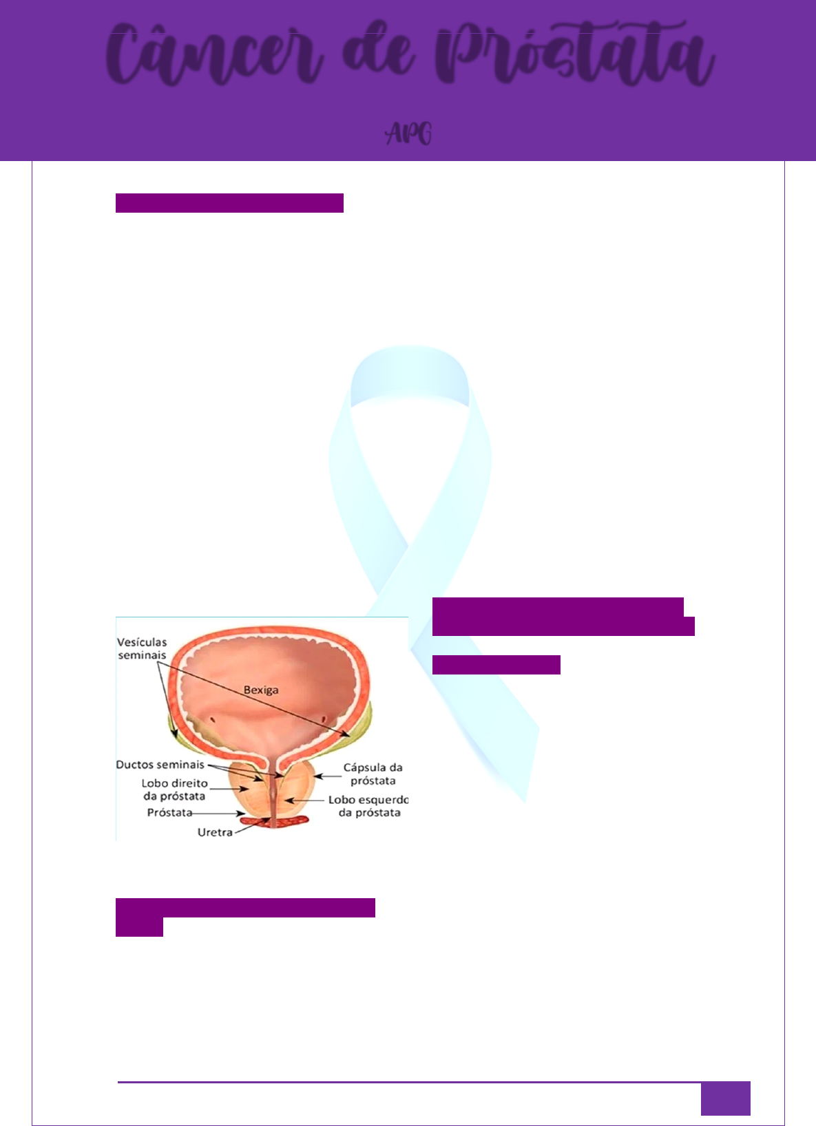1 Brisa Pires Revisar a anatomofisiologia da próstata A próstata é uma glândula única com função secretora presente em homens. O líquido prostático tem pH básico, sendo importante no processo de alcalinização vaginal e conferindo o aspecto leitoso do sêmen e seu odor característico. Além disso, é possível que ela alcalinize os demais líquidos seminais masculinos, melhorando o desempenho de mobilidade do espermatozoide. A próstata fica em posição imediatamente anterior ao reto, justificando o exame de toque retal como uma forma de avaliação prostática. De uma maneira geral, as dimensões da próstata são de 3cm de comprimento, 4cm de largura e 2cm de profundidade antero-posterior. O tamanho médio aos 20 anos de idade da próstata é de 20g e há um crescimento de 0,4g/ano a partir dos 30 anos Compreender a fisiopatologia do câncer de próstata O câncer de próstata é denominado como um adenocarcinoma, ou câncer glandular, que inicia quando as células glandulares secretoras de sêmen da próstata sofrem mutações e se transformam em células cancerosas. A região da próstata em que o adenocarcinoma é mais comum é a zona periférica, inicialmente, pequenos agrupamentos de células cancerosas se mantêm confinados às glândulas prostáticas normais, uma condição conhecida como carcinoma "in situ" ou neoplasia intra-epitelial prostática. Embora não haja prova de que a NIP - Neoplasia intra-epitelial prostático seja uma precursora do câncer, ela está intimamente relacionada ao câncer. Ao longo do tempo estas células cancerosas começam a se multiplicar e se espalhar para o tecido prostático circundante (o estroma) formando um tumor. Finalmente, o tumor por crescer ao ponto de invadir órgãos próximos a ele, como as vesículas seminais ou o reto. Listar as manifestações clinicas, fatores de risco e complicações do câncer de próstata Manifestacoes clinicas -O cancer de próstata é silencioso. Os primeiros estágios não possuem sintomas -Os sintomas, via de regra, começam a aparecer apenas em estágios mais avançados e são comuns tanto ao câncer quanto à hiperplasia prostática benigna, podemos citar: • urinar pequeno volume e muitas vezes ao dia (especialmente a noite, obrigando-o a acordar) • dificuldade para urinar • dor para urinar e/ou ejacular • presença de sangue na urina ou sêmen Câncer de Próstata APG 2 Brisa Pires Fatores de risco • Idade: Como visto, indivíduos mais velhos têm maiores chances de desenvolver o câncer de próstata, especialmente acima da quinta década de vida; • Etnia: Negros são grupo de risco para o desenvolvimento deste tipo de tumor; • Histórico Familiar: Pessoas que têm histórico familiar de câncer de próstata têm grandes chances de desenvolve-lo também. • Fatores Hormonais: A quantidade de hormônios andrógenos (por exemplo, a testosterona) tem impacto na formação tumoral, principalmente em relação ao envolvimento com a reformulação celular prostática. Níveis elevados de testosterona parecem corroborar com o desenvolvimento da neoplasia. • Tabagismo: O ato de fumar está envolvido principalmente na agressividade tumoral: tabagistas têm, em média, 30% mais chances de morrer por câncer de próstata que um não-fumante; • Obesidade: A obesidade parece ter relação tanto com a mortalidade quanto com o aparecimento do câncer de próstata. • Consumo de Soja: O consumo de soja parece estar relacionado com um menor risco do desenvolvimento do câncer de próstata. Muitos estudos sustentaram essa teoria enquanto outros não acharam relação. • Genética: Mutações nos genes BRCA1 e BRCA2 mostraram ser risco independente para o desenvolvimento do câncer de próstata com chances aumentadas em duas e sete vezes, respectivamente. • Inflamação: Pacientes que desenvolvem prostatites parecem ter maior propensão ao desenvolvimento da neoplasia; • Outros: O consumo de álcool, de gorduras e de vitamina D em alguns estudos mostrou-se maléfico, mas não foi possível chegar a uma conclusão definitiva. Complicacoes: • Incontinencia urinaria • Impotencia sexual • Estenose dos ductos e da uretra Apontar a epidemiologia do câncer de próstata O câncer de próstata é o quinto mais prevalente mundo em ambos os sexos e o segundo em homens, atrás apenas do câncer de pele. Os países desenvolvidos têm maiores taxas de incidência em relação aos países subdesenvolvidos os países com populações asiáticas possuem as menores taxas. No Brasil, o câncer de próstata também é o mais comum, desconsiderando o de pele. O Instituto Nacional do Câncer (INCA) estimou que, no ano de 2016, houve quase 62.000 novos casos desse tipo de tumor, correspondendo a aproximadamente 23% de todos os ca ̂nceres diagnosticados nos homens no país. Em termos comparativos, as regiões Sul e Sudeste têm o maior número de casos, com uma taxa de 90 novos casos para cada 100.000 habitantes. 3 Brisa Pires Entender como é feito o diagnóstico e o tratamento do câncer de próstata Diagnostico O diagnóstico confirmatório de câncer de próstata é feito a partir da biópsia guiada pelo ultrassom transretal. São retirados 12 “pedaços” da próstata para avaliação.. Caso seja cancer, o patologista expressa o laudo na chamada Graduação Histológica do Sistema de Gleason. De maneira simplificada, ele avalia duas áreas mais frequentes do tumor dando um número de 1 a 5 para cada uma delas (sendo o 1 o menos agressivo e o 5 mais agressivo). Ele soma os números dados, o que gera a escala de Gleason (variando, portanto, de 2 a 10). Com base em Gleason, podemos estabelecer: • Gleason de 2 a 4: Aproximadamente 25% de chance de o tumor disseminar-se para fora da próstata em anos, afetando a sobrevida; • Gleason de 5 a 7: Aproximadamente 50% de chance; • Gleason de 8 a 10: Aproximadamente 75% de chance. Marcador tumoral: • PSA • Fator de Crescimento Semelhante à Ins