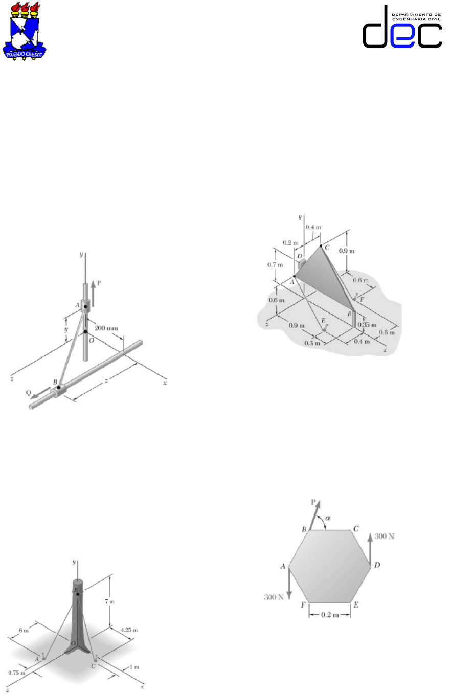 hastes. Se a força P=(341N)j é