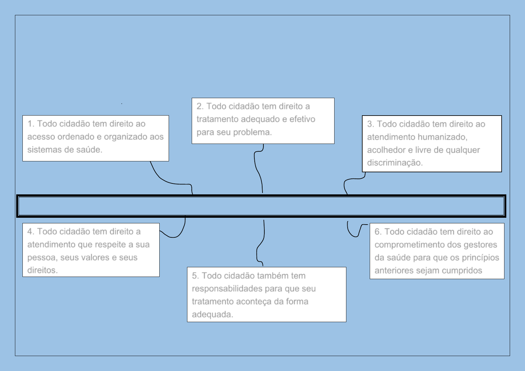 Carta de direitos dos usuários do sus 1. Todo cidadão tem direito ao acesso ordenado e organizado aos sistemas de saúde. 2. Todo cidadão tem direito a tratamento adequado e efetivo para seu problema. 3. Todo cidadão tem direito ao atendimento humanizado, acolhedor e livre de qualquer discriminação. 4. Todo cidadão tem direito a atendimento que respeite a sua pessoa, seus valores e seus direitos. 5. Todo cidadão também tem responsabilidades para que seu tratamento aconteça da forma adequada. 6. Todo cidadão tem direito ao comprometimento dos gestores da saúde para que os princípios anteriores sejam cumpridos 1. Todo cidadão tem direito ao acesso ordenado e organizado aos sistemas de saúde.